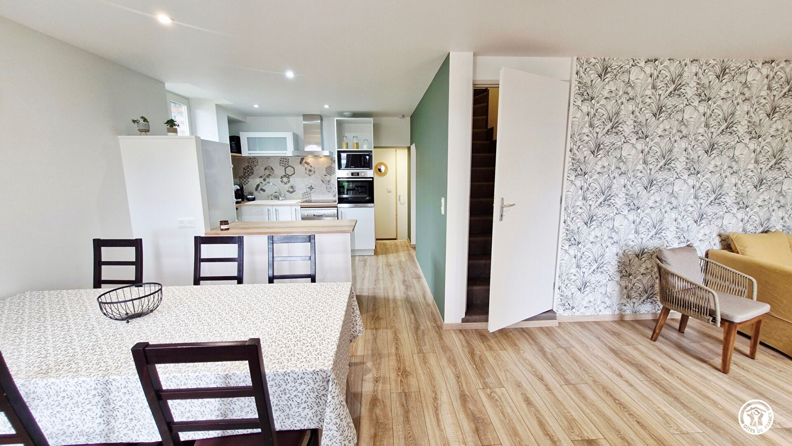 puis accéderez à la grande pièce de vie comprenant la cuisine, le séjour et le salon (avec télévision
