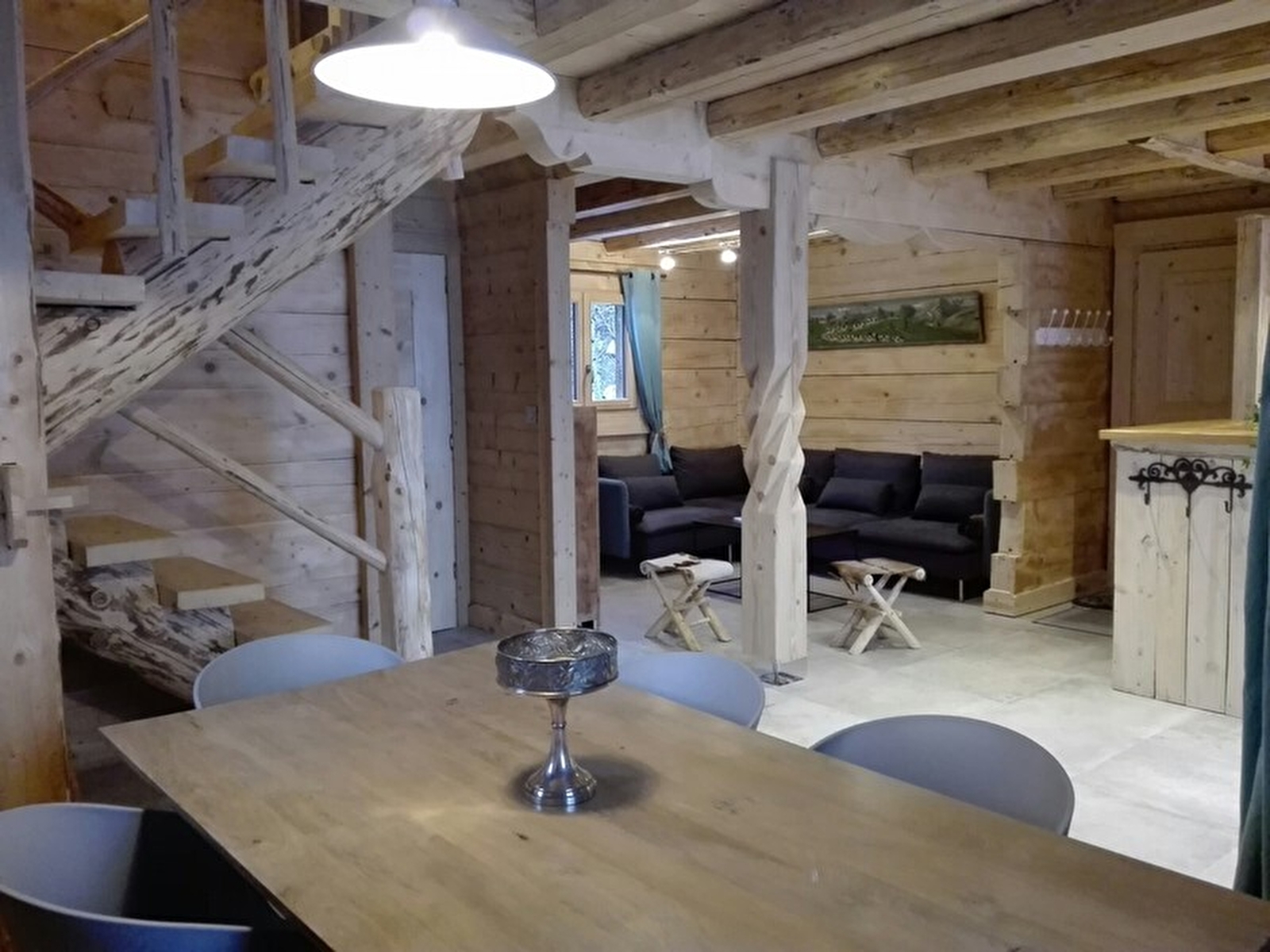 Très Beau chalet indépendant en bois brossé idéalement situé à 2km des pistes de ski de fond et descente. En été comme en hiver, vous pourrez profiter des nombreux sentiers de randonnée au départ du gîte. Le chalet se compose, au RDC, d'une belle pièce à vivre lumineuse avec cuisine ouverte sur salon et salle à manger. Salle d'eau (douche) et 1 wc indépendant. A l'étage : mezzanine avec 2 lits 1 place qui se transforme en espace détente selon les envies, Chambre 1 avec 1 lit 2 places (160x200), Chambre 2 originale avec 2 lits 2 places situés dans une alcôve. Salle de bain (baignoire d'angle + wc). Le gîte dispose d'un vaste terrain attenant non clos ainsi que d'une terrasse avec salon de jardin et barbecue. Local à disposition avec lave-linge, rangement pour chaussures, ski, poussette,....Arrivée à partir de 17h le samedi (se renseigner auprès de la propriétaire) Mise à disposition des vacanciers, de façon permanente :- Tablettes lave vaisselle (sel et liquide de rinçage), produit vaisselle + éponge, lessive lave linge, savon liquide dans les salles de bain, sacs poubelle cuisine et salles de bain.- Huile, vinaigre, sel, poivre, quelques herbes. Arrivée à 17h00 et départ à 11h00.