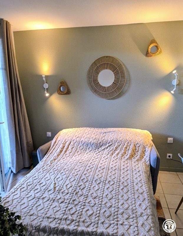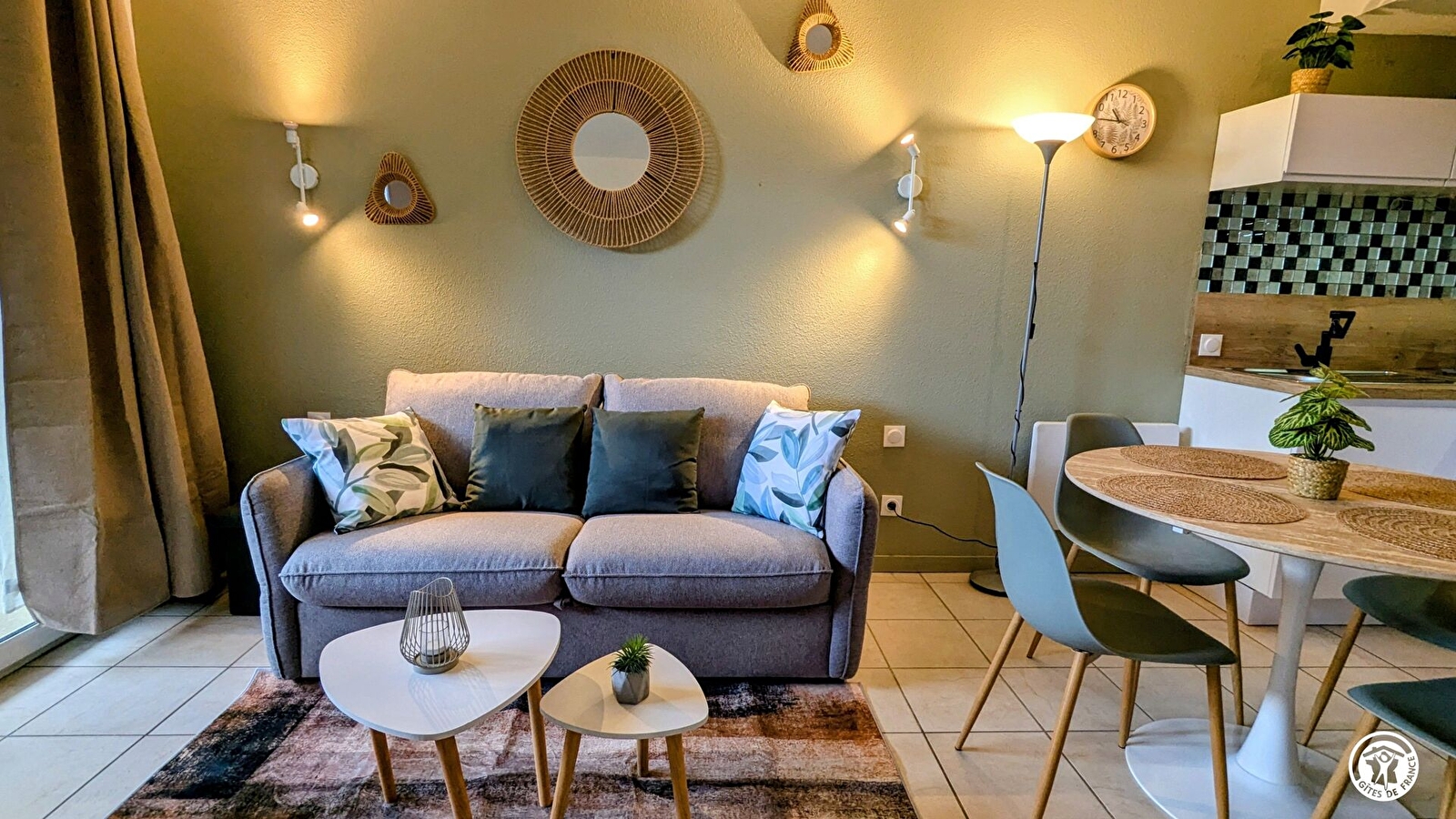 A Levernois, à 4 km de Beaune, dans la résidence de tourisme 3 étoiles "Les Allées du Green", le gîte "le 7", situé au rez-de-chaussée, vous propose : une cuisine ouverte sur salle à manger/salon, avec canapé convertible (140 cm) de bonne qualité, TV ,wifi, 1 chambre avec 1 lit de 140 cm, 1 salle de bain, 1 WC indépendant. Petite terrasse à l'abri des regards, avec salon de jardin. 1 lit parapluie sur demande. Accès à la piscine couverte chauffée et au sauna de la résidence (accès avec QR Code remis sur place). A l'extérieur: grand parking privé gratuit. Terrain de pétanque, jeux pour enfants. Local vélos.