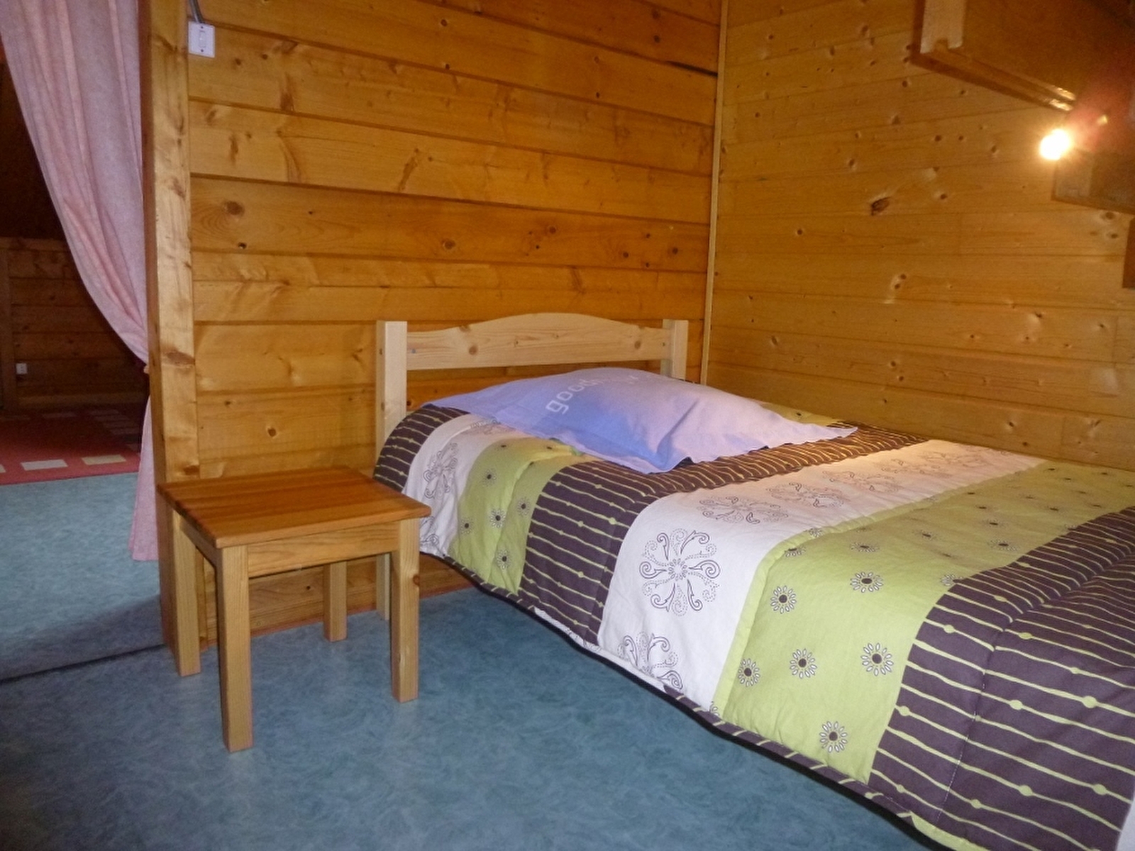 Chalet indépendant, avec au rez de chaussée: séjour, salon, coin cuisine, salle d'eau avec WC, une chambre avec un lit 2 places. A l'étage: une mezzanine, et 2 coins nuit pour 1 personne, terrain attenant non clos, cour, balcon, barbecue, salon de jardin. Chauffage électrique. Toutes charges comprises. Table de pique-nique, parking privatif sur place.