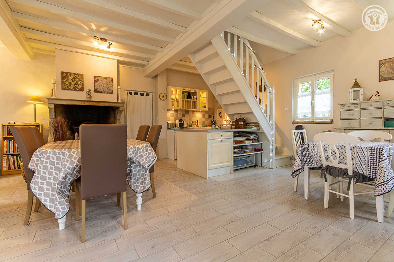 Passionnée de décoration & de nature, Catherine vous accueille au sein d'une ravissante maison de pays du 19ème siècle chargée d'histoire (naguère « guinguette » de village), intégralement restaurée avec goût & soins, blottie à l'orée d'un bois au creux d'un charmant cadre bucolique (vaste forêt parsemée de chemins de randonnée / accès direct depuis jardin). Hameau résidentiel très calme adossé à flanc de colline, proche du centre du petit village typique de la Guiche niché sur les coteaux sud du Charolais au sein d'un superbe écrin préservé de verdure (belle piscine couverte, église romane du XIIIème abritant le tombeau de Louis de Valois petit fils du roi de France, ancien hôpital « sanatorium » de campagne datant de 1918…). Spacieux gîte de très bon confort. Grande pièce de vie. Chaleureux cachet campagnard contemporain mixant un élégant esprit « shabby-chic » à une restauration patrimoniale soignée (dépaysantes traces du passé : majestueuse tête de cheminée, plafond et poutres, piliers en pierres...). Beaucoup de charme & de caractère. Ambiance douce & romantique. Cocooning & ultra cosy. Vaste terrasse de 30m² exposée et ombragée (que complète une seconde terrasse en gravier à l'ombre du cèdre centenaire qui domine le parc). Agréable espace jardin réservé sur une belle propriété close et soignée de 4800m², arborée & fleurie (dotée d'un mini verger : cerisier, pommiers, cognassier..).