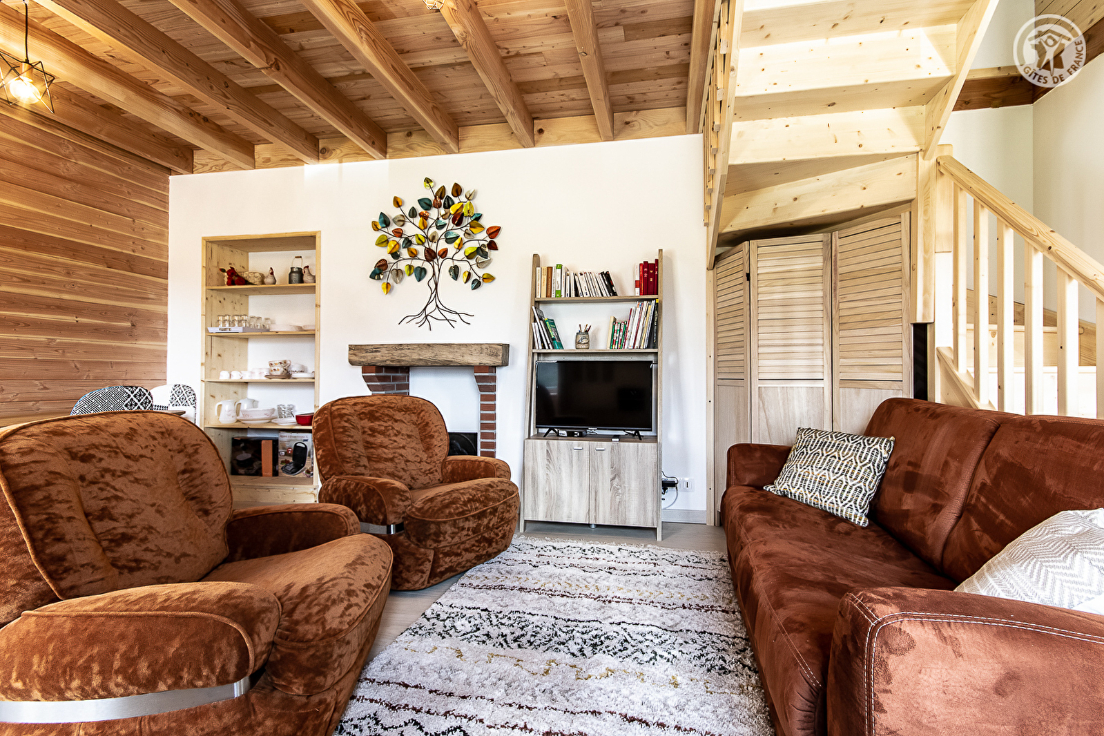 Composition du gîte : Maison individuelle sur 2 niveaux (accès par chemin empierré carrossable sur 200m) . Wifi. Chauffage électrique. Rdc surélevé : cuisine-séjour-salon (canapé convertible en appoint 140x190cm), salle d'eau (douche), Wc indépendant. 1er étage : 2 chambres dont une en mezzanine (lit 2 p. 160x200cm / 2 lits 1 p. 80x200cm jumelables en lit 2 p. 160x200cm). Terrasse + terrain + local vélos fermé + parking privés. Commerces & services 12 km. Gare TGV Creusot 17 km. VTT : circuits au départ du gîte.