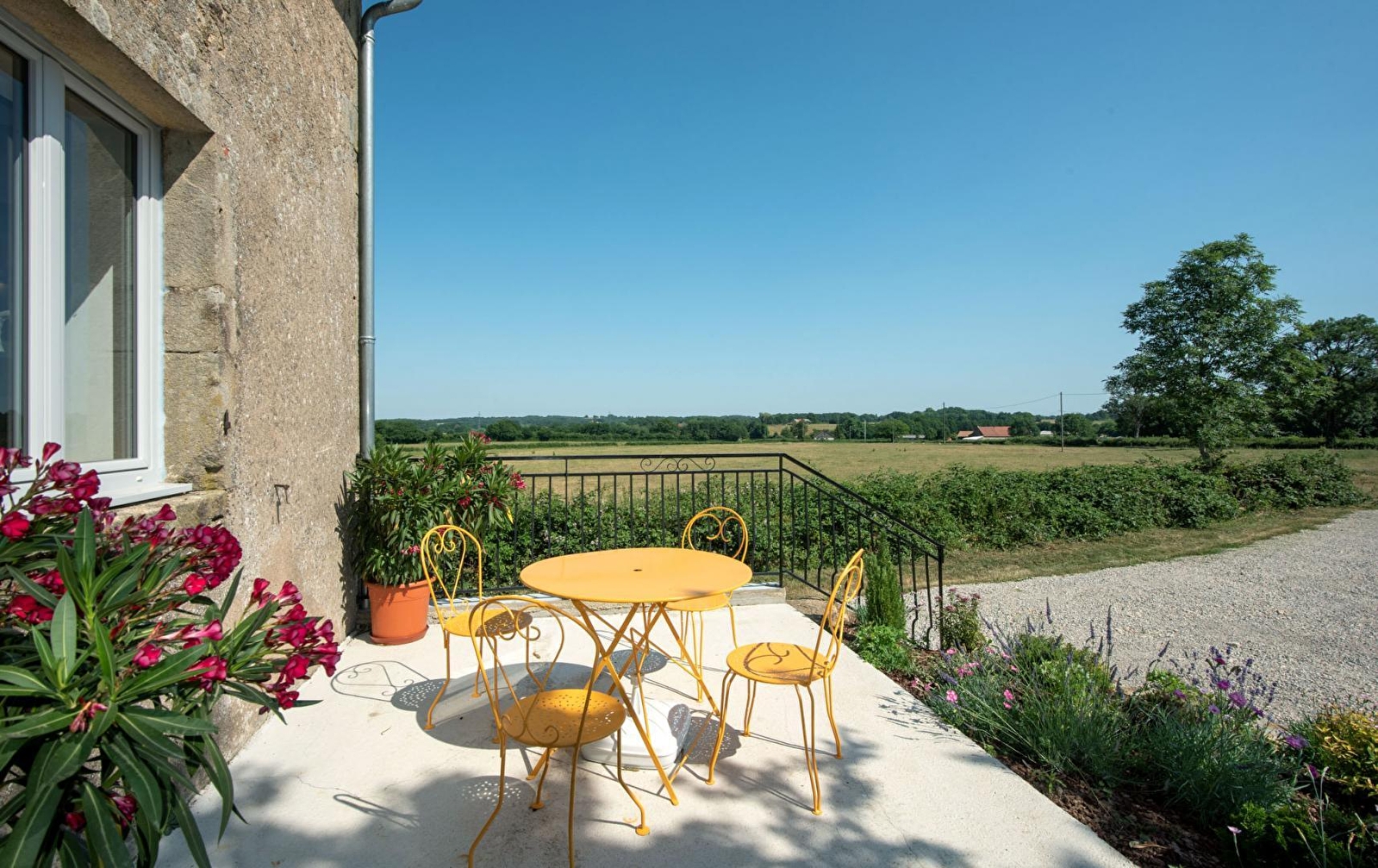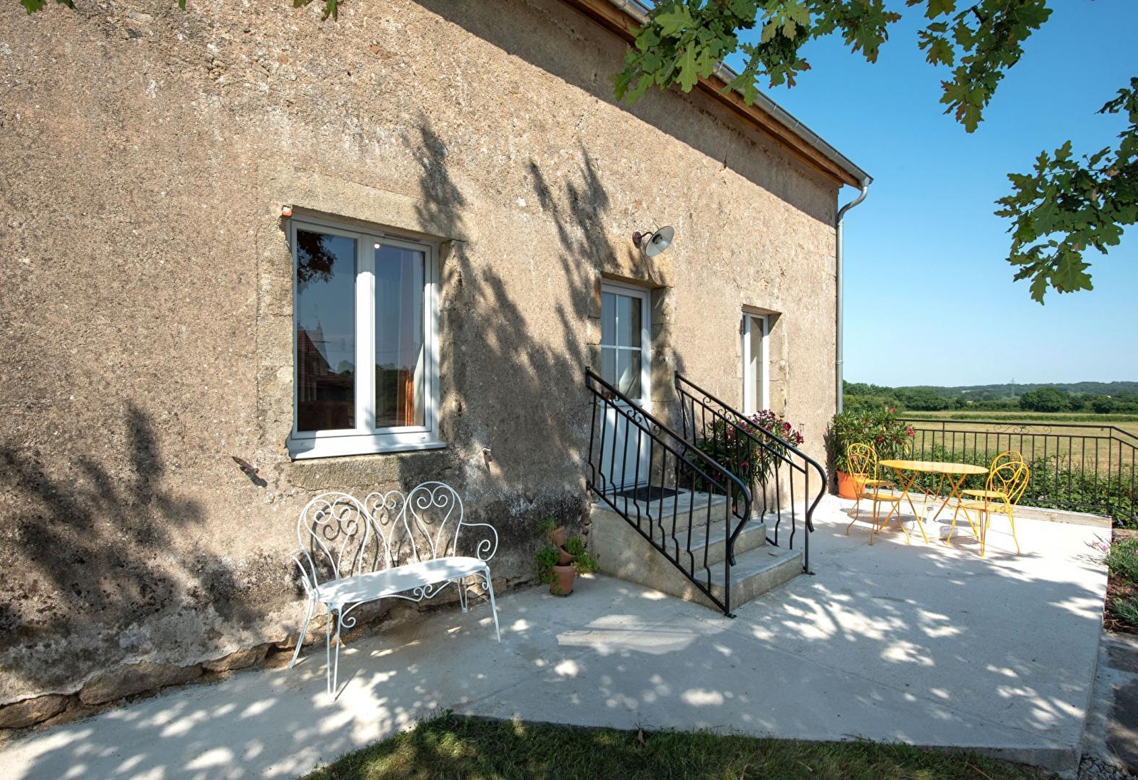 Agriculteurs biologiques (éleveurs laitiers et poules pondeuses), Élisabeth et Eric vous accueillent au sein d'un ravissant « gîte à la ferme » aménagé dans un ancien pavillon de chasse du 19ème siècle intégralement restauré avec soins, blotti en pleine campagne à 4 km du petit village typique d‘Auxy, sur leur exploitation familiale de 90 ha (visite possible avec activités ludiques pour les enfants comme le ramassage des œufs, la traite des vaches ou la possibilité de donner un biberons aux petits veaux & la promesse des œufs frais et du lait de la ferme !). Calme et tranquillité absolus (sans vis-à-vis, bien à l'écart de l'exploitation) en plein cœur du bocage, au sein d'un magnifique écrin préservé de nature & verdure, en lisière de prairies, pâtures et d'une vaste forêt privée de 8 ha (nombreux chemins de randonnées), avec pour seules voisines les célèbres « montbéliardes » paissant paisiblement. Au creux d'un cadre bucolique ultra privilégié, véritable petit coin de paradis pour petits & grands. Gîte de très bon confort. Chaleureux cachet campagnard contemporain mixant influences nordiques et esprit "chalet". Beaucoup de charme. Ambiance zen, cocooning et très cosy. Large terrasse panoramique exposée. Agréable terrain naturel avec table de ping-pong & filet de volley-badminton. Belle vue dégagée sur la campagne environnante. Splendides panorama & paysages.