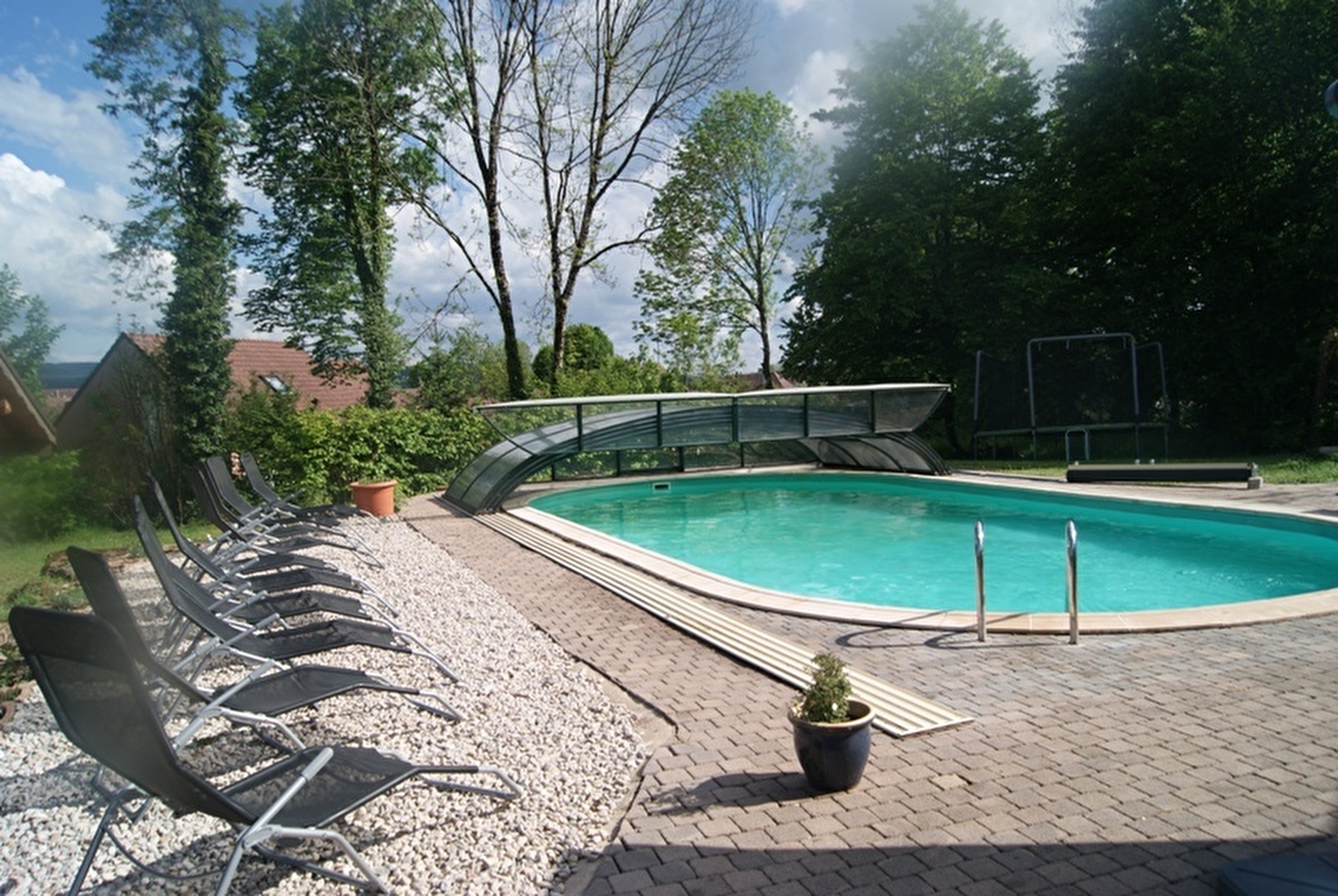 Philippe et Sandrine vous accueillent pour un séjour d'exception dans un environnement chaleureux et convivial. Venez profiter de ce gîte de plain pied se composant d'une pièce à vivre avec cuisine, salle à manger et salon (canapé convertible 2 pl, dvd-usb, chaine hifi), 2 chambres avec chacune 1 lit 2pl et 1 lit 1pl superposé. Salle de bain (baignoire d'angle et douche hydro-massante), wc indépendant. Le gîte dispose d'une terrasse privative avec salon de jardin et barbecue, entourée par un vaste terrain en commun avec 2 autres gîtes. Vous pourrez profiter de la balançoire, du terrain de pétanque ainsi que de l'espace détente : piscine (uniquement en saison estival, en commun et soumise à horaires), chalet sauna, bain nordique ( en commun et soumis à horaires). Les gîtes peuvent être loués ensemble en cas de regroupement familiale. Animaux acceptés sous conditions : se renseigner. Gîte en RDC permettant un accès aux personnes à mobilité réduite. Lits faits à l'arrivée. A découvrir absolument www.giteslescherubins.com