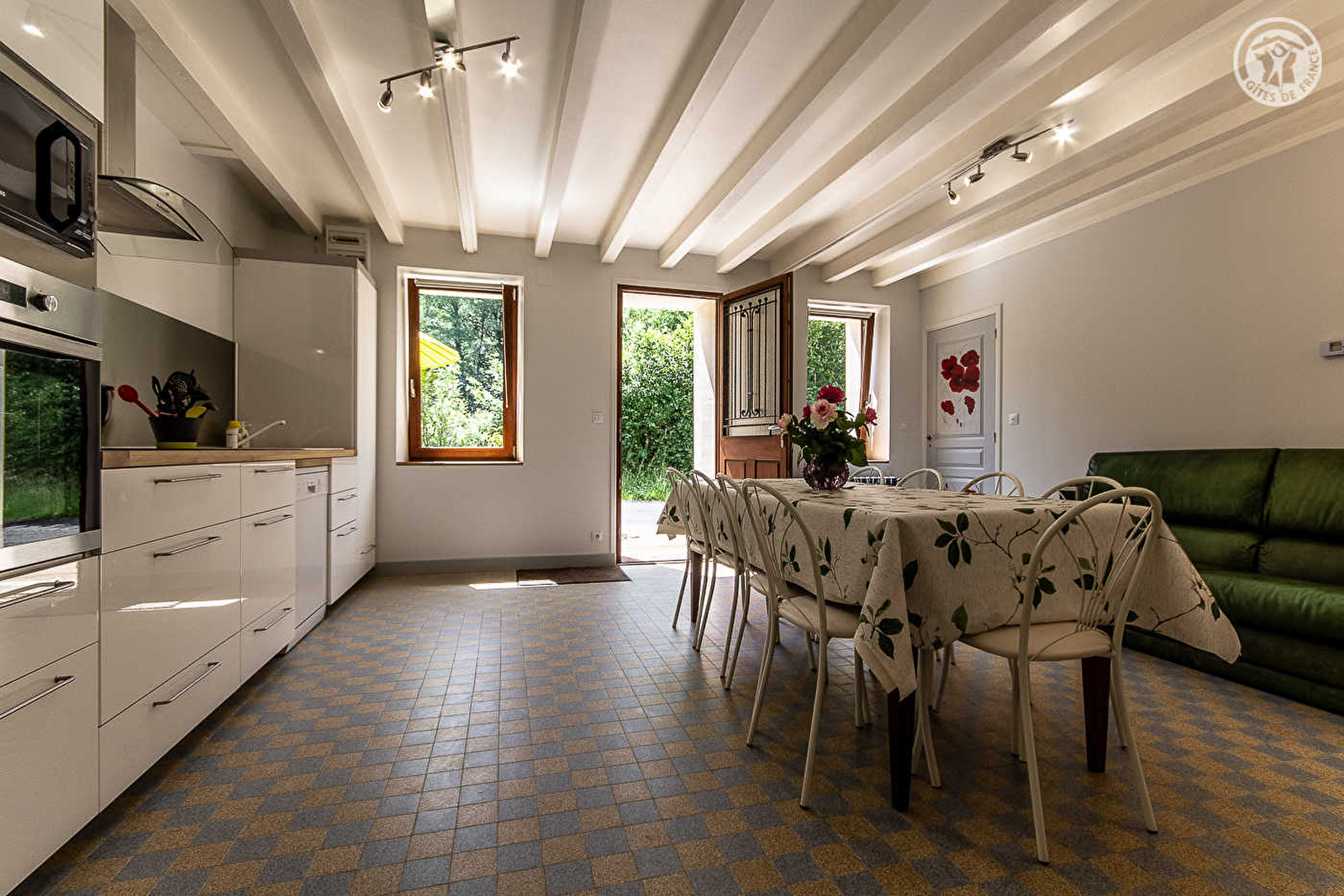 Bernadette vous accueille au sein d'un authentique corps de ferme de caractère du 19ème siècle - soigneusement restauré dans les règles de l'art - jouxtant son habitation sise sur une propriété close particulièrement soignée, littéralement « tirée au cordeau » (arborée, végétalisée, engazonnée et très fleurie), en partie aménagée dans l'esprit d'une « micro ferme » hébergeant de nombreux animaux parqués sans nuisance (poules, oies, deux ânesses…), dotée d'une production de miel « maison » (à déguster !). Véritable coin de paradis pour petits & grands ! Paisible petit hameau résidentiel, calme et très tranquille, lové au creux d'un ravissant écrin préservé de nature & verdure, en lisière de bocage et de la vaste forêt domaniale de Planoise (comptant parmi les plus grandes de France), sur un plateau dominant la vallée du Mesvrin, charmante coulée verte serpentant au pied du massif d'Uchon (« la Perle du Morvan »). Magnifique cadre paysager vallonné de montagne douce alliant prairies, vallées verdoyantes et collines boisées. Splendide vue dégagée sur la campagne environnante. Paysages et panorama de toute beauté. Spacieux gîte de très bon confort. Chaleureux cachet campagnard contemporain. Ambiance zen, douce et cosy. Équipement de qualité. Large terrasse exposée et ombragée (selon). Agréable jardinet privatif, aménagé et fleuri (disposant d'un second salon de jardin) & vaste propriété partagée en commun avec les propriétaires (notamment accessible pour visiter les animaux).