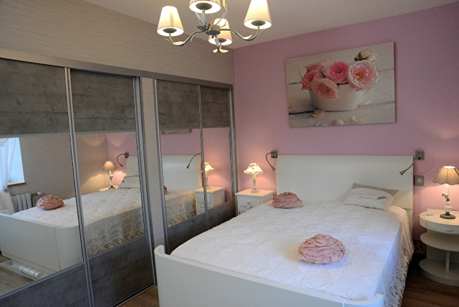 Un surprenant gîte entièrement rénové au 1er étage dans une maison mitoyenne entièrement indépendante. Venez pousser la porte de ce gîte le clos des Grillons et découvrez la qualité et le confort de cette belle prestation. Un vaste séjour lumineux s'offre à vous avec une cuisine moderne entièrement équipée, une salle à manger confortable et un espace salon reposant. Le gîte dispose de 2 chambres décorées avec goût dont une avec 1 lit en 160x200. Une chambre dispose également d'un lit pour 1 personne supplémentaire si besoin. La propriétaire a imaginé une petite salle de jeux pour enfants. Une spacieuse salle de bain avec 2 lavabos, 1 douche à l'italienne et une baignoire d'angle. 2 wc indépendants. La visite se poursuit avec la découverte de l'espace "zen attitude" : fauteuil de massage, 1 espace douche et l'accès au bio sauna (une fonction sauna sec ou humide). Grand espace extérieur non clos avec salon de jardin et plancha. Un gîte à découvrir absolument. Lits faits à l'arrivée. Pour info : hôtel canin à proximité. Possibilité de louer le gîte pour 2 ou 6 personnes : voir tarifs sur le site des propriétaires.