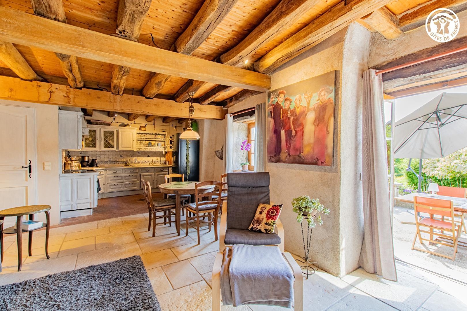 Belges de naissance et bourguignons d'adoption, Katty (artiste peintre dont vous pourrez admirer les œuvres & visiter l'atelier sur place) & Alex, vous ouvrent les portes d'une authentique ferme traditionnelle de caractère du XIXe, soigneusement restaurée, blottie en "balcon" & "belvédère panoramique", à flanc de coteau sud, au sein d'un intimiste mini hameau rural chargé d'histoire, niché en impasse. Absolue tranquillité & magnifique "petit coin de campagne", lové au creux d'un bucolique vallon de prairies (où paissent les paisibles ânes des propriétaires ou des vaches charolaises en saisons) au cœur du sublime bocage local, à l'orée d'une petite forêt sauvage & deux pas d'une petite rivière poissonneuse. Splendide écrin préservé de nature & verdure. Cadre & site absolument enchanteurs. Littéral havre de paix & repos, 100% reposant. Possibilité d'observer la faune sauvage sur place (chevreuils, renards, rapaces & oiseaux, rares cigognes noires etc…). Gîte de très bon confort. Chaleureux cachet d'esprit "campagne chic", conjugué à l'âme totalement dépaysante d'une ancienne demeure rurale parfaitement sauvegardée. Chambre lovée sous les toits en mode "cocon". Ambiance "moelleuse" digne d'un douillet "petit nid". Ultra cosy & cocooning. Énormément de charme & de caractère. Agréable jardin fleuri & végétalisé dominant les prés en "vigie", sur une propriété très soignée (abritant un mini poulailler). Large terrasse exposée offrant une très belle vue dégagée sur la campagne environnante.