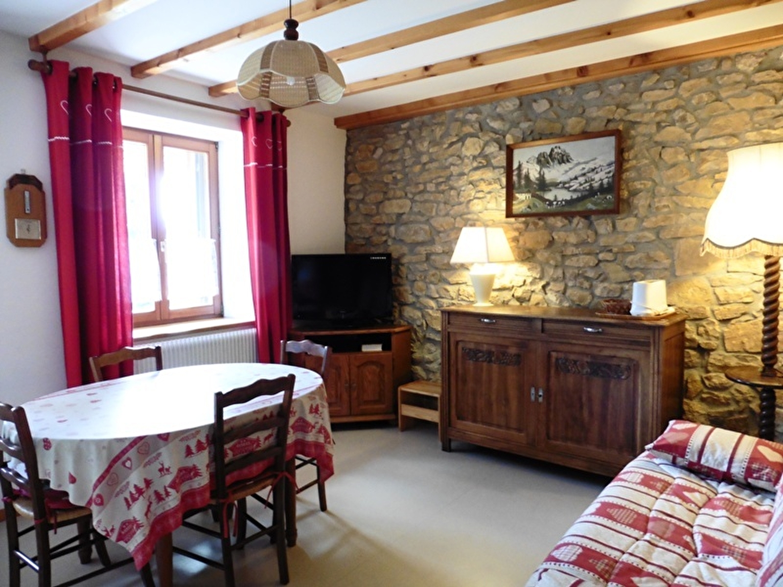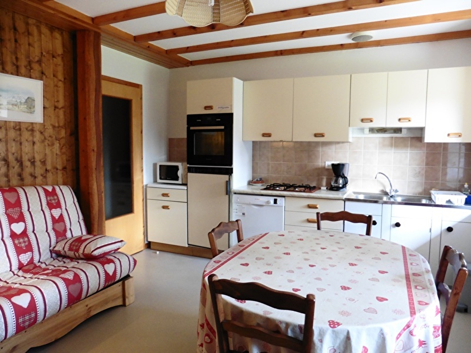 Au coeur du Parc Naturel Régional du Haut Jura, dans un quartier calme de la Station des Rousses, idéalement situé à seulement quelques mètres du Lac pour l'été, et ainsi que des navettes skibus pour l'hiver, est aménagé un logement à l'étage d'une maison mitoyenne. Cuisine entièrement équipée et séjour avec TV écran plat et canapé convertible 2 pl, salle de bains, wc indépendants, ch1: 2 lits 1 pl, lit bébé à disposition, terrain attenant clos, salon de jardin, barbecue, et jeux extérieurs pour enfants. Local à ski et vélos à disposition, parking privé et déneigé. Chauffage central. Toutes charges comprises.