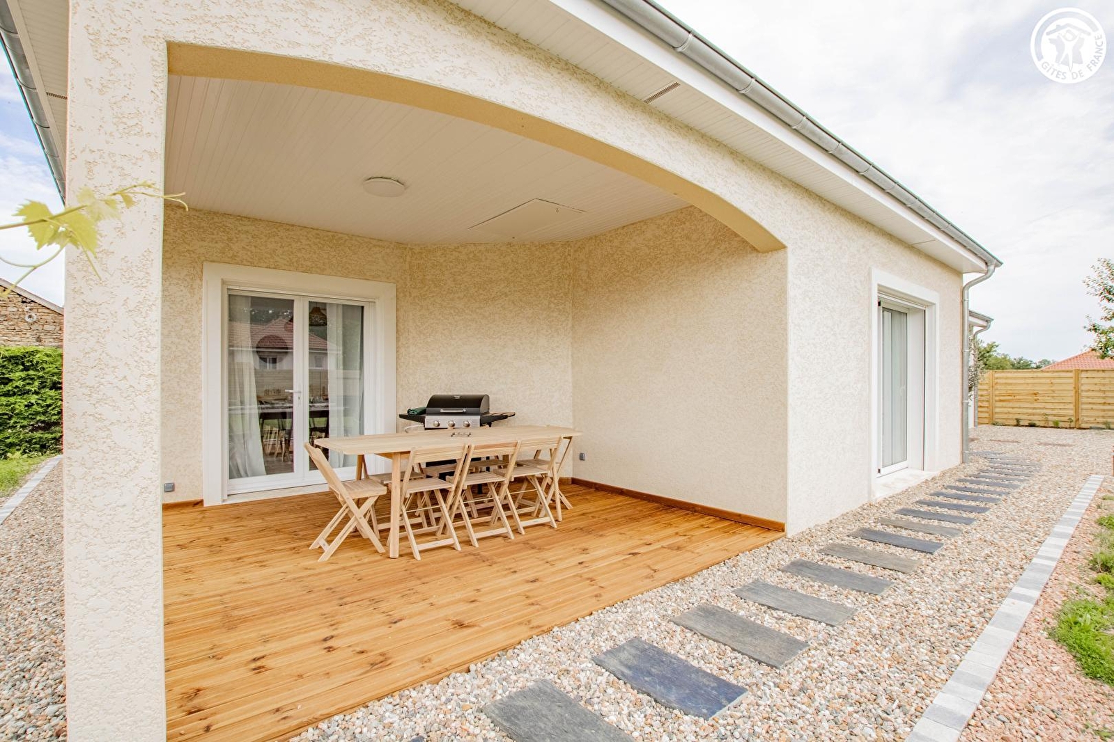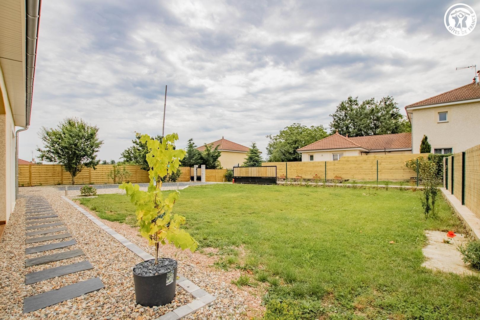 Réunionnais de naissance & bourguignons d'adoption, tous deux passionnés de jardinage (potager "bio" & poulailler géré dans un esprit écologique pour le plaisir d'œufs frais durant votre séjour, à découvrir sur place), Magalie & Patrice vous accueillent au sein d'une élégante villa contemporaine de style, blottie au calme en impasse, au cœur d'un petit village résidentiel. Niché en pleine campagne charolaise, au creux du sublime bocage local (accueillant en saison les célèbres vaches charolaises) & du verdoyant vallon de l'Ozolette (& sa rivière poissonneuse), ce paisible petit bourg rural adossé à un bois dispose d'un "citystade" (sis à deux pas) et profite d'un magnifique écrin champêtre & naturel vallonné parfaitement préservé, mixant agriculture & pleine nature, entre bucoliques prairies de pâtures, belles forêts sauvages, rivières & étangs, non loin des premiers contreforts du massif du Beaujolais (vaste espace forestier sauvage de montagne douce). Gîte de grand confort & standing. Spacieux & lumineux. Vaste pièce de vie de 56m². Chaleureux cachet campagnard contemporain d'inspiration nordique. Ambiance zen & très douce. Beaucoup de charme & de caractère. Cosy & très douillet. Equipement complet de qualité. Large terrasse abritée ouvrant sur un agréable jardin clos engazonné de 150m², végétalisé & arboré (cerisier, prunier, figuier... / cueillette possible) doté d'un mini potager aromatique.
