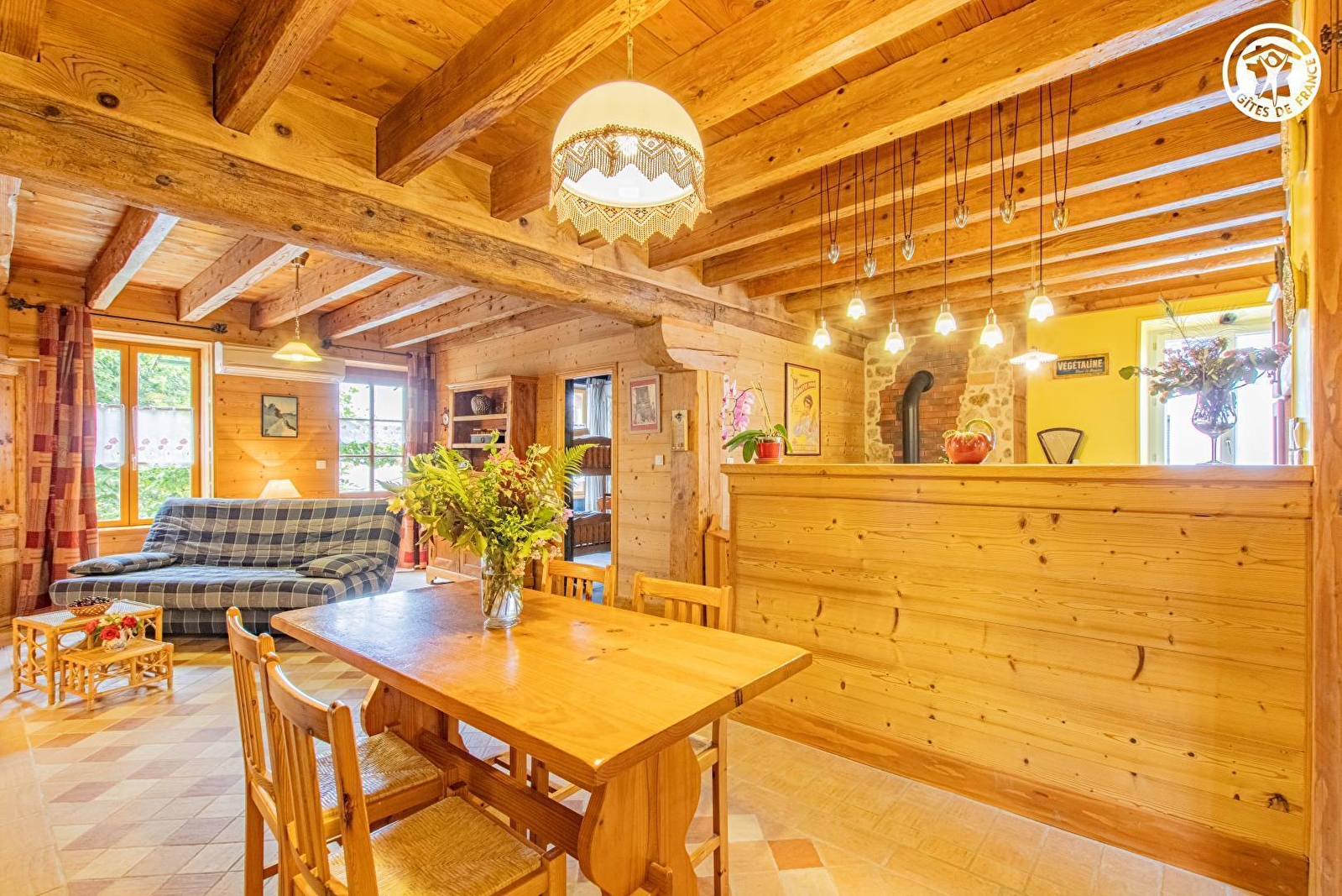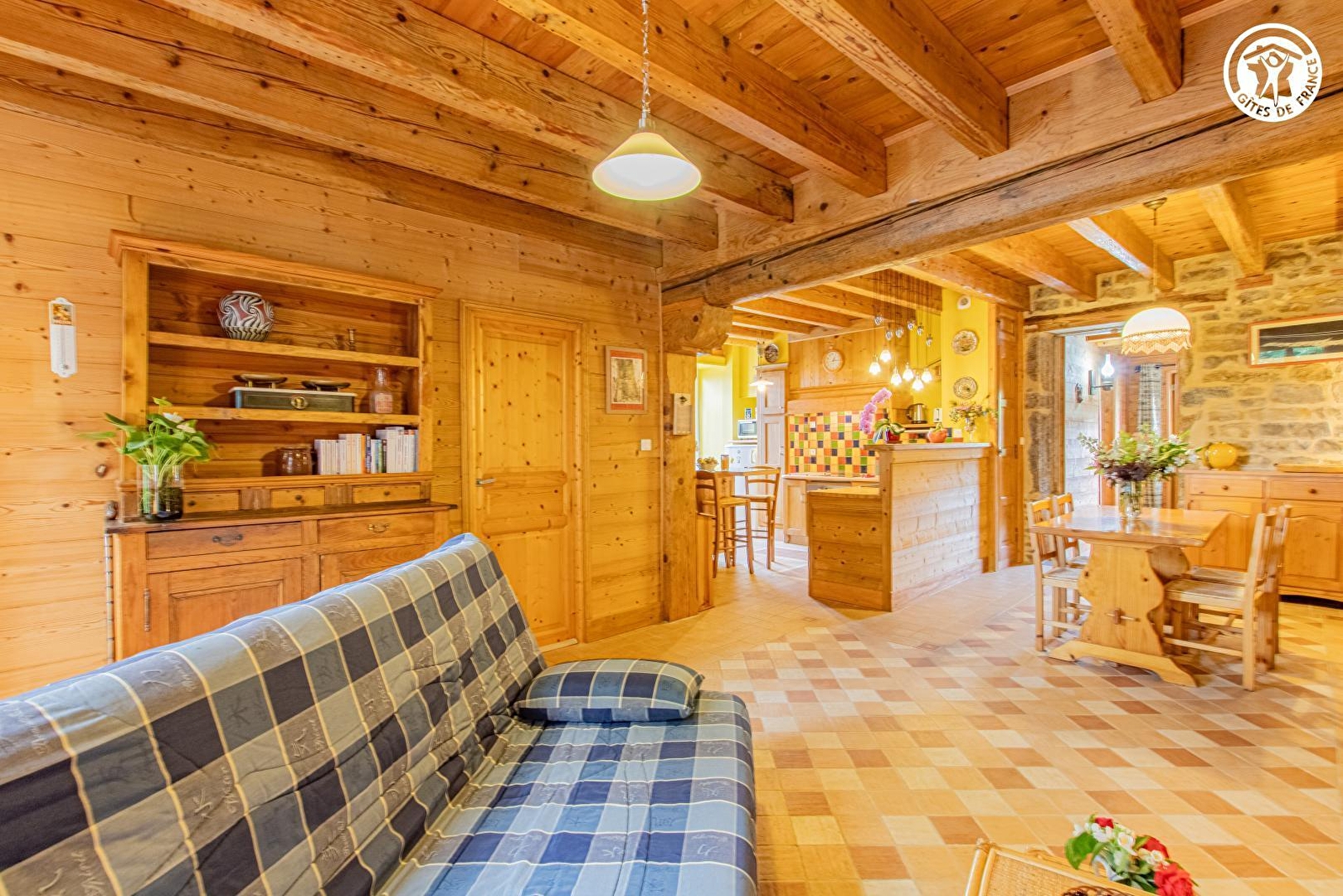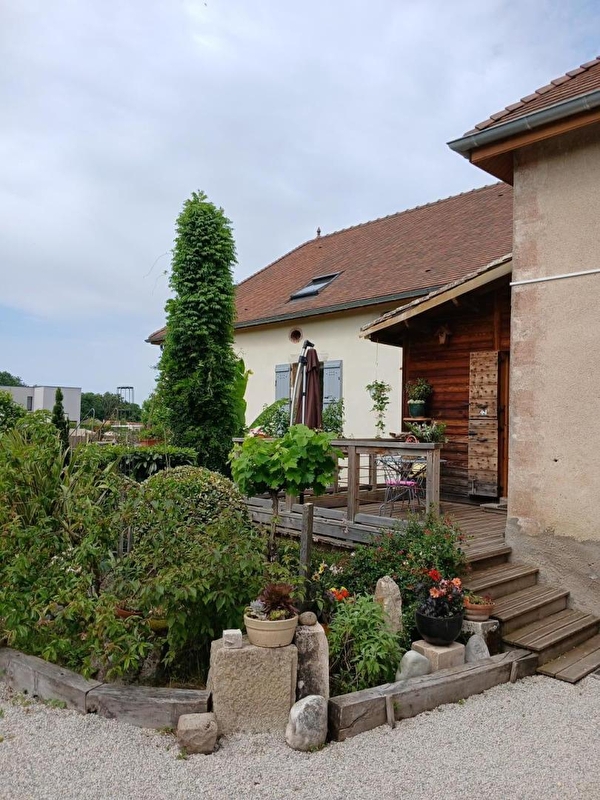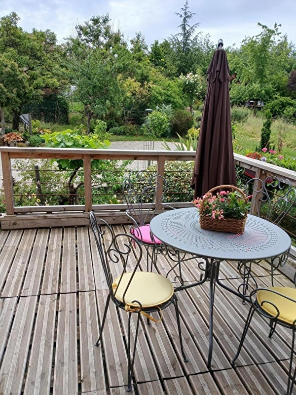 Composition : Gîte dans maison des propriétaires (totale indépendance). Wifi (fibre). Chauffage PAC + poêle à bois. Climatisation. Rdc surélevé (4 marches) : séjour-cuisine-salon, 2 chambres (lit 2 p. 140x190cm / 2 lits 1 p. superposés 90x190cm), salle d'eau (douche), Wc indépendant. Balcon + balcon-terrasse + jardinet (espace réservé sur propriété 4000m² en commun) + local vélos + parking privés. Petits commerces et supermarché 1 km.