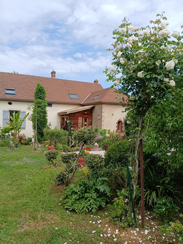 Passionnés de nature et apiculteurs amateurs (ruches sur place mais bien à l'écart), Elisabeth & Dominique vous ouvrent les portes d'une authentique demeure de vignerons du XIXe soigneusement restaurée dans un esprit d'éco-construction, blottie au calme à flanc de colline, à deux pas des vignes, au sein d'un paisible quartier résidentiel dominant le bourg. Niché sur les rives du célèbre Canal du Centre au creux de la vallée de la Dheune ("la vallée de la céramique "chargée d'histoire), doté de nombreux petits commerces (dont supermarché), d'un port de plaisance fluvial & d'un patrimoine notable (église romane du XIe, anciennes tuileries…), le village profite d'un superbe cadre préservé mixant coteaux de vignobles, bucoliques prairies bocagères & belles forêts sauvages, jouxtant les sublimes vignobles du Couchois & des Maranges, tout proche du Mont Rome (546m), site d'escalade réputé & superbe belvédère. Spacieux gîte de bon confort (ancienne cuverie). Vaste pièce de vie. Chaleureux cachet d'esprit "campagne chic" sublimé par l'âme du bâti (poutres & plafonds, murs & linteaux en pierres, portes moulurées en bois... d'origine). Énormément de charme & caractère. Ultra cosy & douillet. Large balcon-terrasse exposé. Espace jardin "réservé" sur une très agréable propriété de 4000m², aménagée dans un esprit naturel & écologique, bordant une mini pâture accueillant des "chevaux nains" en saisons, doté d'un potager en permaculture & d'un verger fruitier (pruniers, cerisiers, pommiers, pêchers… / cueillette possible avec accord propriétaires).
