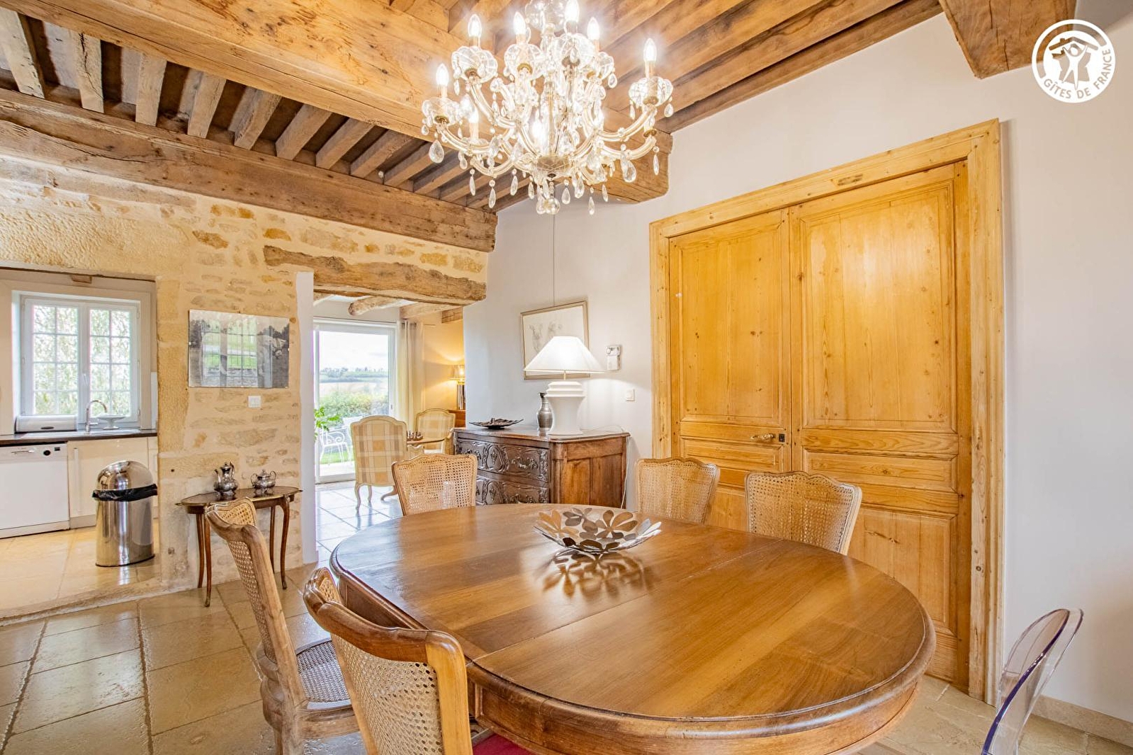 Ravissante authentique demeure de caractère du XVIIe soigneusement restaurée, sur une propriété de plusieurs ha pétrie d'histoire, jadis domaine agricole lié au château voisin d'Anne-Charlotte de Chancy, épouse du célèbre mousquetaire D'Artagnan. Totale tranquillité en pleine campagne charolaise (protégée en ZNIEFF pour ses richesses faunistiques & floristiques), au sein d'un hameau rural dispersé lové au cœur du bucolique bocage local, au creux d'un vaste plateau de pâture vallonnée, à deux pas d'une belle forêt domaniale. Spacieux gîte de grand confort. Vaste pièce de vie. Chaleureux cachet campagnard "bourgeois", cossu & raffiné, sublimé par l'âme préservé du bâti d'origine (manteau de cheminée, linteaux & murs en pierres, tommettes, charpente & poutres, plafonds à la française…). Énormément de charme & caractère. Ultra cosy & douillet. Agréable jardin aménagé blotti en lisière de prairies accueillant les chevaux des propriétaires, abritant une terrasse exposée (& terrasse abritée sous tonnelle), une piscine semi-enterrée dotée d'une "plage panoramique" offrant une sublime vue sur les pâtures environnantes, une balançoire & un terrain de pétanque "naturel" côté cour. Exceptionnelle salle de jeux couverte (300m² avec trampoline, ping-pong, panier basket, billard, baby-foot etc…). Littéral havre de repos.