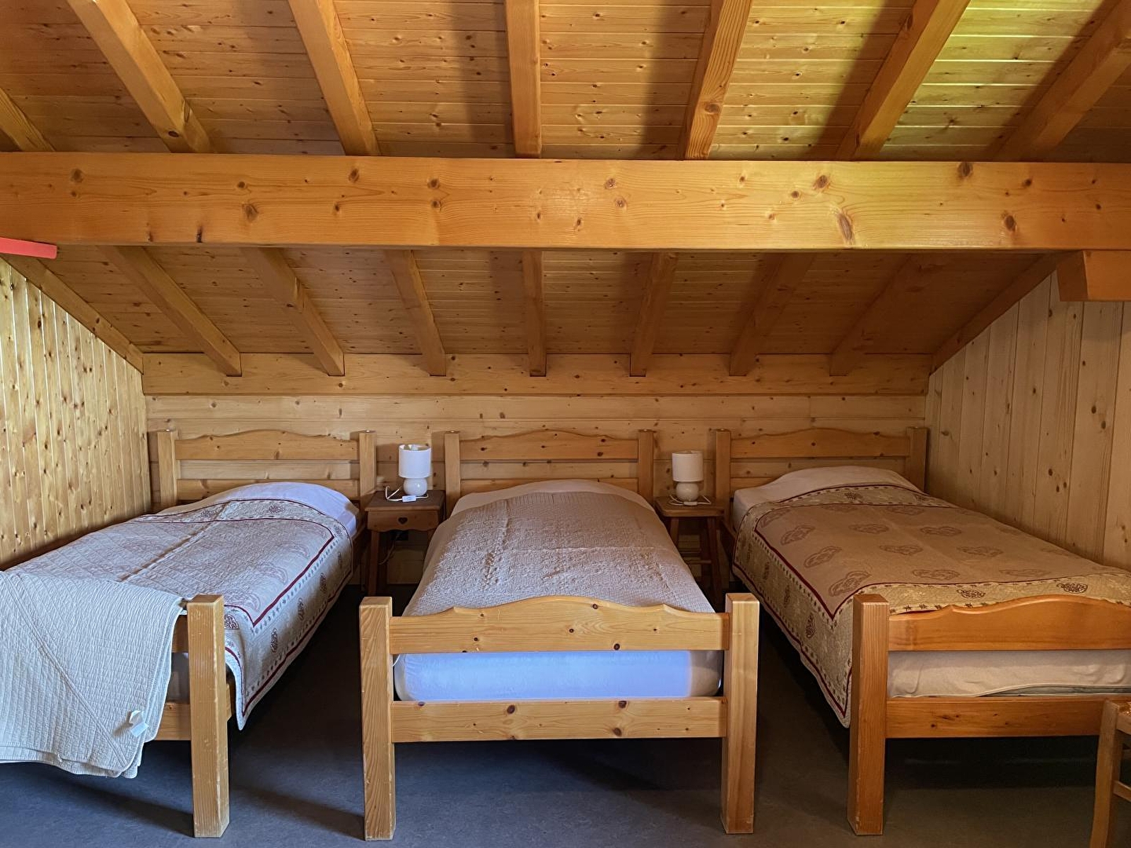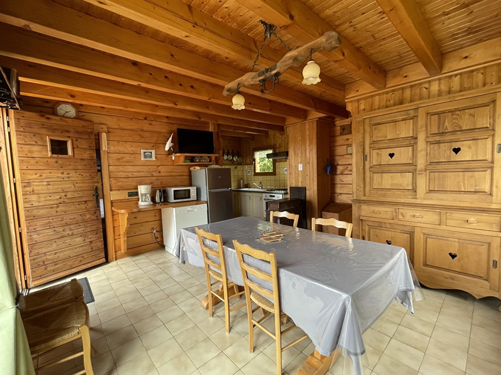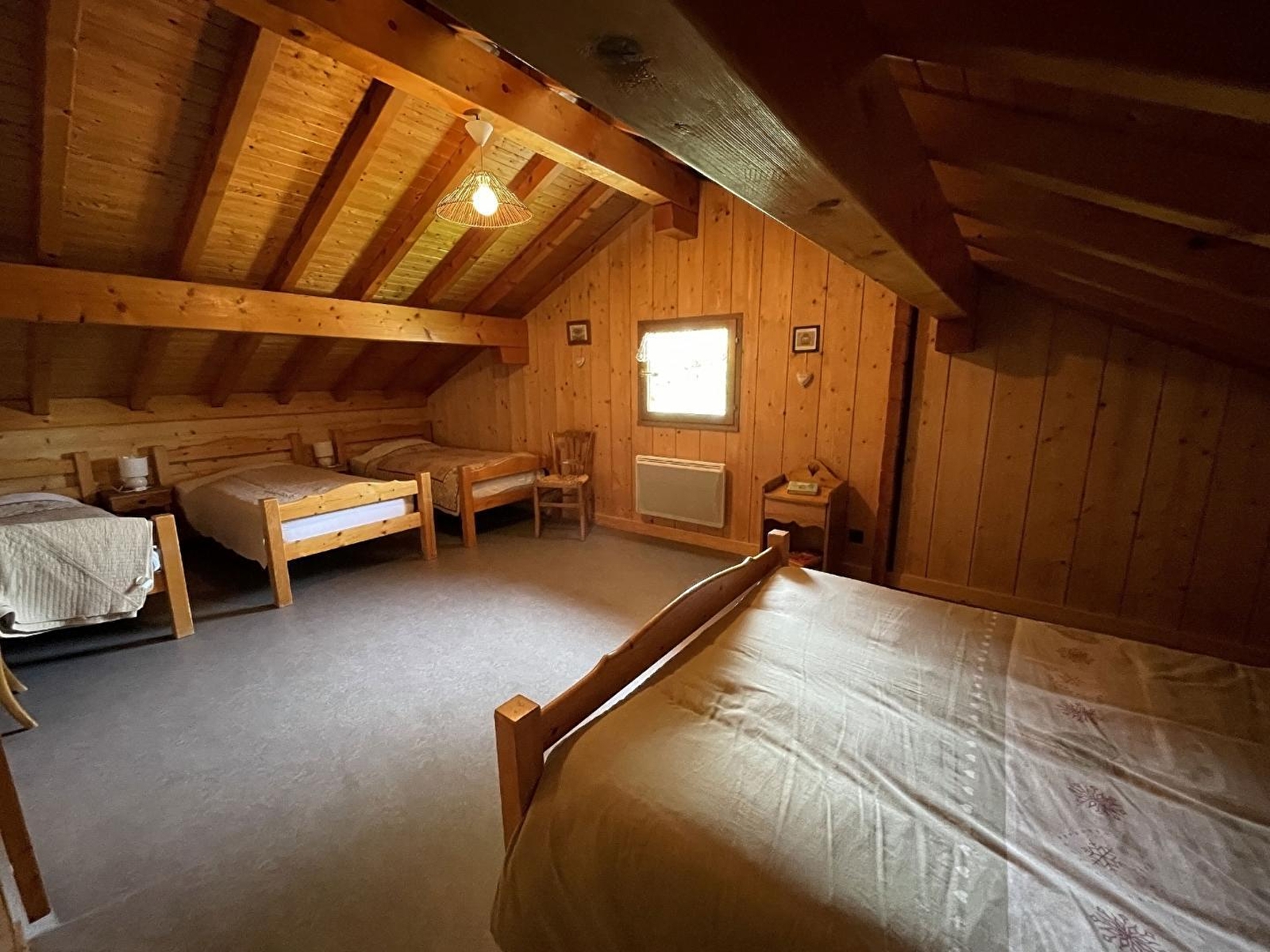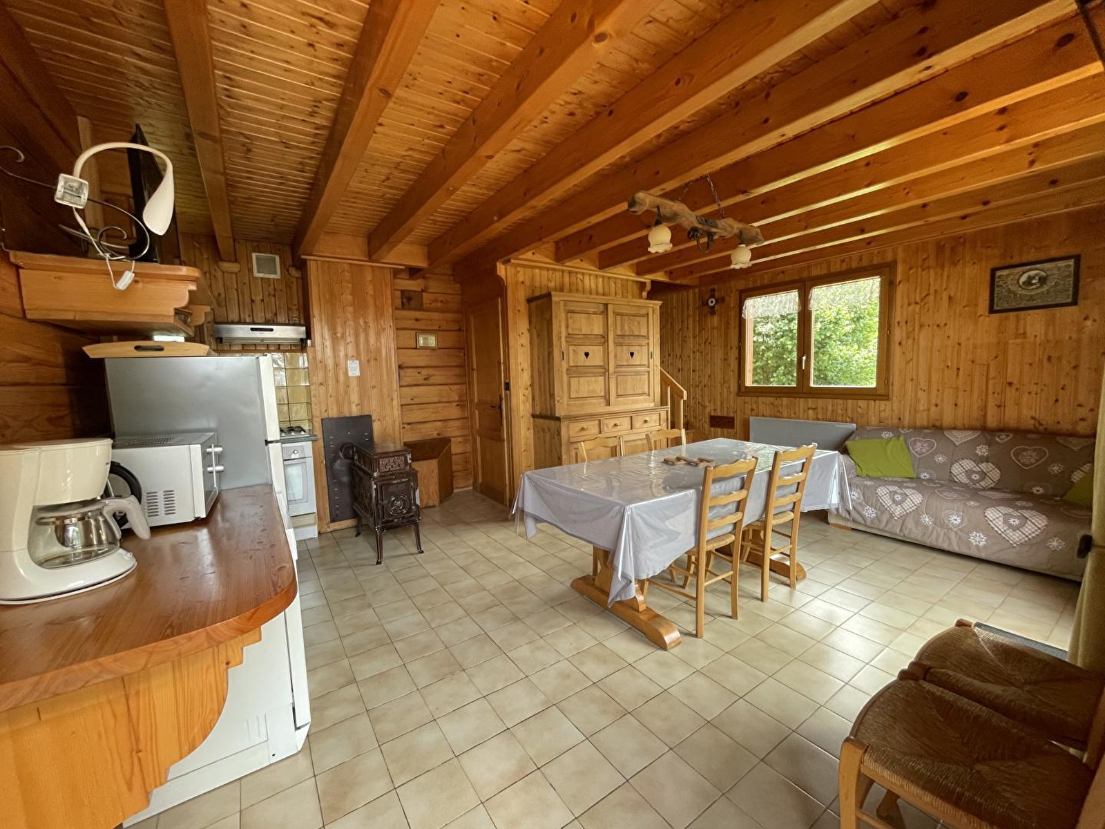 Chalet indépendant avec au 1er étage: séjour et coin cuisine avec poêle à bois et TV écran plat, ch1: 1 lit 2 pl, salle d'eau avec WC. Au 2ème étage: wc, ch2: 1 lit 2 pl, 3 lits 1 pl. Cour et petit terrain privés non clos, balcon, salon de jardin, barbecue. Chauffage électrique et bois. Le propriétaire se fera un plaisir de vous faire visiter sa ferme en activité à 4 km. Parking privé sur place et volets dans les chambres. Attention : ne pas suivre les indications du GPS en hiver car petites routes non déneigées