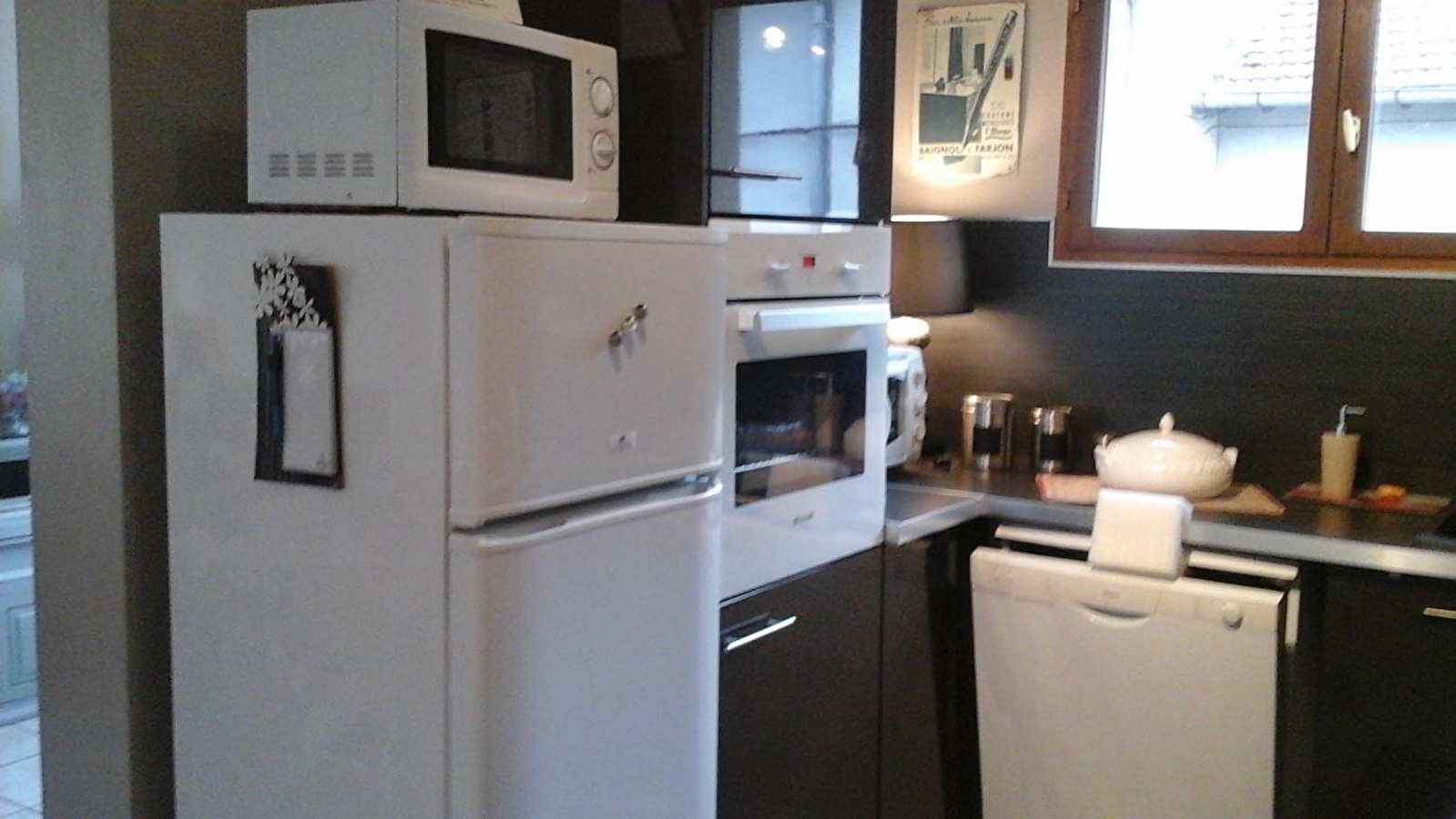 Au centre de la petite ville d'Arbois, capitale des vins du Jura, dans un quartier classé aux Monuments historiques, est aménagé un gîte dans une maison mitoyenne. Au RDC: hall d'entrée. A l'étage : pièce à vivre cuisine intégrée équipée, salle à manger, salon avec canapé convertible TV, lecteur DVD. CH1: 1lit 2pl +TV, CH2: 1lit 2pl +TV. Salle d'eau, WC indépendant. Balcon offrant une jolie vue sur la rivière " La Cuisance ", barbecue. Garage privatif fermé. Chauffage électrique au sol.Draps, linge de toilette et linge de maison inclus. Tarifs dégressifs à partir de 2 semaines. Référencé par la marque "Vignoble et Découverte". Wifi sur demande. Forfait ménage obligatoire d'un montant de 50 euros. Tarif dégressif à partir de 2 semaines de location