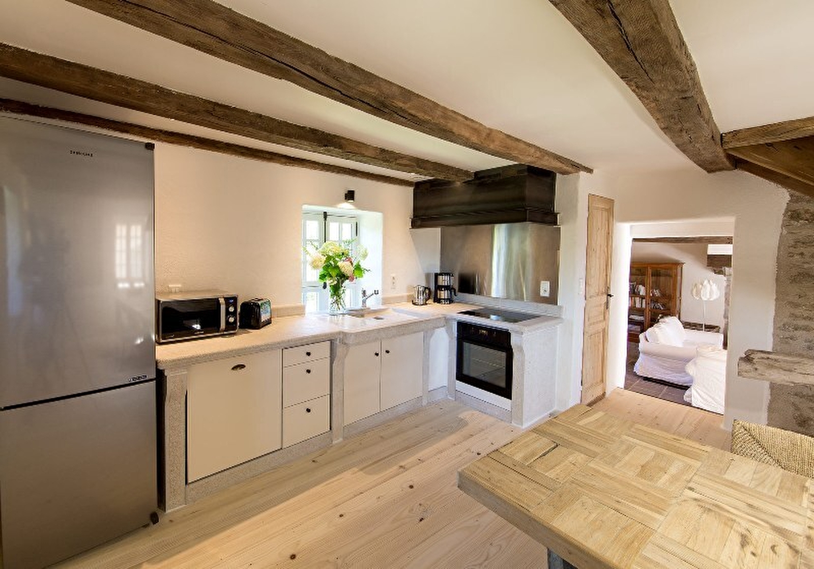 C'est dans un écrin de verdure, sur les hauteurs du village dans un lieu hors du commun que vous pourrez profiter du prestige d'une maison de caractère magnifiquement rénovée alliant confort moderne et charme de l'ancien. Tout est pensé ici pour le bien être des hôtes à la recherche d'un lieu calme et agréable. Ce gîte est aménagé sur trois niveaux, et propose un séjour-cuisine équipée, un vaste salon avec son imposante cheminée et trois chambres toutes équipées d'une salle d'eau privative. Un petit jardin vous tend les bras pour déjeuner dehors, ou vous détendre en famille, et vous aurez également tout le loisir de profiter de l'ensemble du domaine, de la piscine (commune), en passant par une partie de pêche au bord de l'étang ou une balade à pied ou en VTT sur les sentiers qui jalonnent le parc du château. Cet endroit d'exception appel au ressourcement. A découvrir absolument!