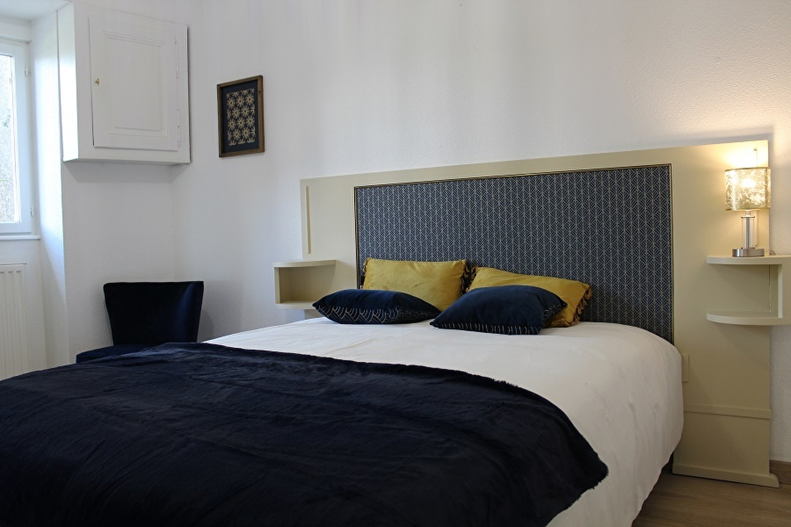 Charmante maison de ville de plain pied, idéalement située, dans un quartier calme et à 10 minutes à pied de la ville historique.Aménagée avec une décoration cosy, la maison se compose d'une pièce à vivre avec cuisine toute équipée (bouilloire, cafetière, cafetière à dosette, grille-pain, appareil à raclette et pierrade) et coin salon avec canapé convertible, TV et lecteur DVD, une chambre avec 1 lit en 140, une salle d'eau, un WC séparé et un cellier. Pour votre plus grand confort, les draps sont fournis et les lits seront faits à votre arrivée. Animal de moins de 10 kgs accepté. Possibilité de garage pour vélos et motos sur demande auprès des propriétaires Côté extérieur, un terrain clos avec une terrasse en bois avec salon de jardin, transats, salon de détente et plancha. Vous pourrez partir à pied depuis le gîte à la découverte de la ville, classée ville d'arts et d'histoire. Vous apprécierez de flâner le long du canal des Tanneurs , de découvrir la ville et ses environs sur des barques électriques ou encore d'emprunter l'Euro véloroute... De nombreux loisirs à proximité : A 10 mns centre-ville, Euro véloroute, piste cyclable, canoé-kayak, accrobranche, aviron, Aquaparc (bassin olympique,, bain bouillonnant, toboggan, rives du Doubs et de la Loue pour pêche et baignade A 15 mns : tennis, équitation, bowling, musée des beaux-arts, maison natale de Pasteur Vous pourrez également faire d'agréables randonnées au cœur de la 3ème plus grande forêt de France (22000 hectares) : la Forêt de Chaux.