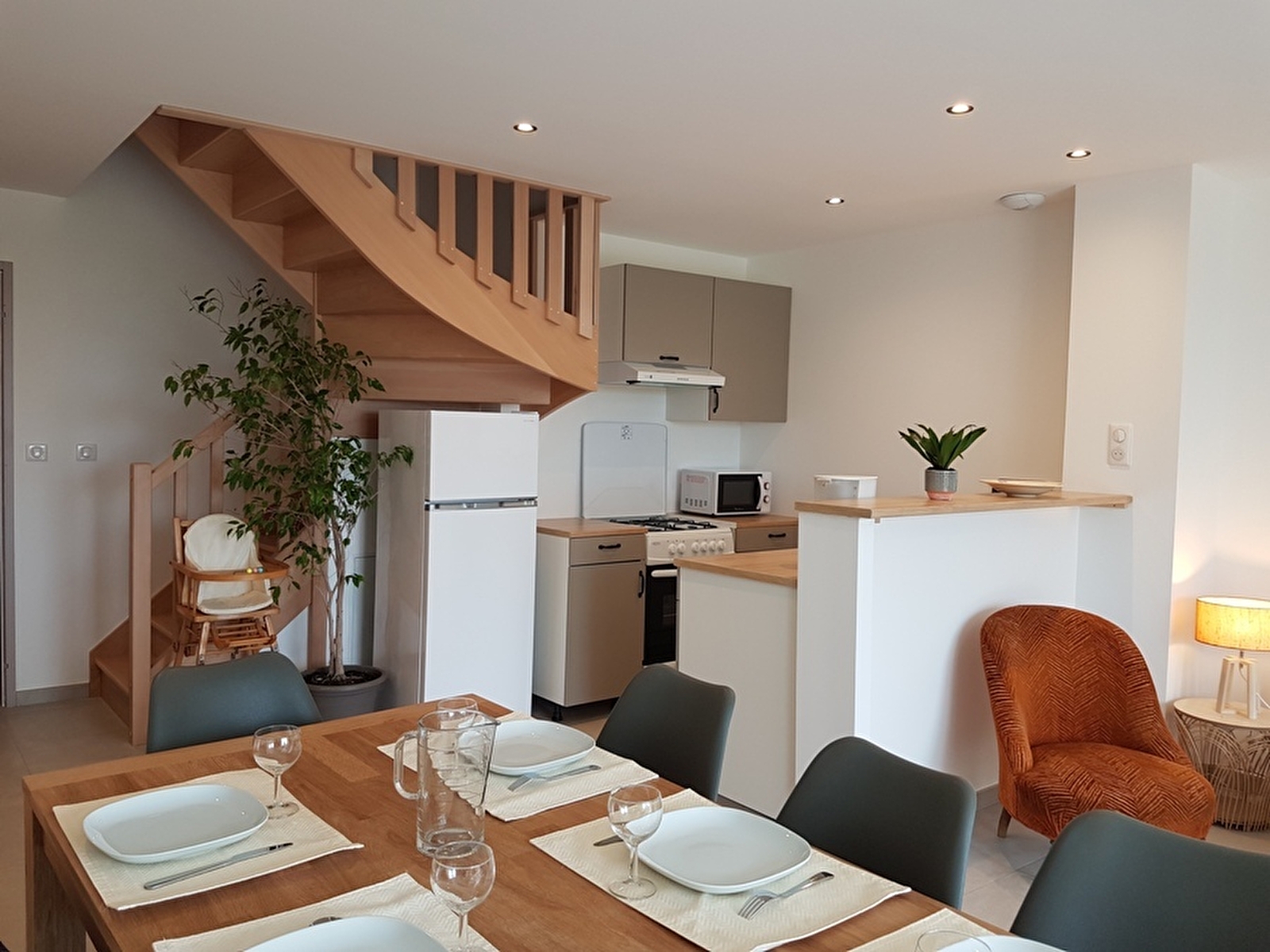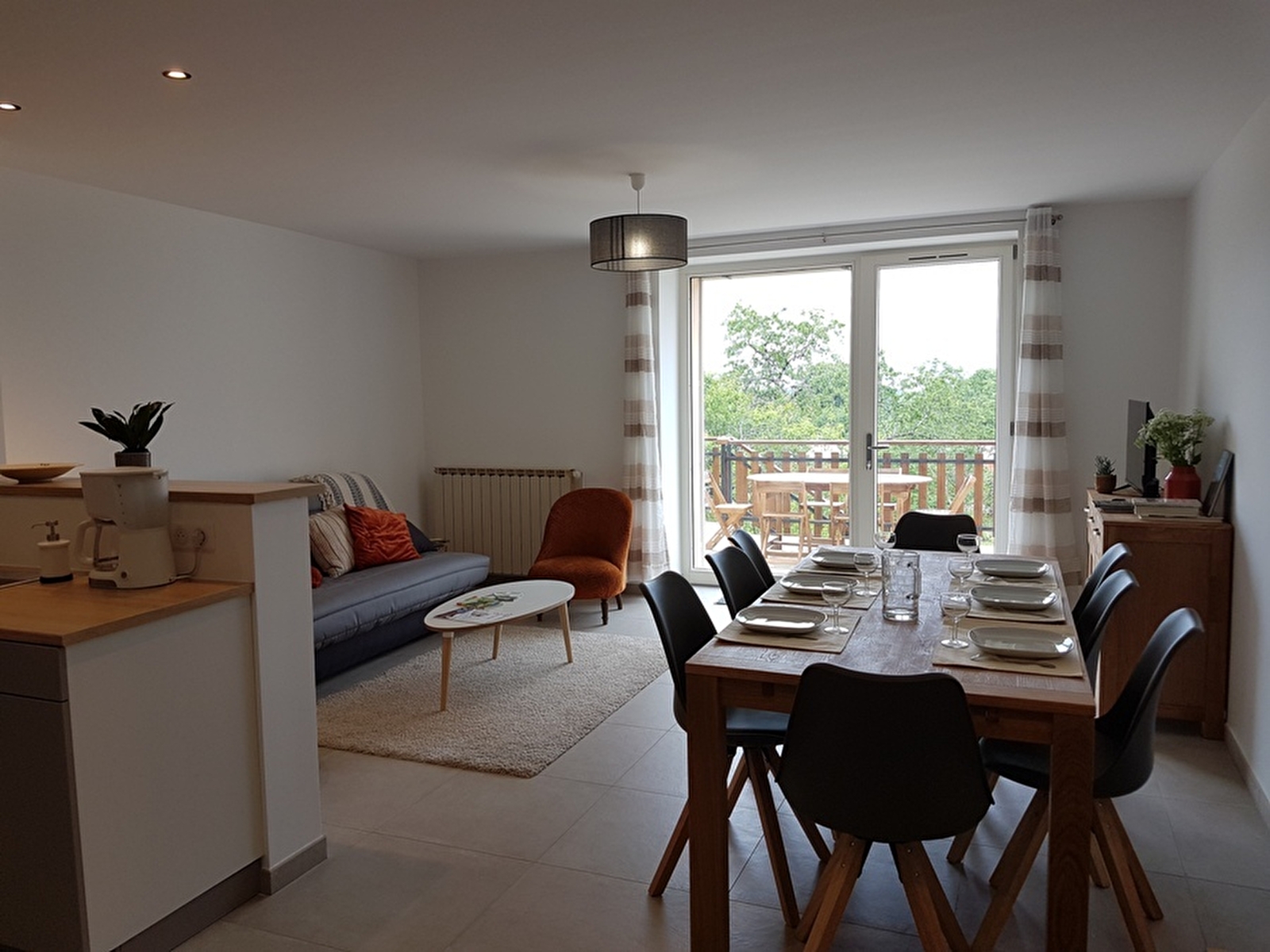 Découvrez cet appartement entièrement rénové situé dans la maison du propriétaire. Il se compose au rez-de-chaussée d'une pièce à vivre avec cuisine équipée, salon avec TV offrant un accès direct à la terrasse. Un WC indépendant est également à votre disposition. À l'étage, deux chambres vous attendent : l'une est dotée d'un lit de 160 cm et de deux lits superposés, tandis que l'autre dispose d'un lit de 160 cm. Chaque chambre possède sa propre salle d'eau avec douche, WC séparé. Pour votre plus grand confort, les lits seront faits à votre arrivée. Vous pouvez profiter (sous réserve de disponibilité) d'une troisième chambre au rez de chaussée, équipée d'un lit de 160cm et d'une douche. WC attenants. Soit 8 couchages au total. (par nuit 25€ supplémentaire et la 7ème nuit offerte) Côté extérieur, vous pourrez profiter de la quiétude des lieux sur la terrasse aménagée avec un salon de jardin, des transats et un barbecue. Idéalement situé aux portes de la région des lacs, sur les hauteurs de la ville thermale de Lons le Saunier. Vous serez à quelques encablures du lac de Vouglans, 3ème plus grand lac artificiel de France, mais également des villages pittoresques de Baume les Messieurs et Château-Chalon, sans oublier le lac de Chalain et les cascades du Hérisson. Jean le propriétaire se fera également un plaisir de vous conseiller sur les itinéraires de randonnée.