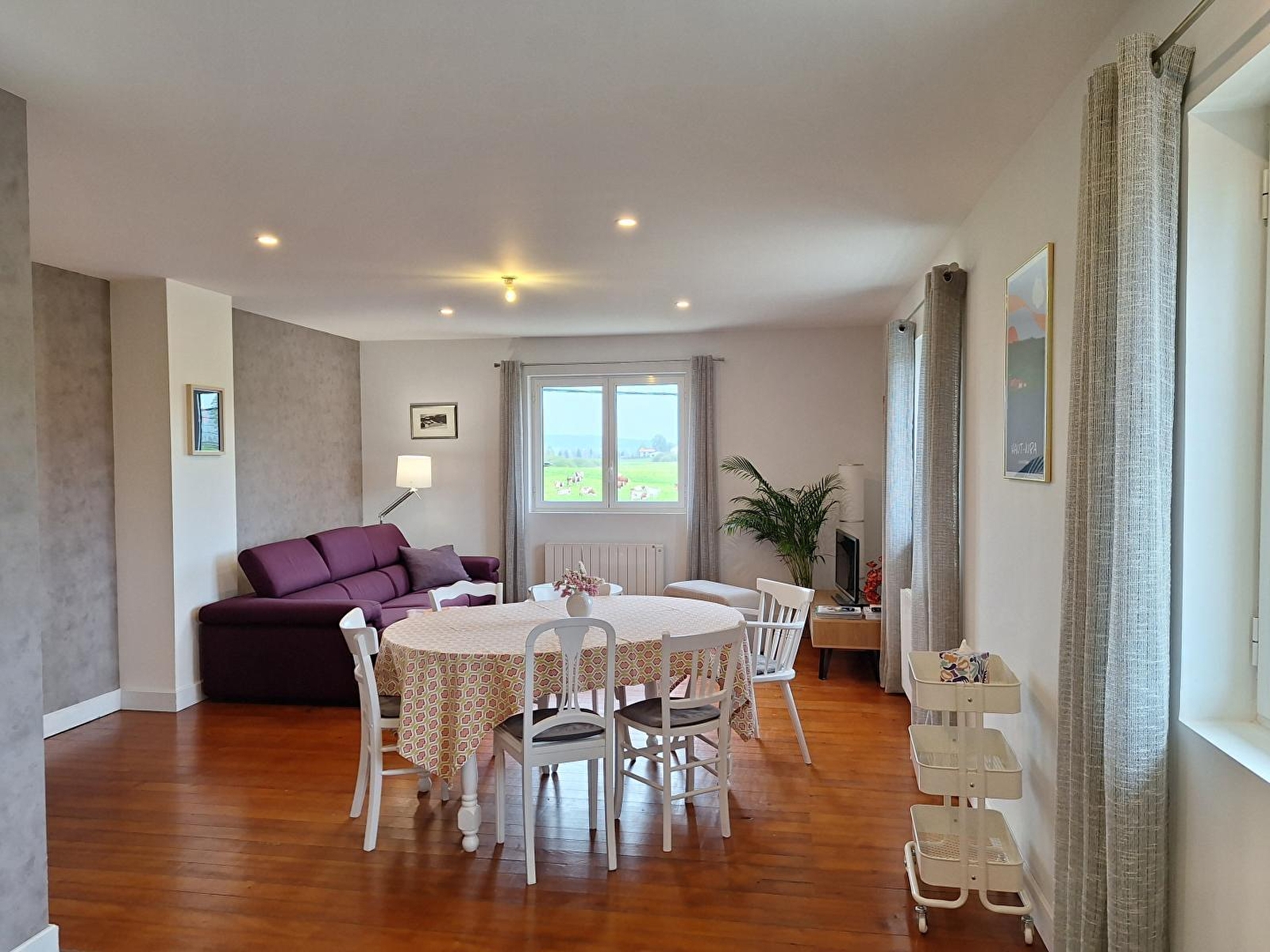 Situé au 1er étage, au dessus de l'ancienne fruitière à Comté, ce gîte lumineux et très calme surplombe l'exploitation familiale et vous offre une vue imprenable sur les chèvres, les vaches et les pâturages. Si vous le souhaitez, vous pourrez goûter aux produits de la ferme comme lait ou le fromage de chèvre et visiter l'exploitation. Il se compose d'une pièce de vie avec cuisine toute équipée, coin salle à manger et espace salon avec TV, d'une chambre avec 1 lit double (160*200), d'une chambre avec 1 lit double (140*190) et 1 lit simple (90*190) et dune salle d'eau avec douche et WC. Côté extérieur, vous pourrez profitez d'une terrasse couverte non attenante avec salon de jardin, transats et barbecue. Idéalement situé, au cœur du Parc naturel régional du Haut-Jura, vous pourrez faire de nombreuses randonnées à pied ou à vélo, pratiquer le ski de fond et la raquette. Cet hébergement bénéficie de la marque valeur parc.