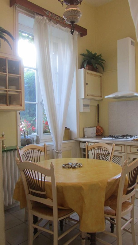 Artistes de cabaret, Catherine & Jean-Pierre, vous accueillent au sein d'une élégante demeure de maitre de 1830 chargée d'histoire intégralement restaurée, liée jadis à une tisserie artisanale qui occupait les lieux. Calme & tranquillité en bordure de ruelle, jouxtant le dernier lavoir du village de 1850 (accessible), au sein d'un paisible quartier résidentiel du centre-bourg de Marcigny au charme d'antan. Longée par la Loire & blottie en pleine douce campagne brionnaise préservée, cette pittoresque cité médiévale dispose d'un patrimoine exceptionnel, offre de très nombreuses commodités toutes accessibles à pied (commerces, services & équipements de loisirs) et profite d'un cadre champêtre alentour de toute beauté, magnifique écrin préservé de nature & verdure, alliant belles forêts sauvages, rivières & étangs au somptueux bocage local. Gîte de bon confort. Spacieux & lumineux. Très beaux volumes. Chaleureux cachet campagnard "bourgeois" aux touches contemporaines. Énormément de charme & caractère. Ambiance dépaysante digne d'une douce "maison de famille". Agréable jardinet clos agrémenté d'une glycine & d'une terrasse en gravier exposée & ombragée (selon). Accès à un insolite jardin clos & soigné de 1500m², traversé par un bucolique petit ruisseau, végétalisé & très fleuri, abritant une belle piscine sécurisée clôturée (3.5 x 7m), une table de ping-pong ainsi que 3 roulottes (chambres d'hôtes).