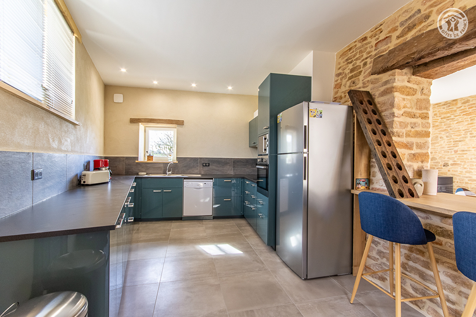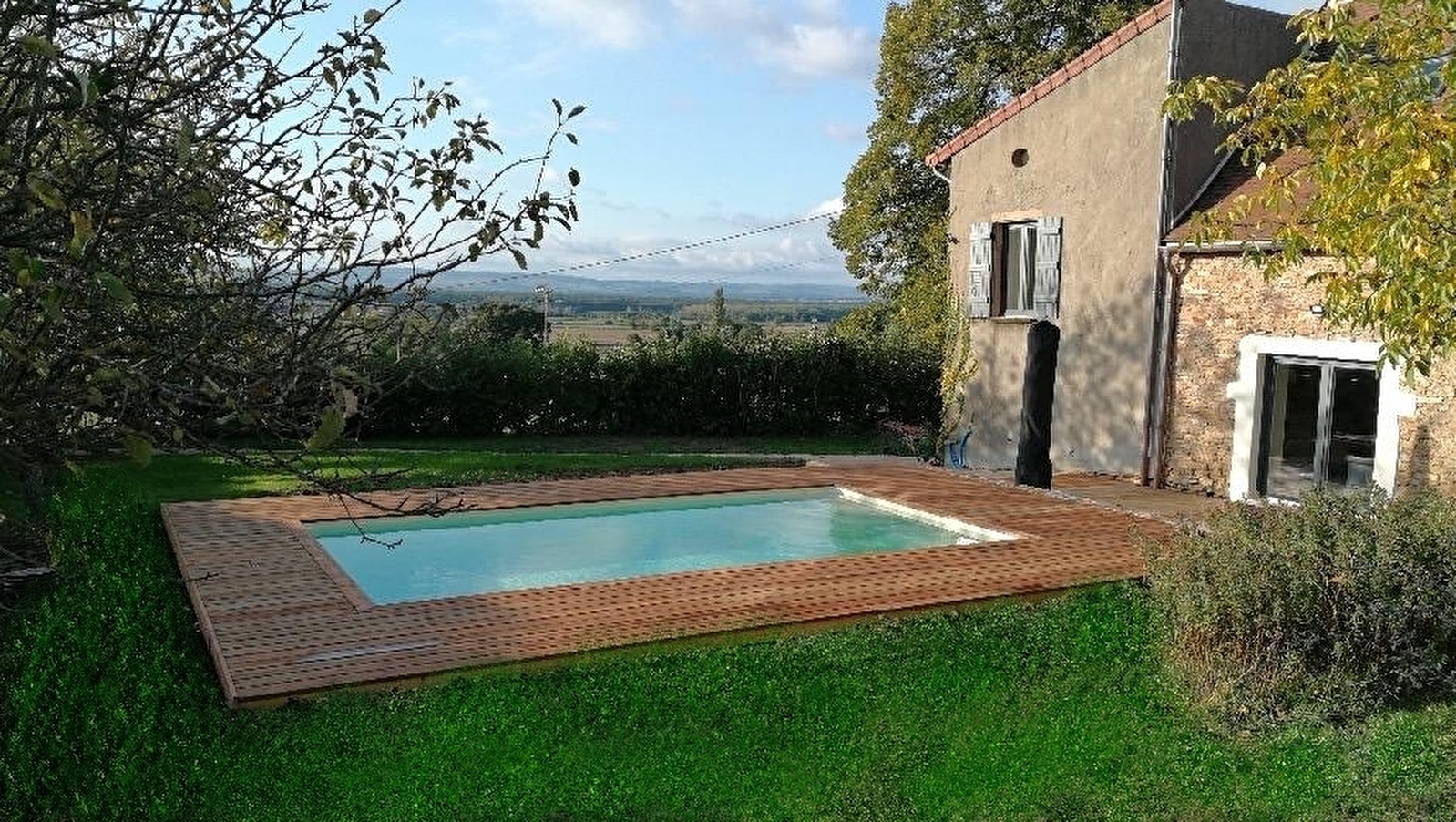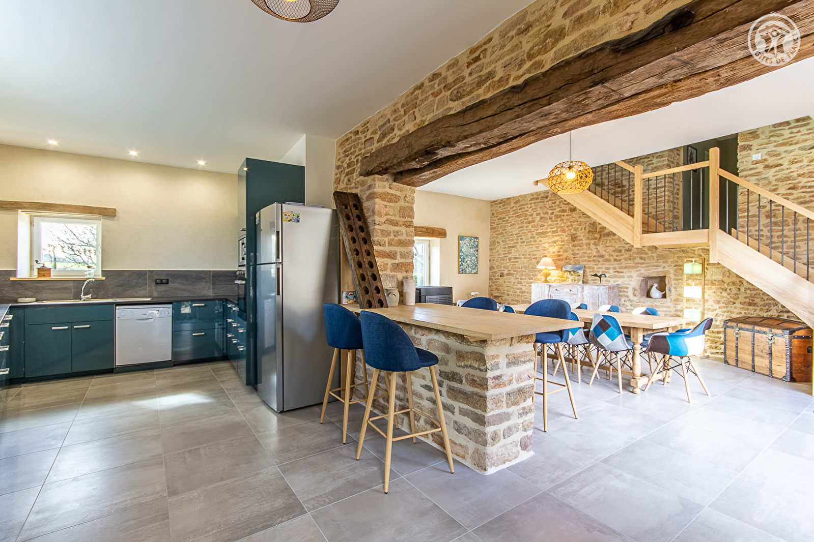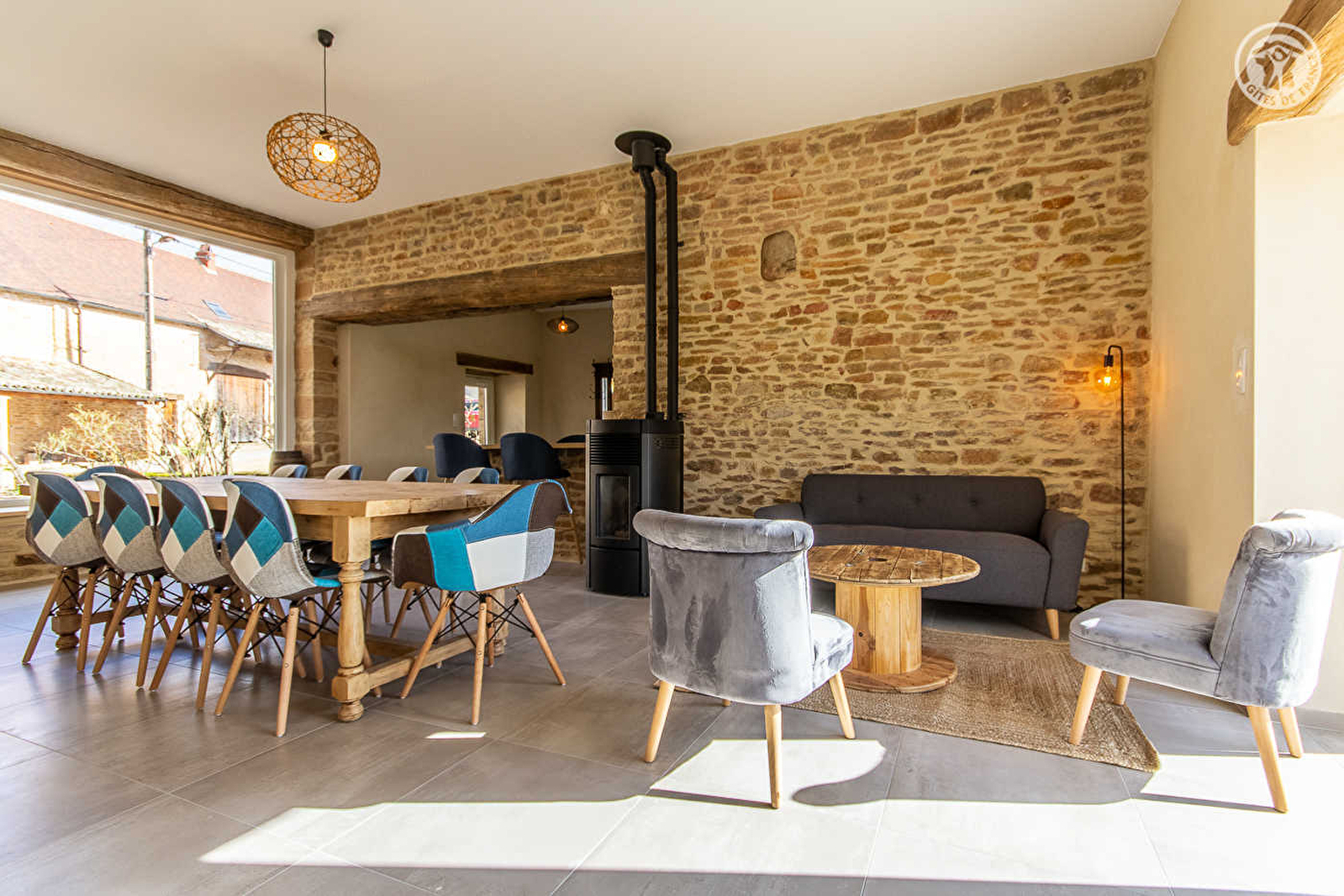 Spécialisée dans l'enseignement de l'équitation auprès d'enfants, Laurence & Nicolas vous accueillent au sein d'une authentique ferme bourguignonne de caractère du XVI siècle chargée d'histoire (jadis lié aux seigneurs de Brancion), soigneusement restaurée avec style dans les règles de l'art. Calme absolu au creux d'un magnifique écrin préservé, dominant une belle plaine de bocage, rivières & prairies sur les contreforts des collines boisées du massif sud Bourgogne (territoire naturel protégé parsemé de nombreuses randonnées & splendides point de vue) jouxtant le charmant petit village typique d'Etrigny & son riche patrimoine. Vaste propriété familiale de 15 ha abritant une école d'équitation « poney-club » dédiée aux enfants de 2 à 12 ans & une ferme découverte dotée d'espèces « miniatures » très dociles (« mini » vaches, cochon, moutons, chèvres, ânes, lapins…). Nombreuses activités sur place. Superbe panorama & paysages. Gîte de grand confort. Spacieuses pièces de vie. Élégant cachet campagnard contemporain marié à une restauration raffinée (murs en pierres, poutres, linteaux en bois d'origine). Énormément de style, charme & caractère entre modernité et traditions. Cocooning et ultra cosy. Chaleureuse ambiance zen & douce. Double terrasse en gravier (exposée/ombragée). Agréable jardin intimiste, arboré et végétalisé accueillant une belle piscine privée (6x3m).