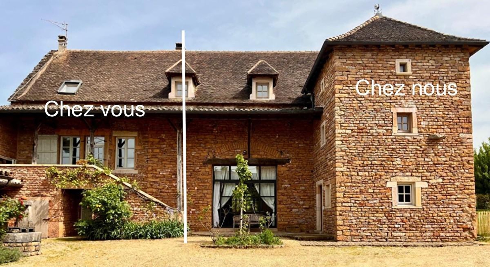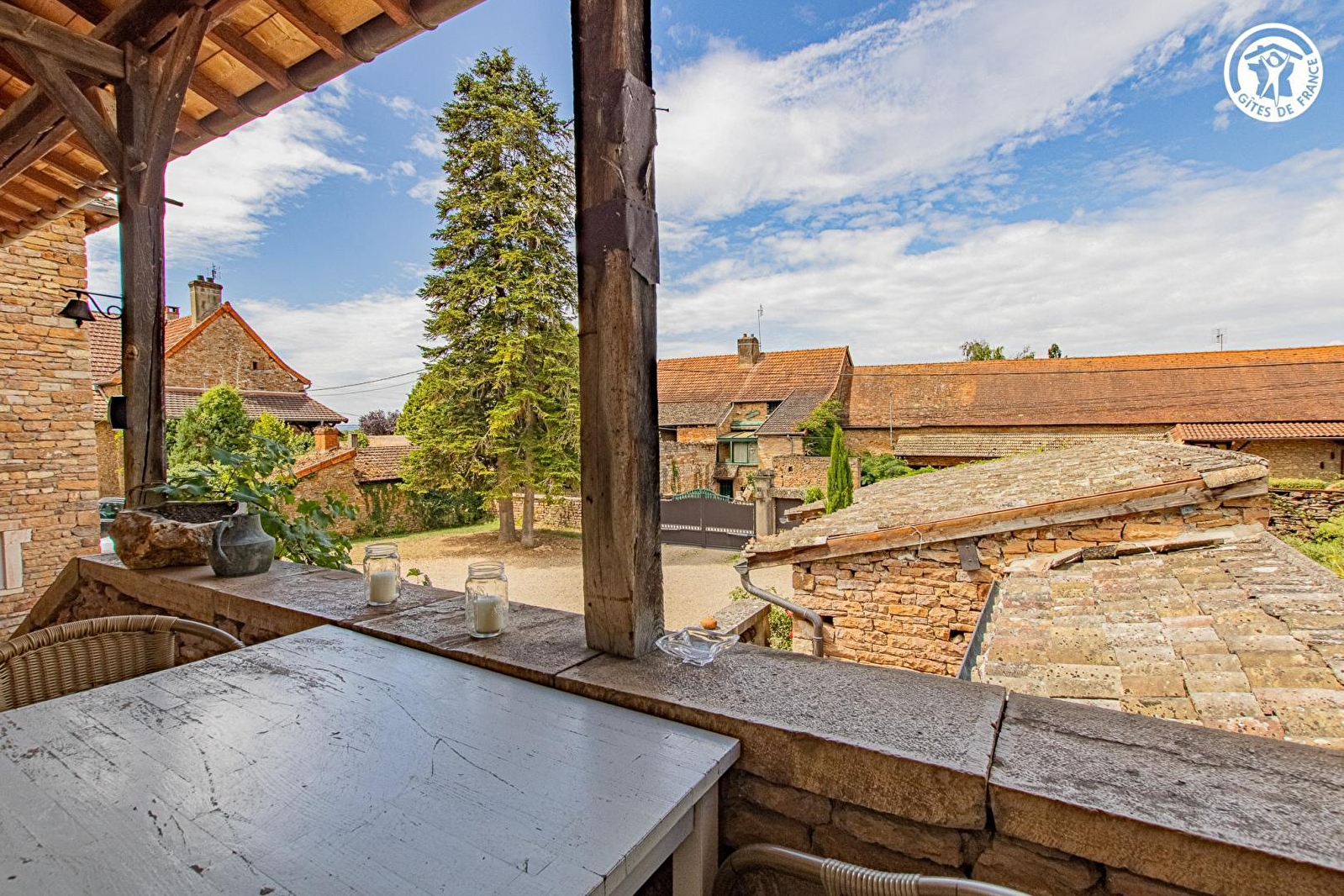 Gabrielle (franco-américaine) & Guillaume vous ouvrent les portes d'une authentique ferme de caractère du XIXème siècle, chargée d'histoire & très soigneusement restaurée, blottie au calme à deux pas des vignes, au cœur d'un pittoresque hameau rural parfaitement sauvegardé. Magnifique cadre champêtre & naturel préservé alentour, lové sur les contreforts boisés du Massif sud Bourgogne (riche de nombreux belvédères panoramiques), au pied de la montagne de Sully protégée en ZNIEFF (abritant un insolite "théâtre de verdure" de type antique), au creux de la verdoyante vallée de la Grosne (classée "Zone Natura 2000" pour ses rares écosystèmes), douce campagne vallonnée mixant coteaux de vignobles, forêts sauvages & prairies bocagères parsemées de bucoliques rivières & d'étangs. Gîte de très bon confort. Chaleureux cachet campagnard d'esprit "maison de famille" sublimée par l'âme dépaysante du bâti d'origine (murs & linteaux en pierres, manteau de cheminée, porte de placard moulurées, charpente… d'époque). Ambiance cosy. Beaucoup de charme. Agréable balcon-terrasse abrité sous une traditionnelle "galerie mâconnaise". Intimiste jardin clos de 2500m², soigneusement engazonné, fleuri & arboré abritant une belle piscine chauffée (4x8m), un jardin aromatique, un mini verger fruitier (cerisiers, pruniers, pêcher, pommiers, poirier… / cueillette possible) & un poulailler.