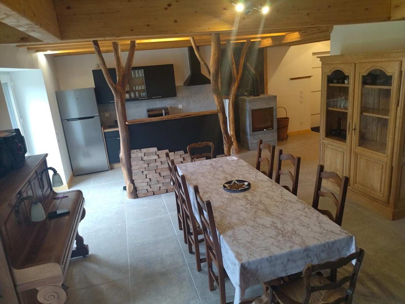 Située sur la route menant au lac de Chalain, cette maison entièrement rénovée sera le lieu idéal pour vos prochaines vacances en famille ou entre amis. Elle se compose au rez-de-chaussée, d'une vaste pièce de vie lumineuse avec cuisine toute équipée, d'un espace salle à manger et d'un coin salon avec poêle à bois (fourni gratuitement), d'une chambre avec un lit double (140*190), d'une salle d'eau avec douche et d'un WC indépendant. A l'étage, une mezzanine salon avec TV, 2 chambres avec chacune 2 lits simples (80*200) et une chambre avec 2 lits superposés (80*190), une salle d'eau avec douche et WC. Côté extérieur, vous pourrez profiter d'une terrasse couverte avec salon de jardin et barbecue, et d'un coin jardin avec transats.