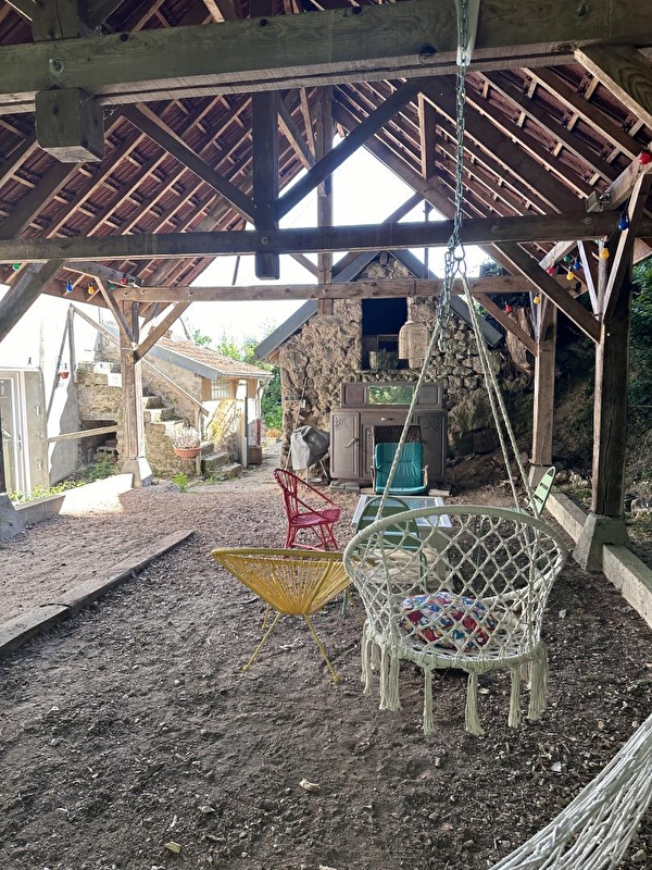 Aline & Yan (agriculteur éleveur en "bio", exploitant la ferme du "Grand Karadok" sise à proximité / visite possible), vous ouvrent les portes d'une charmante authentique fermette morvandelle du XIXème intégralement réhabilitée, nichée au calme à flanc de colline sur un coteau sud-est exposé, en "belvédère" & "balcon panoramique", aux confins d'un pittoresque mini hameau rural. Magnifique écrin préservé de totale nature & verdure, dominant un bucolique vallon boisé de prairies accueillant en saison les paisibles vaches du propriétaire, de races Angus & Wagyu ("bœuf de Kobé"), à l'orée d'une immense forêt sauvage préservée. Littéral havre de paix & repos lové au creux d'un apaisant "paysage de carte postale" de douce montagne vallonnée, 100% ressourçant & relaxant. Possibilité d'observer la faune sauvage sur place (chevreuils, sangliers, renards, écureuils…). Gîte de bon confort. Chaleureux cachet campagnard mixant douce rusticité & insolites touches "fifties" (magnifique sol en "terrazzo"), sublimé par l'âme du bâti d'origine (manteau de cheminée en pierres & poutres). Ambiance douillette conjuguée à l'âme dépaysante d'une ancienne demeure. Agréable jardin clos géré en "tonte naturelle" (en partie pentu). Atypique spa extérieur abrité & vaste terrasse couverte blottie sous un volumineux préau d'esprit "cathédrale" offrant un insolite "mini terrain de pétanque". Très belle vue dégagée sur la campagne environnante.