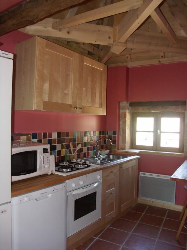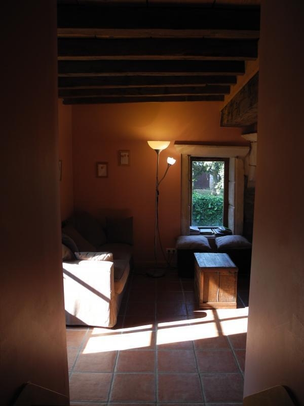 Au cœur du vignoble et aux Portes de Tournus, dans un village typique, maison de caractère entièrement rénovée au calme, indépendante à proximité du propriétaire. Décoration soignée alliant moderne et rustique. Rez-de-chaussée surélevé: cuisine équipée et coin-repas, donnant sur salon (cheminée, TV); 1 chambre (lit 160x200cm), salle de bain, WC indépendants. Étage: 1 chambre (2 lits 90cm). Chauffage électrique. Balcon, cour ombragée (hamac, barbecue). Terrasse sur gravier. Terrain ombragé commun.
