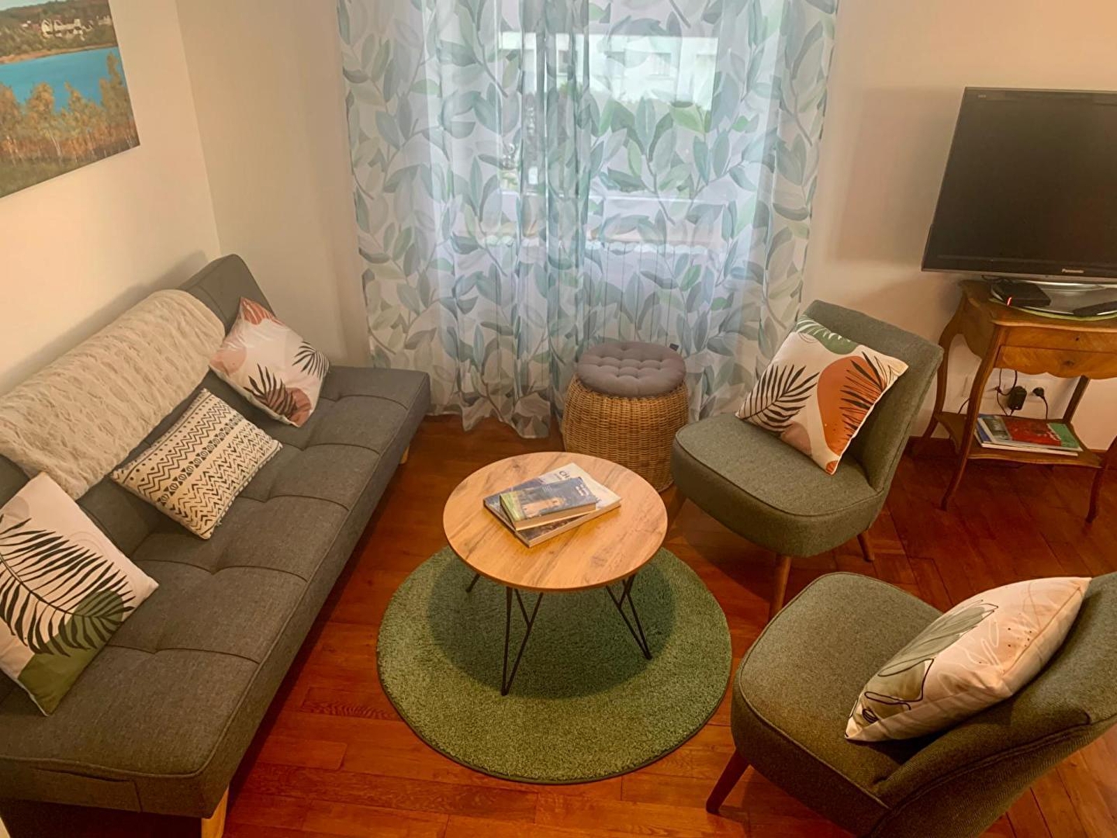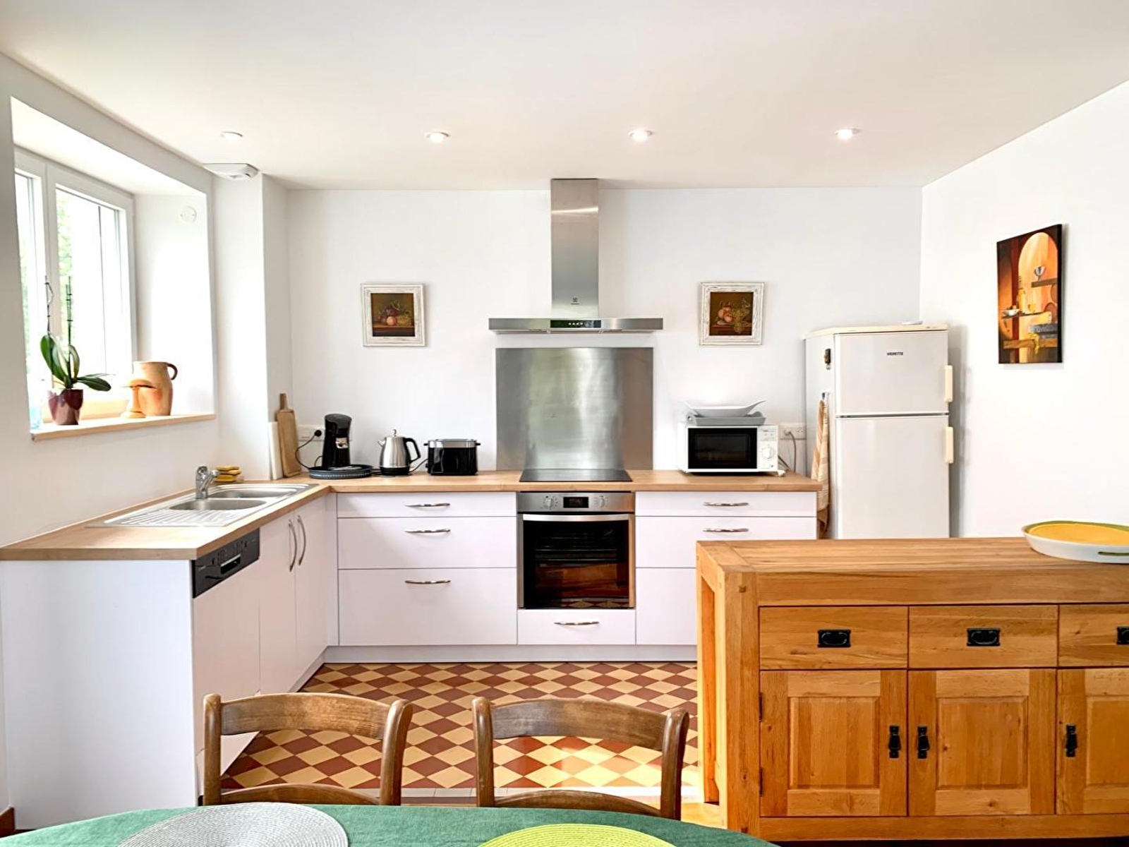 Cet appartement moderne tout confort se situe au premier étage (accès privatif par un escalier extérieur) d'une jolie maison Art Déco, au dessus de l'atelier d'une artiste habitant le rez- de-chaussée. ll se compose d'une pièce de vie avec cuisine équipée, coin salle à manger et espace salon avec canapé et TV, de 3 chambres, dont 2 avec chacune 2 lits simples (pouvant être rapprochés si besoin) et 1 avec 1 lit double (140*190), d'un coin bibliothèque avec livres et jeux, d'une salle d'eau avec douche et d'un WC indépendant. Côté extérieur, vous pourrez profiter d'une grande terrasse couverte aménagée avec salon de jardin et plancha ainsi que d'un vaste jardin partagé pour d'agréables moments de détente et de flânerie. Vous pourrez profiter du calme et de la sérénité des lieux tout en étant à 5 mns à pied du centre-ville où vous trouverez nombreux commerces et restaurants. Stationnement gratuit aisé devant la maison.