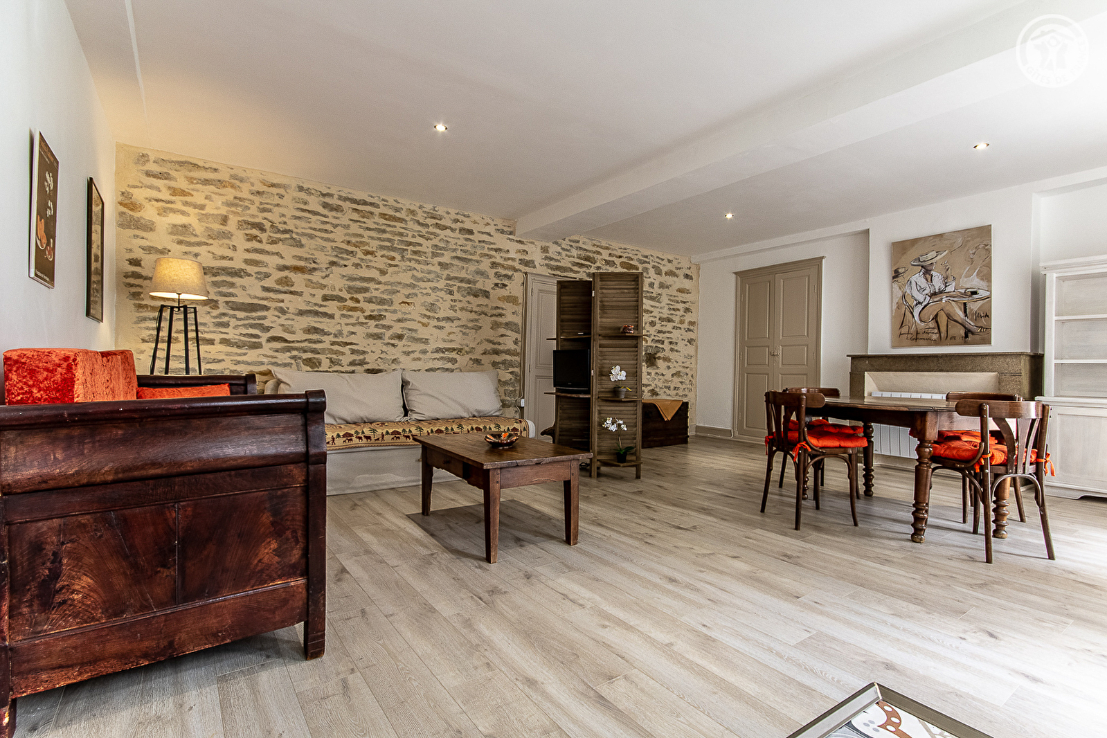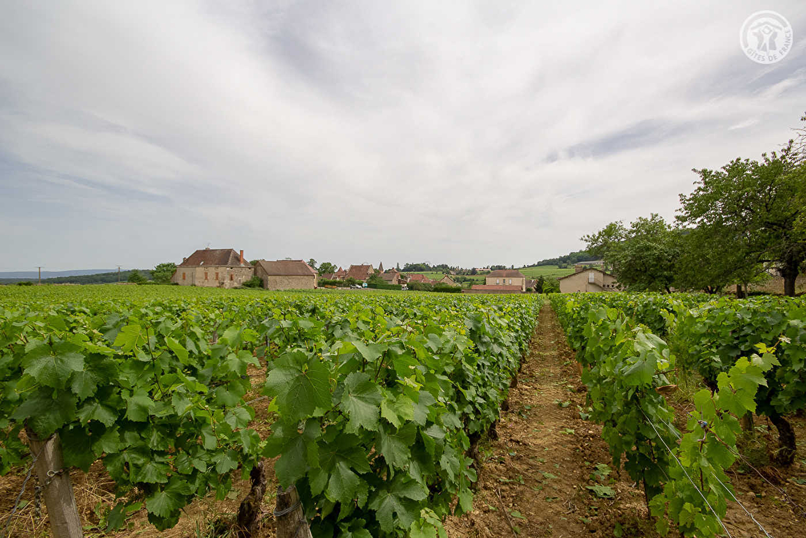 Vigneron en production « bio » (petit domaine familial), François et sa compagne Patricia vous accueillent au sein d'une authentique maison vigneronne de caractère du début 19ème siècle - chargée d'histoire & soigneusement restaurée dans les règles de l'art - voisinant leur élégante demeure de maitre. Hameau résidentiel & tranquille lové au cœur même du vignoble des Côtes Chalonnaises (célèbre AOC Montagny) jouxtant le pittoresque petit village viticole de Saint-Vallerin (église romane du XIIème à visiter). Lové à flanc de coteau exposé sur un petit plateau dominant la magnifique vallée de la Grosne, le site dispose d'un grandiose cadre paysager vallonné, alternance de vastes vignobles, prairies, rivières, champs et forêts et propose de superbes balades en pleine nature - entre vignes et crêtes boisées - offrant d'imprenables points de vue dont le Mont-Blanc par temps clair ! Splendides panorama & paysages. Absolument magique et enchanteur. Spacieux gîte de très bon confort. Chaleureux cachet campagnard alliant l'esprit d'une maison de famille à une belle restauration patrimoniale (murs en pierres, portes moulurées, fenêtres, têtes de cheminée, le tout d'origine…). Ravissante ambiance dépaysante d'une ancienne demeure. Cosy & cocooning. Beaucoup de charme et de caractère. Agréable jardin aménagé clos à l'abri des regards, cerclé des anciens murs historiques en pierres, disposant d'un espace terrasse ombragé sous un imposant marronnier, que complète un petit balcon panoramique.