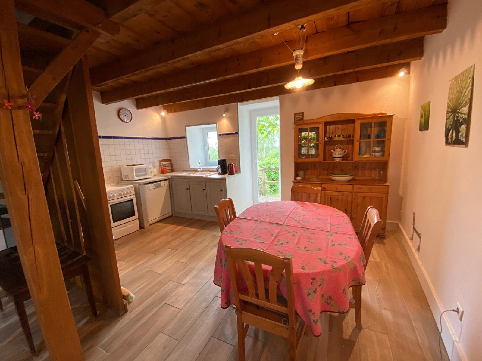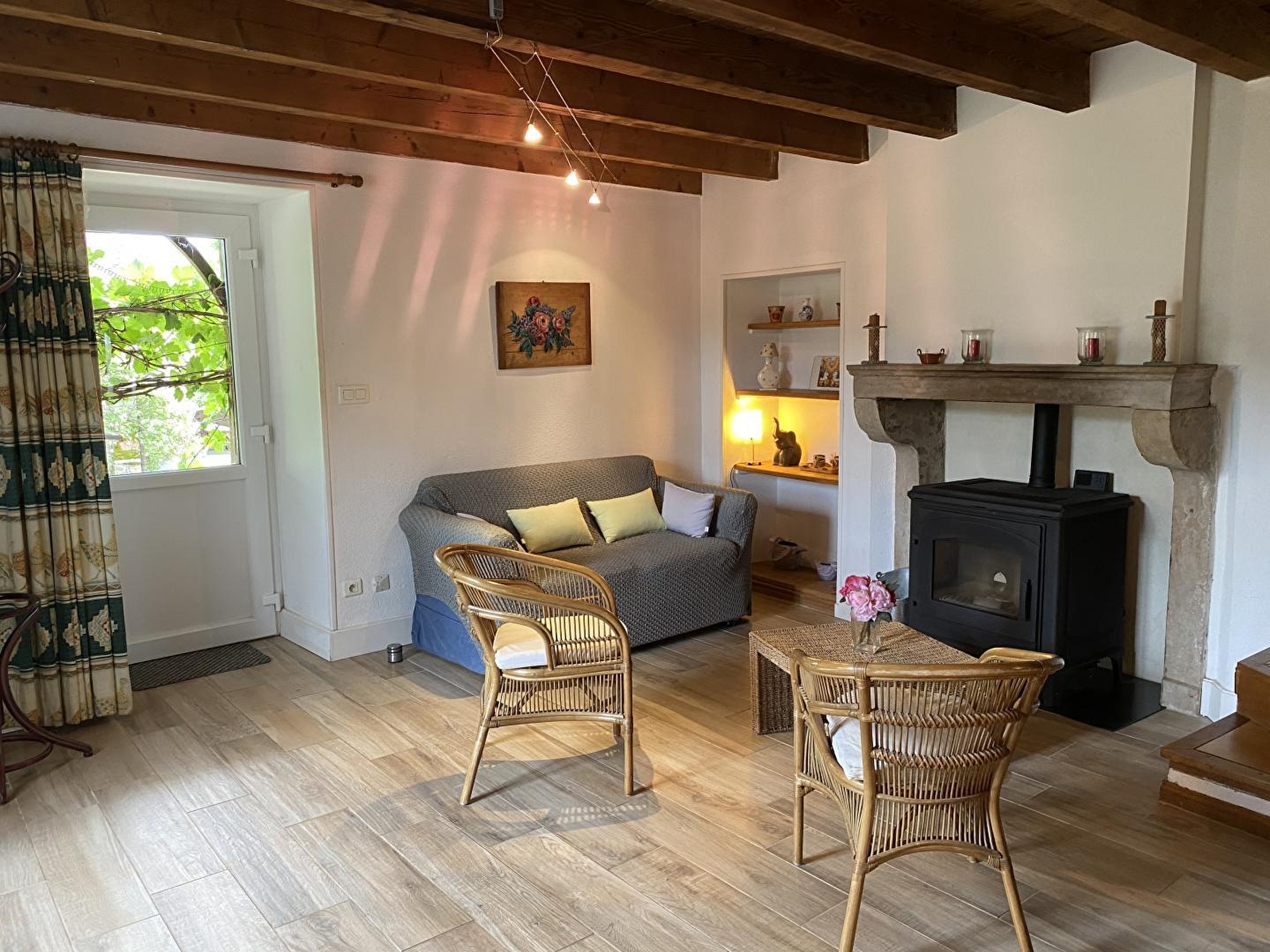 Composition : Gîte au 1er + 2ème étages en mitoyenneté avec habitation propriétaires jouxtant un second gîte (indépendance totale). Wifi. Chauffage par poêle à pellets bois (bois fourni). 1er étage : séjour-cuisine-salon. 2ème étage : 2 chambres (lit 2 p. 140x200cm + lit 1 p. 90x190cm / 2 lits 1 p. 90x190cm superposés), salle d'eau (douche), wc indépendant. Jardin + terrasse + balcon abrité + parking privés. Local vélos fermé. Piscine partagée en commun avec les propriétaires ouverte de mai à septembre (accès de 9h30 à 11h30 et de 14h30 à 18h) Possibilité de louer le gîte 1965 sur la même propriété (10 pers.).