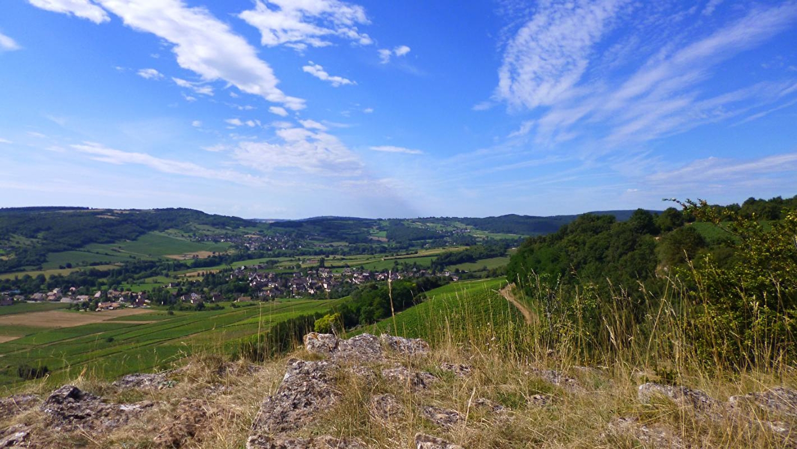 Laurence & Xavier, passionnés de nature & de randonnée (concepteurs pour leurs hôtes de circuits pédestres totalement originaux, au départ du gîte, pour sortir des "sentiers battus") vous ouvrent les portes d'une authentique ravissante dépendance viticole du XVIIIe intégralement restaurée (jadis lié au domaine qui occupait les lieux dont demeure l'imposant "pressoir" d'origine trônant côté cour) nichée au calme, en bordure de ruelle, au cœur d'un pittoresque petit bourg viticole parfaitement sauvegardé, blotti en "balcon panoramique" à flanc de coteau "est" exposé, d'où l'on aperçoit le Mont-Blanc par temps clair. Totale tranquillité lové dans un littéral paysage de carte postale, en pleine campagne vallonnée des Côtes Chalonnaises, au creux d'un plateau de vignobles (du célèbre "Val d'Or"), sur les flancs d'une colline boisée protégée en "Zone Natura 2000" & ZNIEFF (pour ses richesses faunistiques & floristiques), abritant en son sommet les ruines du château fort médiéval de Montaigu, érigé au Xe, chargé de grande histoire (ayant joué un rôle notable dans les guerres de religion), dominant la sublime Vallée des Vaux & le Val de Saône dans le prolongement de la colline du "Montabon" nappée d'une vaste forêt. Chaleureux cachet campagnard sublimé par l'âme du bâti d'origine (mur en pierres, linteau en bois, poutres…). Agréable intimiste jardin "clos de mur" (50m²), arboré & végétalisé (pommiers & prunier) doté d'un toboggan.