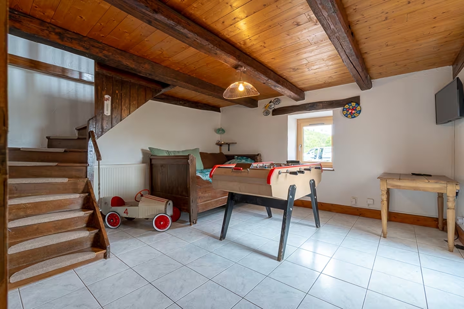 Profitez d’un logement spacieux dans ferme rénovée avec grande terrasse couverte, jardin ainsi que garage sécurisé aux 1000 Etangs. Commerces à 5 minutes, randonnées pédestres et parcours vélo à proximité.