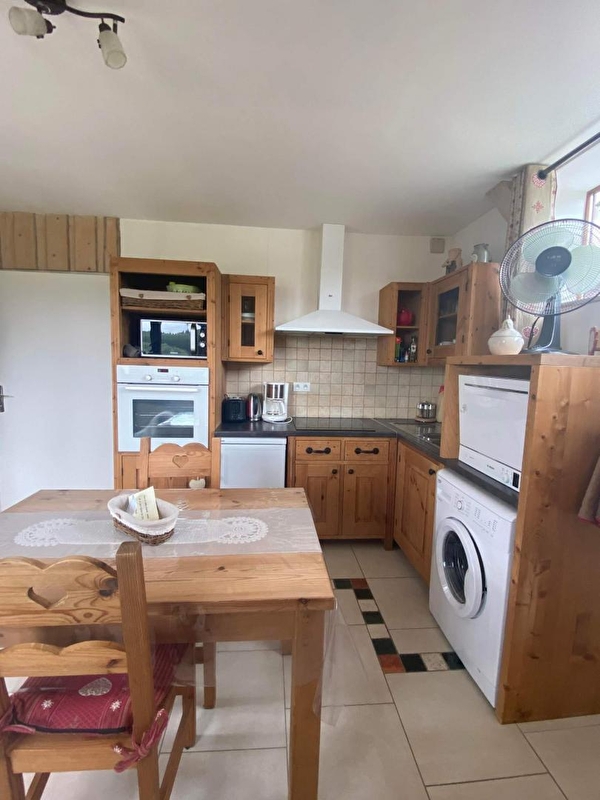 Idéalement situé a proximité des pistes de ski du Haut Jura ainsi que des lacs et cascades, charmant petit logement pour 2 personnes au RDC de la maison des propriétaires (abritant également un autre gîte pour 6 personnes). Hall d'entrée, cuisine entièrement équipée, coin salon avec TV écran plat, lecteur DVD et fauteuils, CH1: 1 lit 2 pl, salle d'eau et wc. Terrasse aménagée offrant une magnifique vue sur la nature environnante. Salon de jardin, parasol, barbecue et chaise longue à disposition. Produits de base (sel, poivre, huile, farine et sucre) produits d'entretiens, éponges et papier toilette fournis.