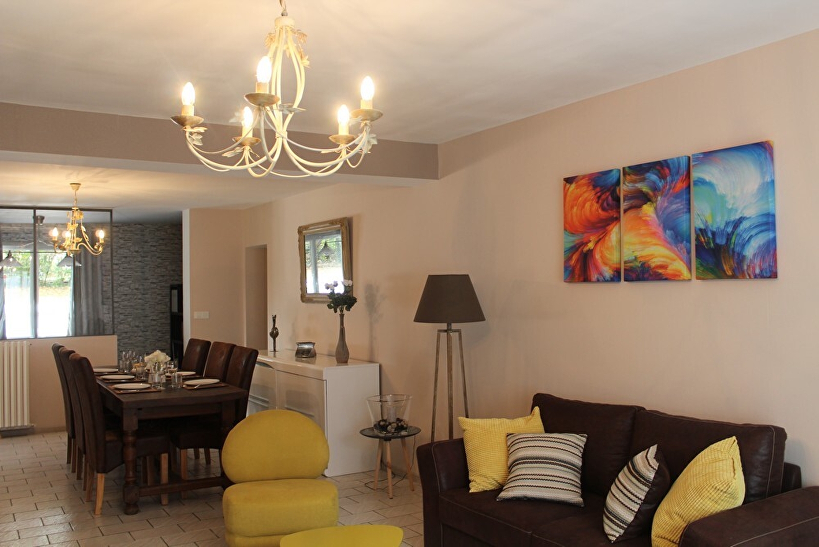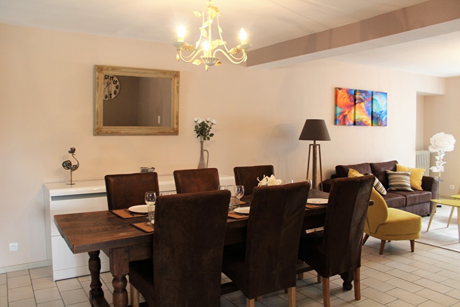 Venez découvrir cette jolie maison mitoyenne de plain-pied, entièrement rénovée, située au coeur de la Bresse Jurassienne. Les commerces sont à deux pas de la maison, ainsi que la base nautique de Desnes. Vous serez également à proximité du splendide vignoble et de ses principaux sites touristiques tels que Château-Chalon, Baume-les-messieurs ou encore la ville thermale de Lons le Saunier. Vous disposerez d'une vaste pièce à vivre composée d'une salle à manger, d'un espace salon avec grande télévision écran plat et d'un coin lecture et bibliothèque. Cuisine entièrement équipée et trois chambres avec chacune un lit de 160x200cm et télévision. Vous trouverez également une salle de bain (baignoire) ainsi qu'une salle d'eau avec grande douche à l'italienne. WC indépendants. En fonction de la météo, vous pourrez profiter comme bon vous semble de la véranda aménagée en coin cosy, ou de la terrasse derrière la maison, équipée d'un salon de jardin, barbecue et transats. Terrain attenant non clos. Pour votre confort, les lits seront faits à l'arrivée.
