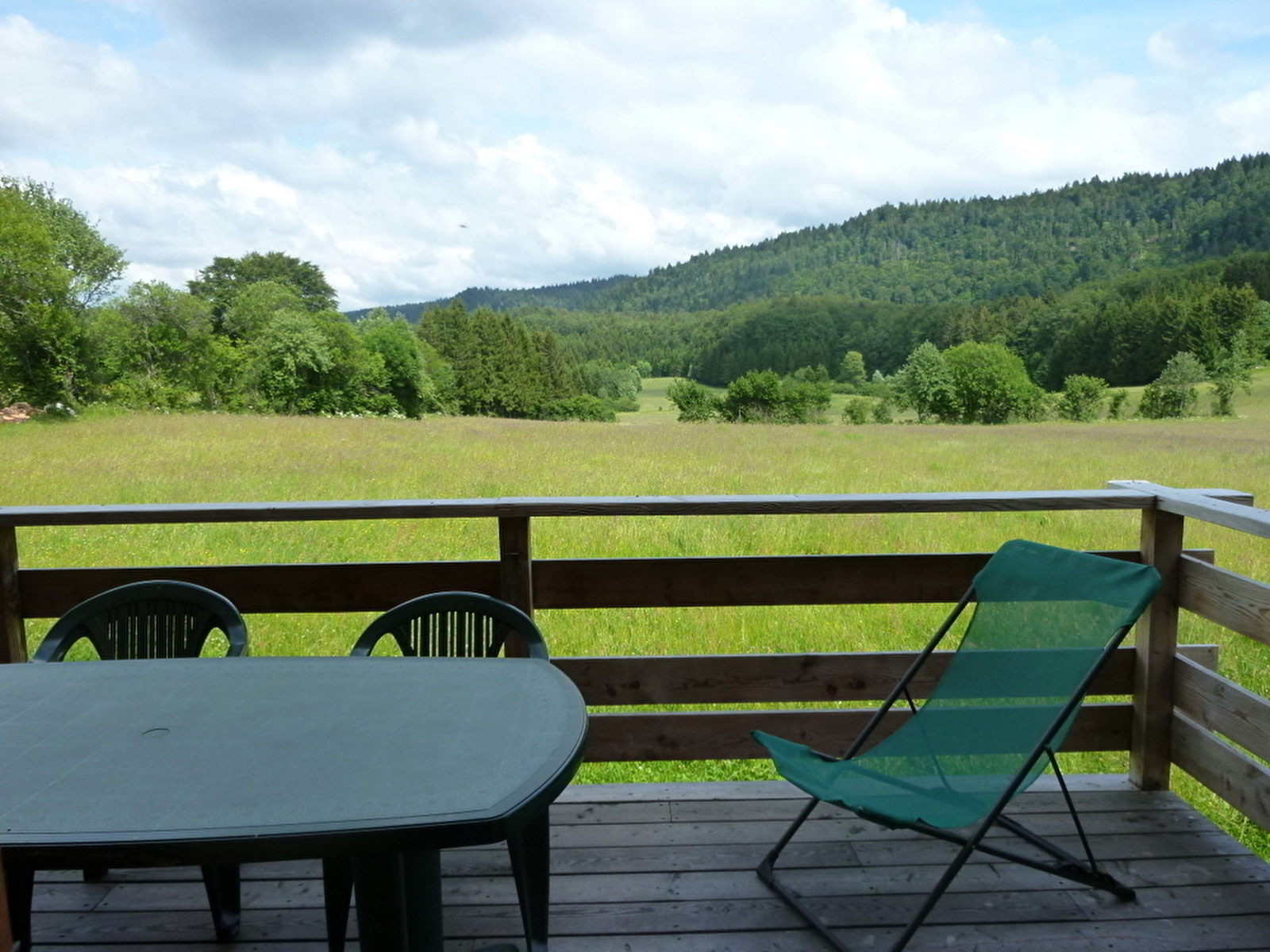 Chalet indépendant situé au coeur du Haut Jura, au pied des pistes de ski de fond et à deux pas de la cité médiévale de Nozeroy. Au rez-de-chaussée: vaste pièce à vivre composée d'une cuisine toute équipée, d'une salle à manger et d'un coin salon avec poêle à bois. Accès direct sur la grande terrasse offrant une magnifique vue sur la nature environnante. Ch1: 1 lit 2 pl, salle d'eau. A l'étage: ch2: 1 lit 2 pl, et mezzanine avec 4 lits 1 pl. Cour et jardin privés non clos, salon de jardin, barbecue. Chauffage électrique (entre 4 et 7€/jour suivant la saison) et bois (vendu 7€/jour x 6 jours). Sur demande: chaise bébé. Une caution de 350€ sera demandée dont 150€ pour le ménage.