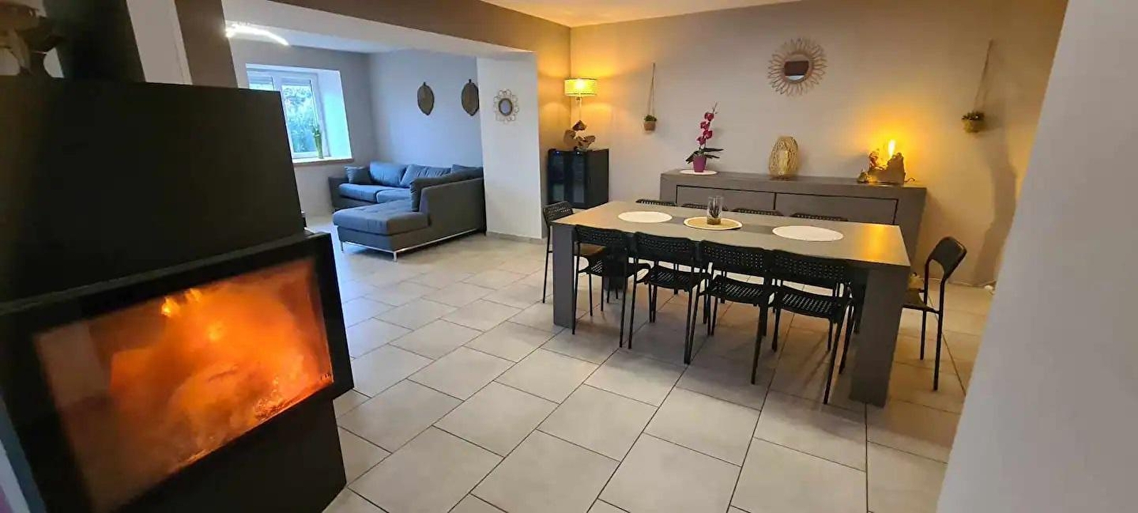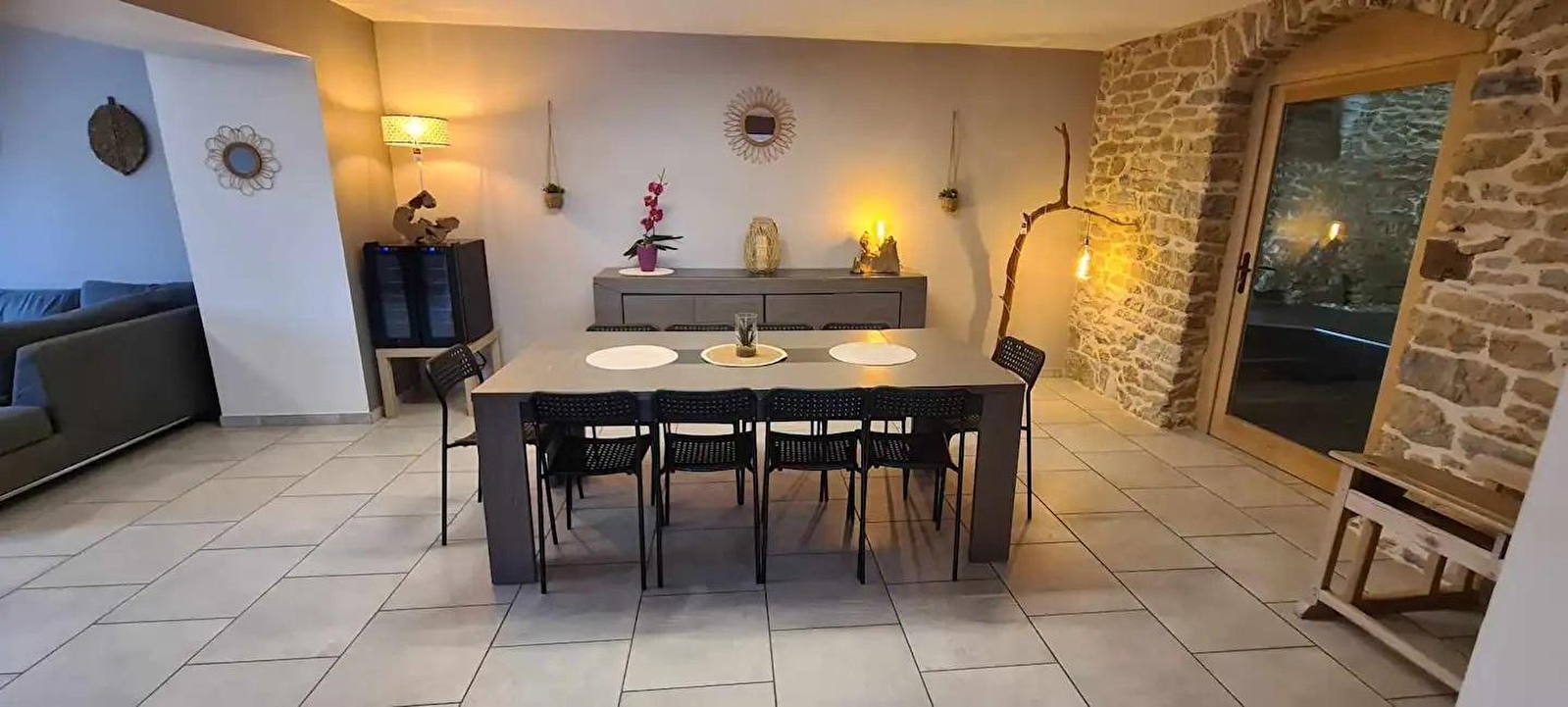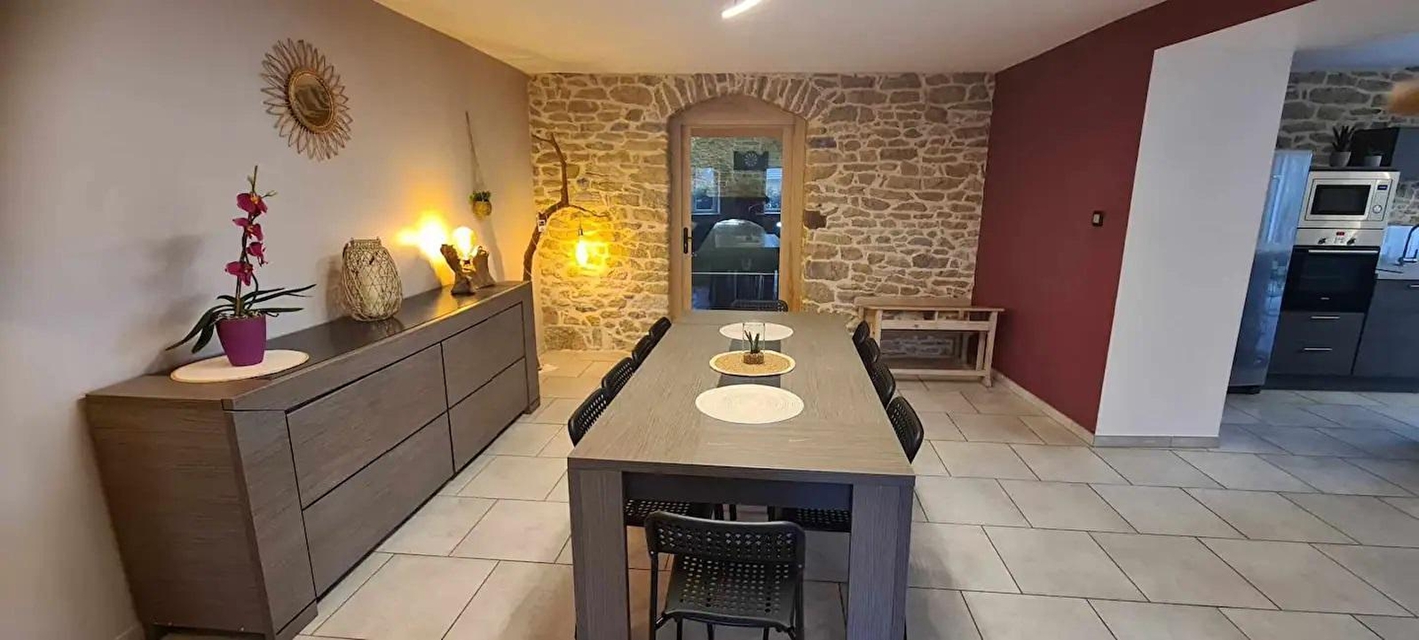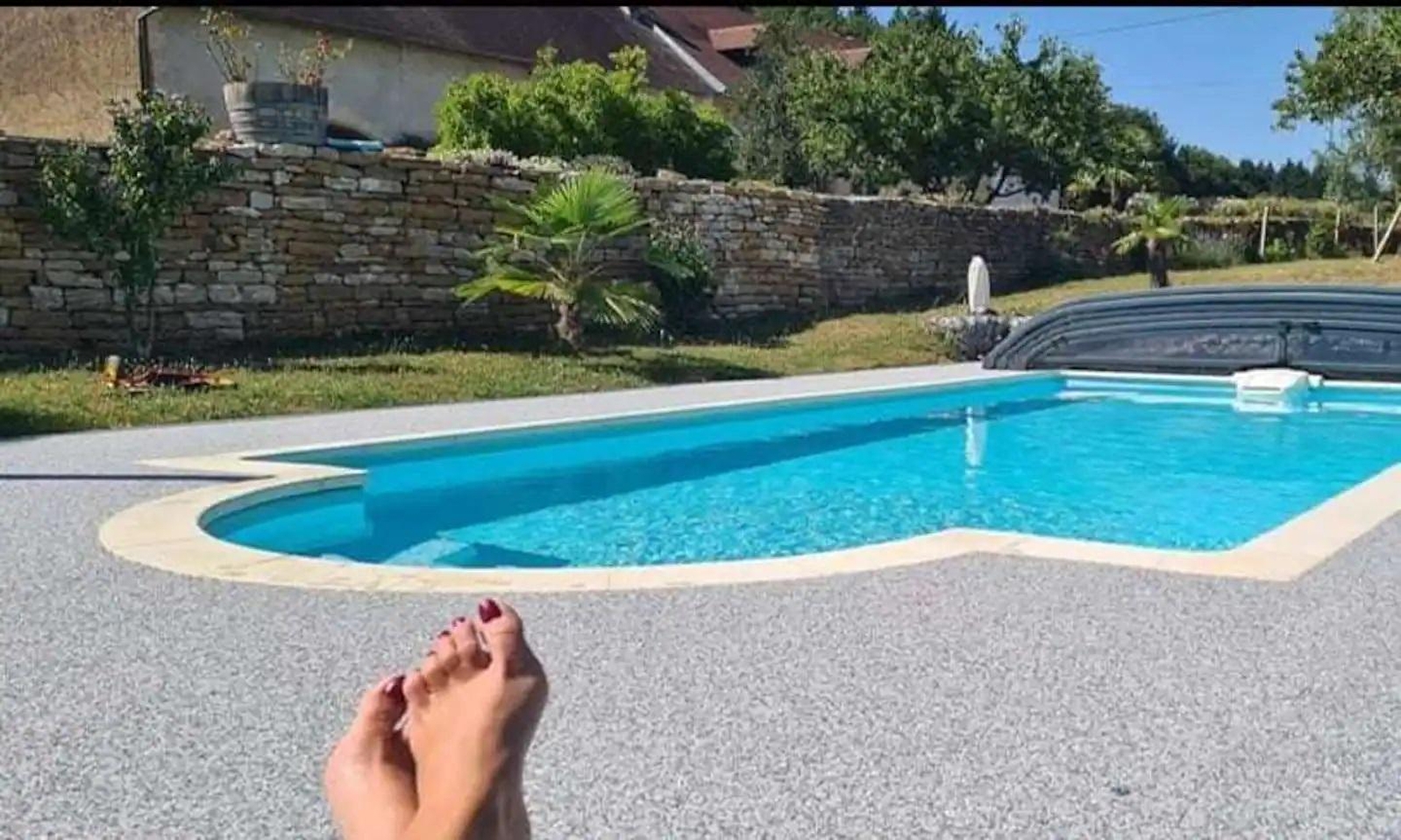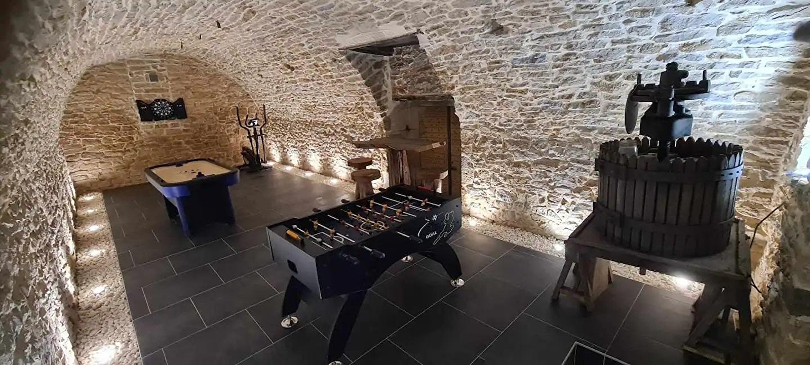 Cette belle maison en pierre vous charmera par ses nombreuses prestations, elle possède une cave voutée transformée en espace de jeu, de grandes pièces à vivre, 2 grandes terrasses, et surtout une piscine avec cuisine d'été. Au rez de chaussée, grande pièce à vivre comprenant le hall d'entrée, la Cuisine équipée, le salon, les WC et la salle à manger avec un poêle à bois et un accès par une porte vitrée à la cave voutée en pierre aménagée en salle de jeu avec babyfoot, jeu de fléchettes, Air hockey et vélo elliptique. Au 1er étage, 1 suite parentale de 21m2 avec 1 lit double, 1 lit parapluie (avec matelas), un dressing et une salle de bain avec une douche, 1 grande chambre de 14,5 m2 avec 1 lit double et 1 lit parapluie (avec matelas) et un placard mural, 1 grande chambre de 18 m2 avec 1 lit double, 2 lits simples gigognes et un placard mural, 1 chambre de 11 m2 avec 1 lit double et un placard mural, 1 salle de bain avec baignoire et table à langer, 1 Wc indépendant. Un extérieur de 1100m2 clôturé avec terrasse de 80m² devant la maison équipé d'un salon de jardin, piscine de 8m x 4m avec un dôme (selon les années et la météo grâce au dôme il est possible de se baigner d'avril à septembre), terrasse de 120m² autour de la piscine avec des transats. Cuisine d'été avec barbecue ( au charbon ) et évier. Pergola avec table et chaises pour le repas. Idéalement situé, au cœur du vignoble jurassien, à proximité de Château-Chalon, Baume-les-Messieurs et Arbois, elle permet de nombreuses activités touristiques et de loisirs aux thèmes variés :randonnées, baignades en lacs et rivière, visites de sites naturels grandioses et historiques, découverte des vins du Jura et du Comté. Note : - Forfait Draps, couettes et serviettes de toilette (grandes et petites) : 60€ pour l'ensemble de la maison - sans ce forfait les couettes ne sont pas mises à disposition