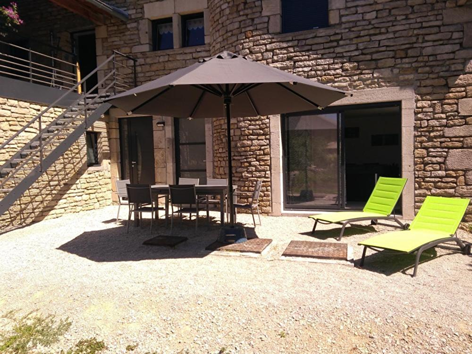 Cet appartement situé au rez de chaussée d'une bâtisse entièrement rénovée (un autre appartement est situé au 1er étage) se compose d'une pièce de vie avec cuisine toute équipée, d'un coin salon avec TV, de 2 chambres chacune équipée avec un lit double (140*190), d'une salle d'eau avec douche et d'un WC indépendant. Côté extérieur, vous pourrez profiter d'une terrasse avec salon de jardin, transats et barbecue. Un spa commun est à votre disposition (50 €/ séjour). Parking privé sur place. Pour votre plus grand confort, les lits seront faits à votre arrivée. Possibilité d'accueillir sur demande 1 ou 2 personnes supplémentaires (canapé convertible dans le salon) Idéalement situé, vous pourrez découvrir 2 sites classés au patrimoine Mondial de l'UNESCO : la grand Saline de Salins les Bains et la Saline Royale d'Arc-et-Senans. Les amoureux des loisirs de pleine nature ne seront pas en reste : randonnées pédestres et cyclo, parapente, canoë-kayak ou encore baignade se trouvent dans un périmètre de 10 minutes en voiture. NOTE : possibilité de réserver le gîte G2512 situé au 1er étage pour une capacité totale de 12 personnes - présence d'un bâtiment de stockage en face du gîte