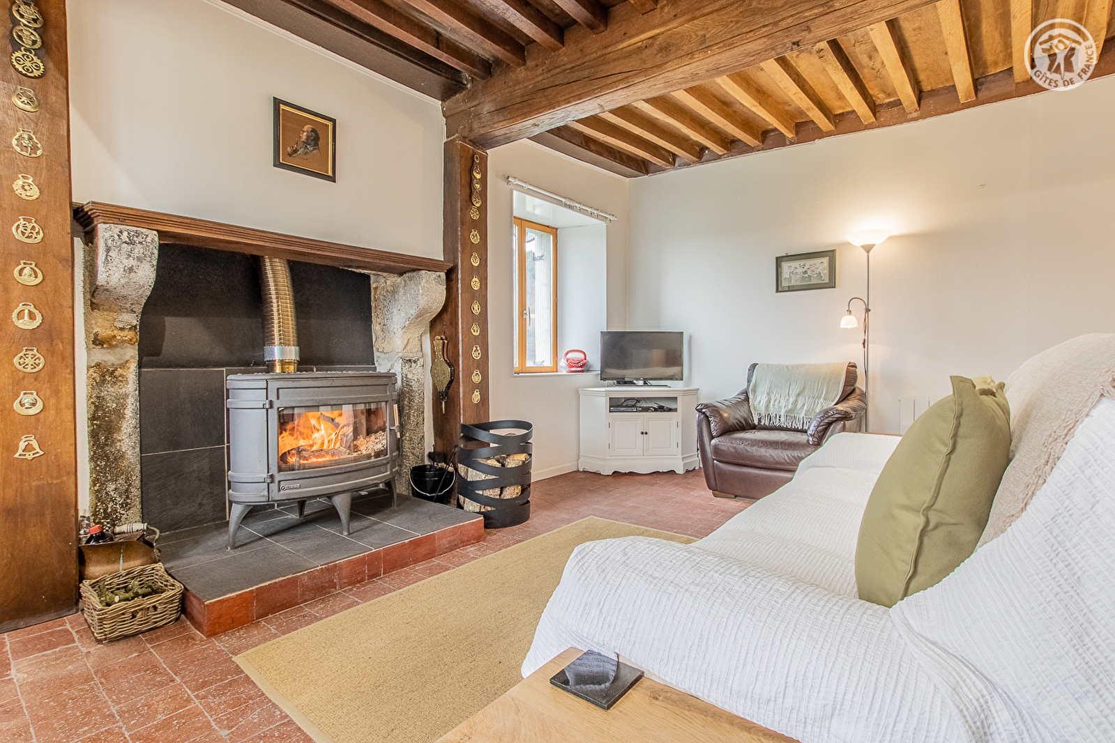 Composition : Maison individuelle. Wifi. Chauffage électrique + poêle à bois. Rdc surélevé (4 marches) : séjour-cuisine-salon. 1er étage : chambre (lit 2 p. 160x200cm), salle d'eau (douche multijets/Wc). Parking privé ou public gratuit devant le gîte (selon saison). Jardin clos privé (2000m²). Supérette 7 km. Gare 23 km.