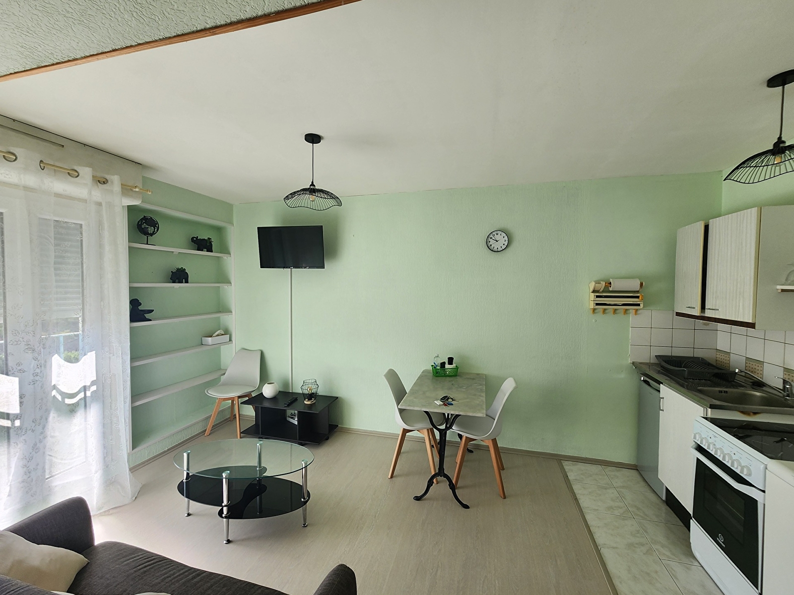 À 15 min à pied des Thermes, au 5ᵉ étage avec ascenseur. Comprend une petite entrée, un séjour avec kitchenette, ainsi qu'une salle de bain avec WC. Lave-linge à disposition. Draps, serviettes et linge de maison non fournis. Place de parking privative avec portail électrique. Accès au parc de la résidence.