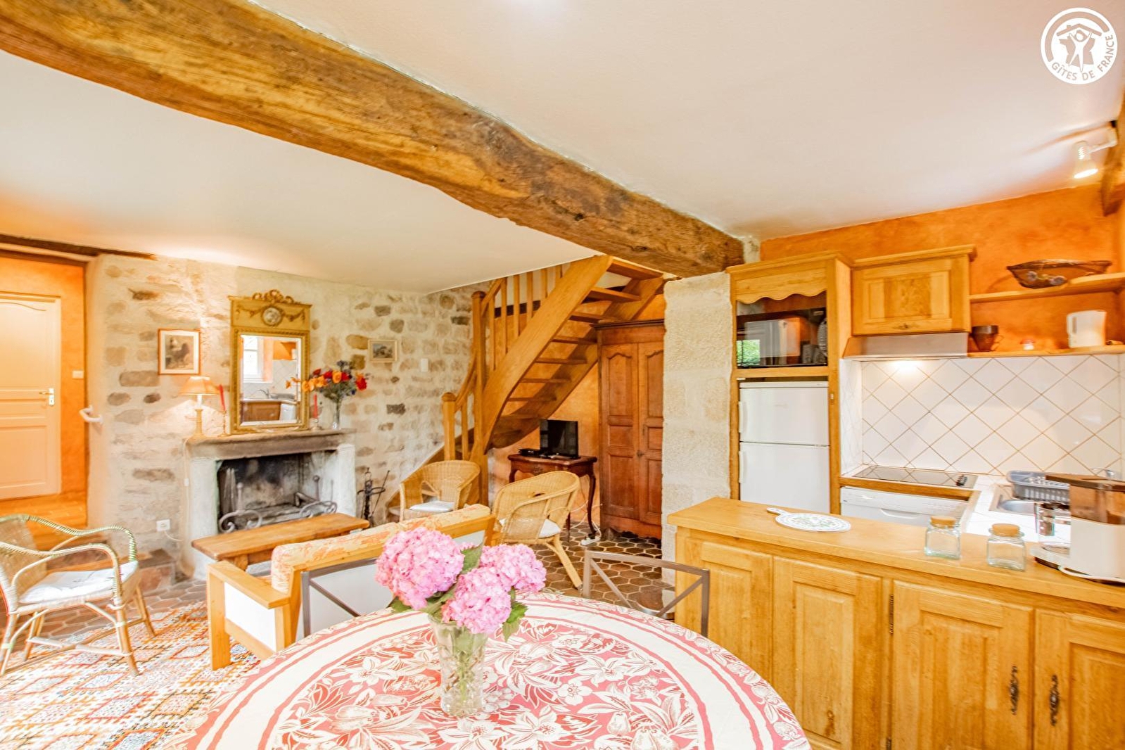 Composition : Maison individuelle (totale indépendance sans vis-à-vis) sur propriété comprenant second gîte & maison propriétaire. Chauffage électrique + cheminée. Gîte sur 2 niveaux. Rdc : Séjour-salon, 1 chambre (lit 2 p. 160x200cm), salle d'eau (douche/Wc). 1er étage : 2 chambres (lit 1 p. 90x190cm dans chacune). Jardin privatif clos + parking privé. Vaste propriété en commun (dont étang). Supermarché 11 km.