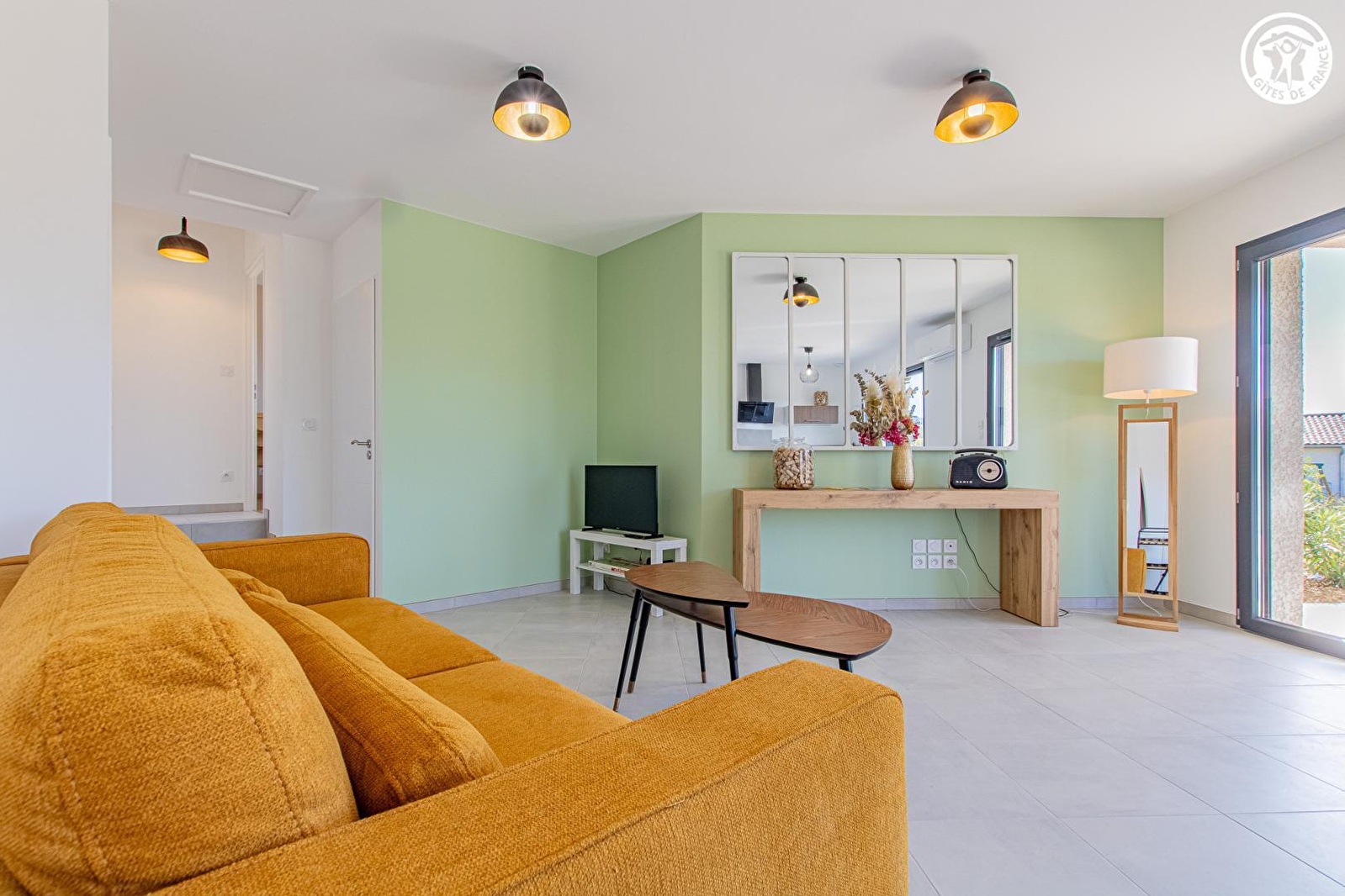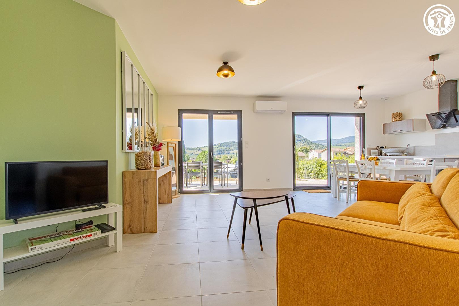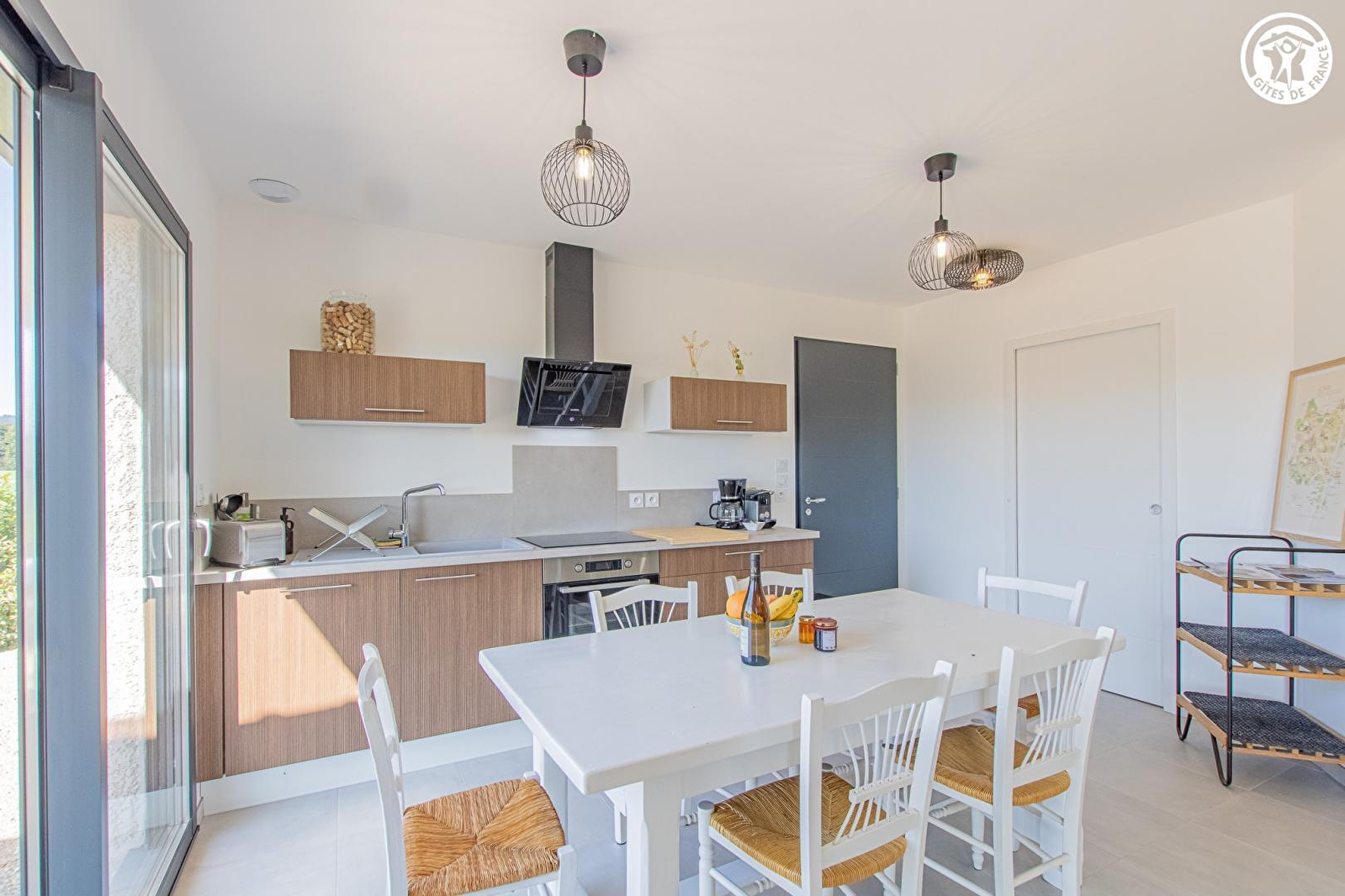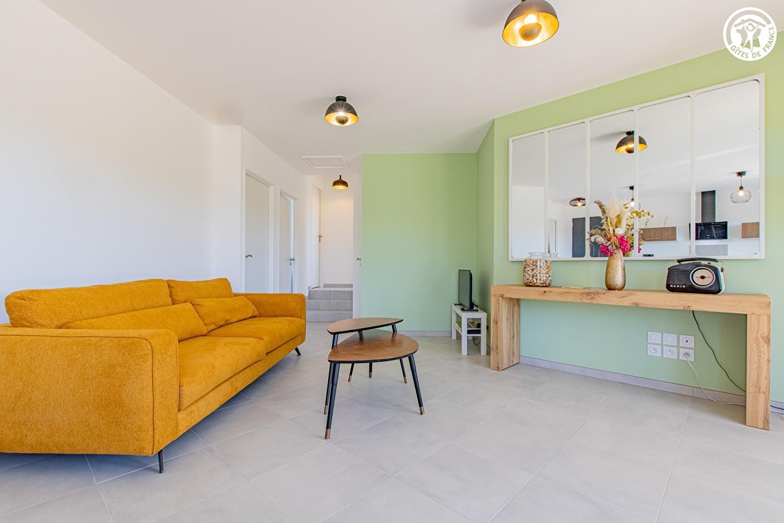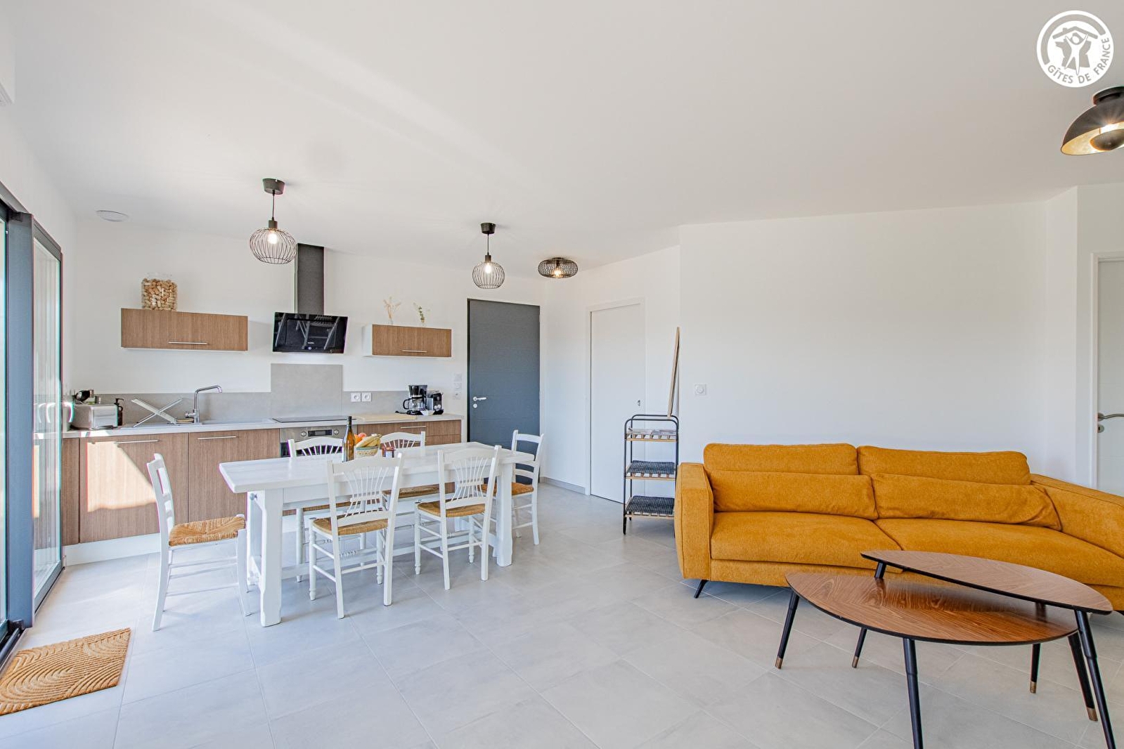 Composition : Maison individuelle voisinant maison propriétaire (indépendance totale). Wifi (fibre). Chauffage électrique. Climatisation. Gîte de plain-pied (avec léger demi-niveau de 2 marches) : séjour-cuisine-salon, 3 chambres (lit 2 p. 160x200cm / 2 lits 1 p. 90x190cm / lit 2 p. 160x200cm), salle d'eau (douche), Wc indépendant. Terrasse abritée + jardin clos (1000m²) + parking privés. Local vélos. Petits commerces 1 km. Supermarché 3.5 km.