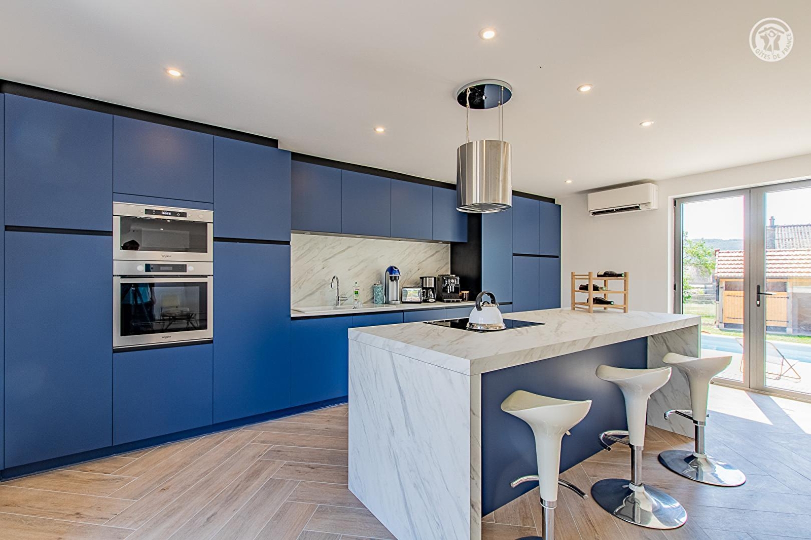Composition : Maison individuelle. Wifi (fibre). Chauffage PAC. Climatisation. Console PS4. Rdc : séjour-cuisine-salon (alcôve avec canapé lit 2 p. 130x190cm en appoint), salle d'eau (douche/Wc). 1er étage : 3 chambres (lit 2 p. 180x200cm / 4 lits 1 p. 90x200cm en 2 x 2 lits superposés / lit 2 p. 180x200cm) dont une avec sde privative (douche/Wc), Wc indépendants. Terrain clos (800m²) + terrasses + piscine chauffée (5x3m / douche) + spa extérieur (6 places) + terrain pétanque + local vélo + borne recharge voiture électrique + parking privés. Commodités & Supermarché à 5 km. Gîte labellisé "Accueil Vélo".