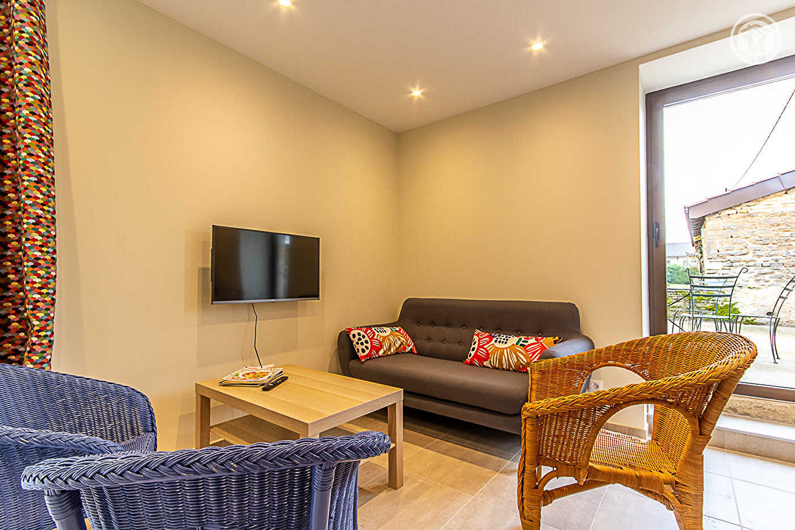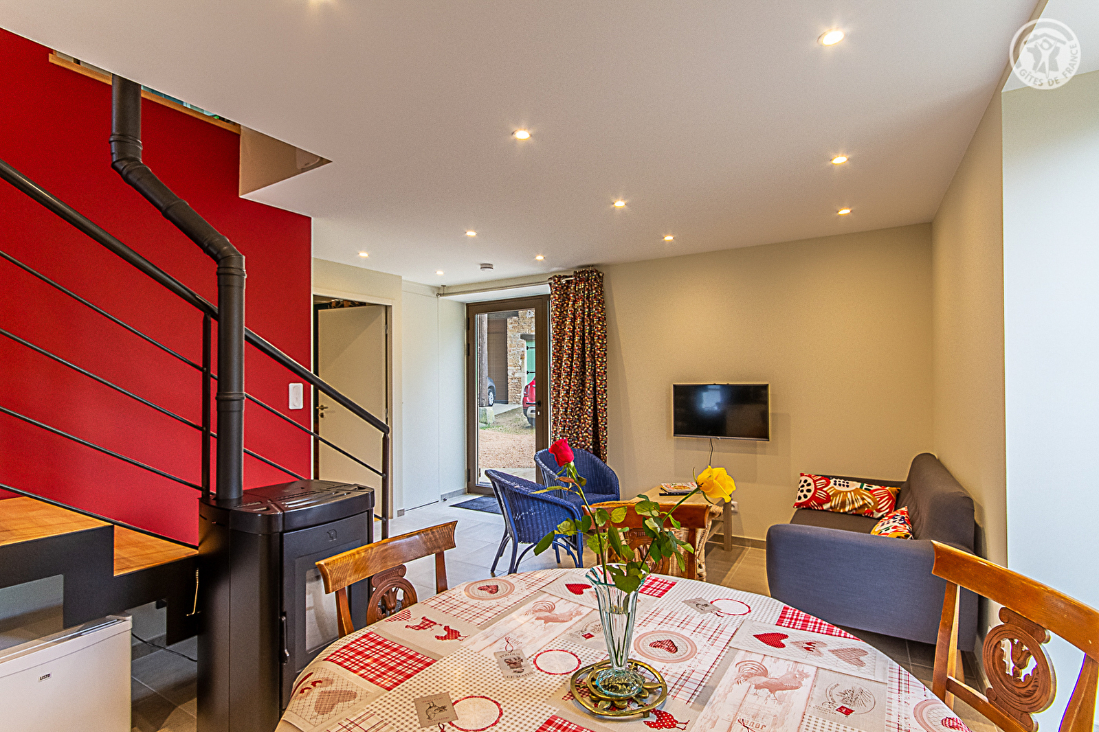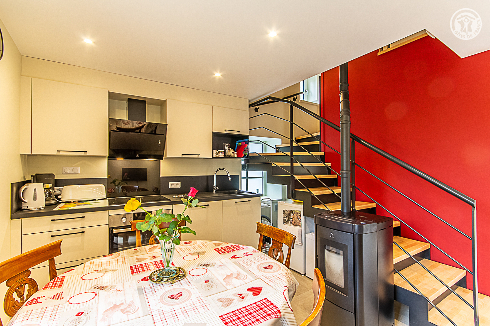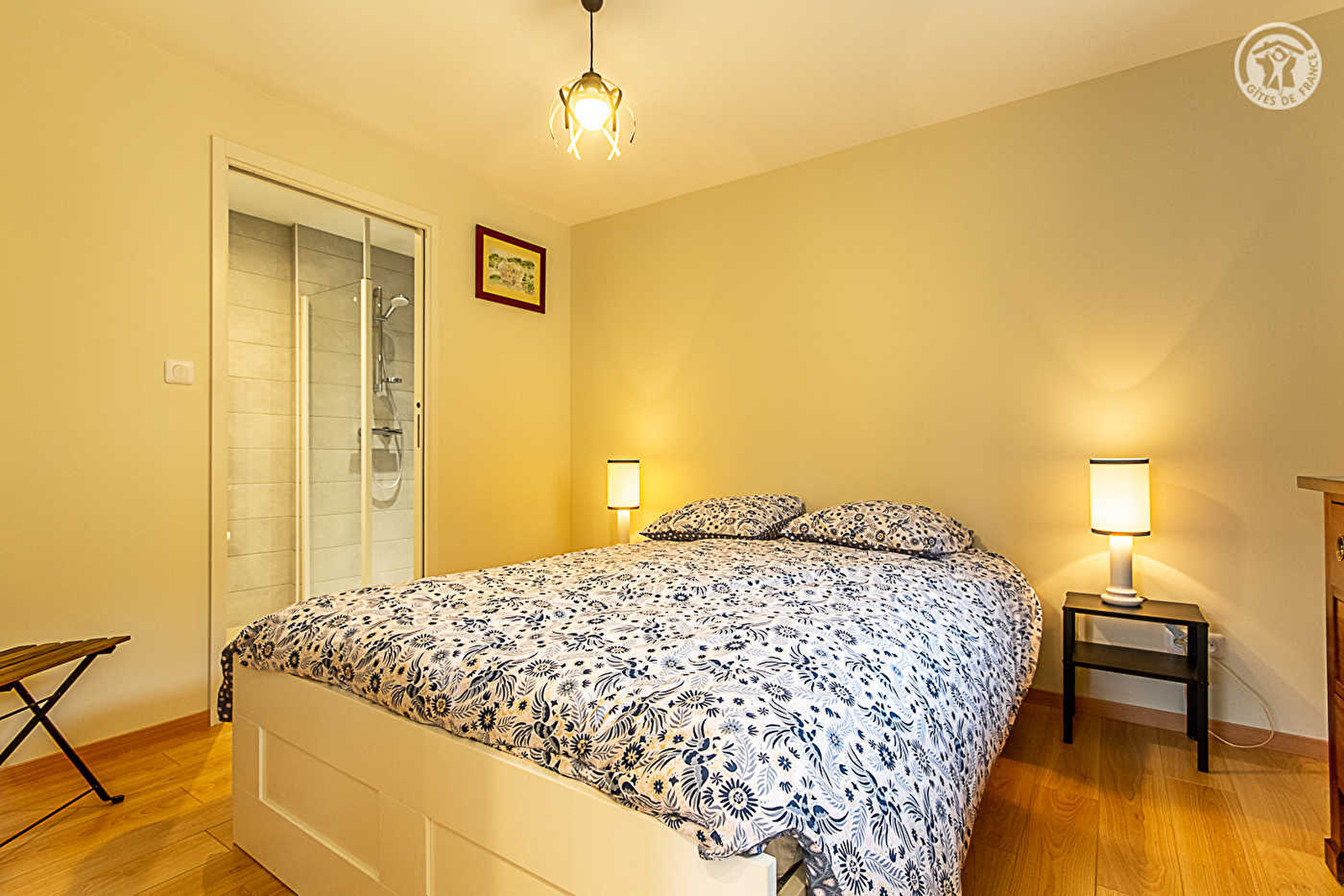 Composition : Maison individuelle jouxtant la maison des propriétaires (indépendance totale). Wifi. Chauffage central bois par poêle pellets (facturé au prix coûtant du sac /autonomie 24H). Rdc : Séjour-cuisine-salon, 1 chambre (lit 2 p. 140x200cm) avec salle d'eau privée (douche), wc indépendant. 1er ét. : 2 chambres (lit 2 p. 140x200cm / 2 lits 1 p. superposés 90x190cm + lit 1 p. 90x200cm), sde (douche/wc). Double terrasse (25m² + 15m²) + parking privés. Terrain avec piscine (4x8m) en commun avec propriétaires. Commerces & services 6 km.