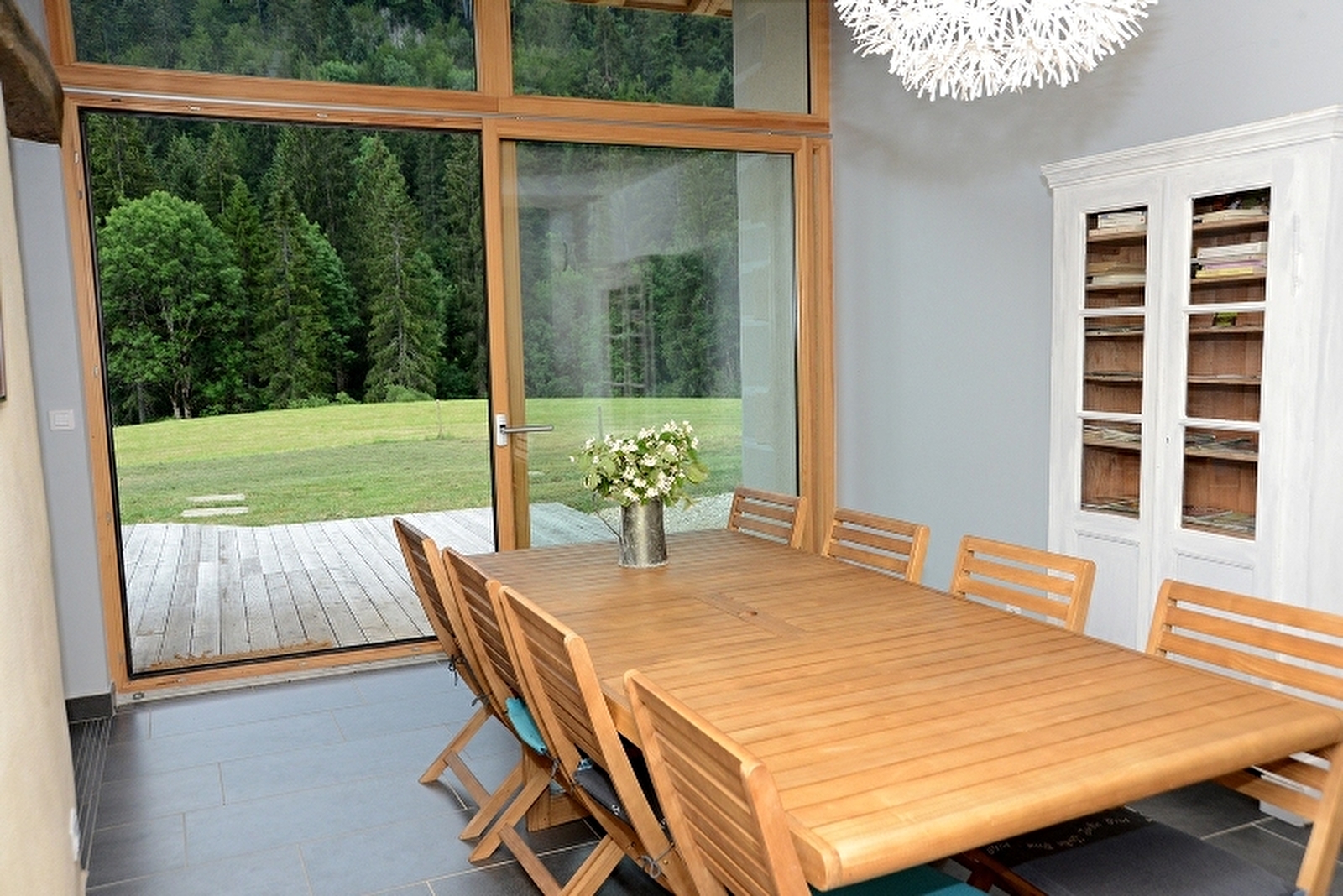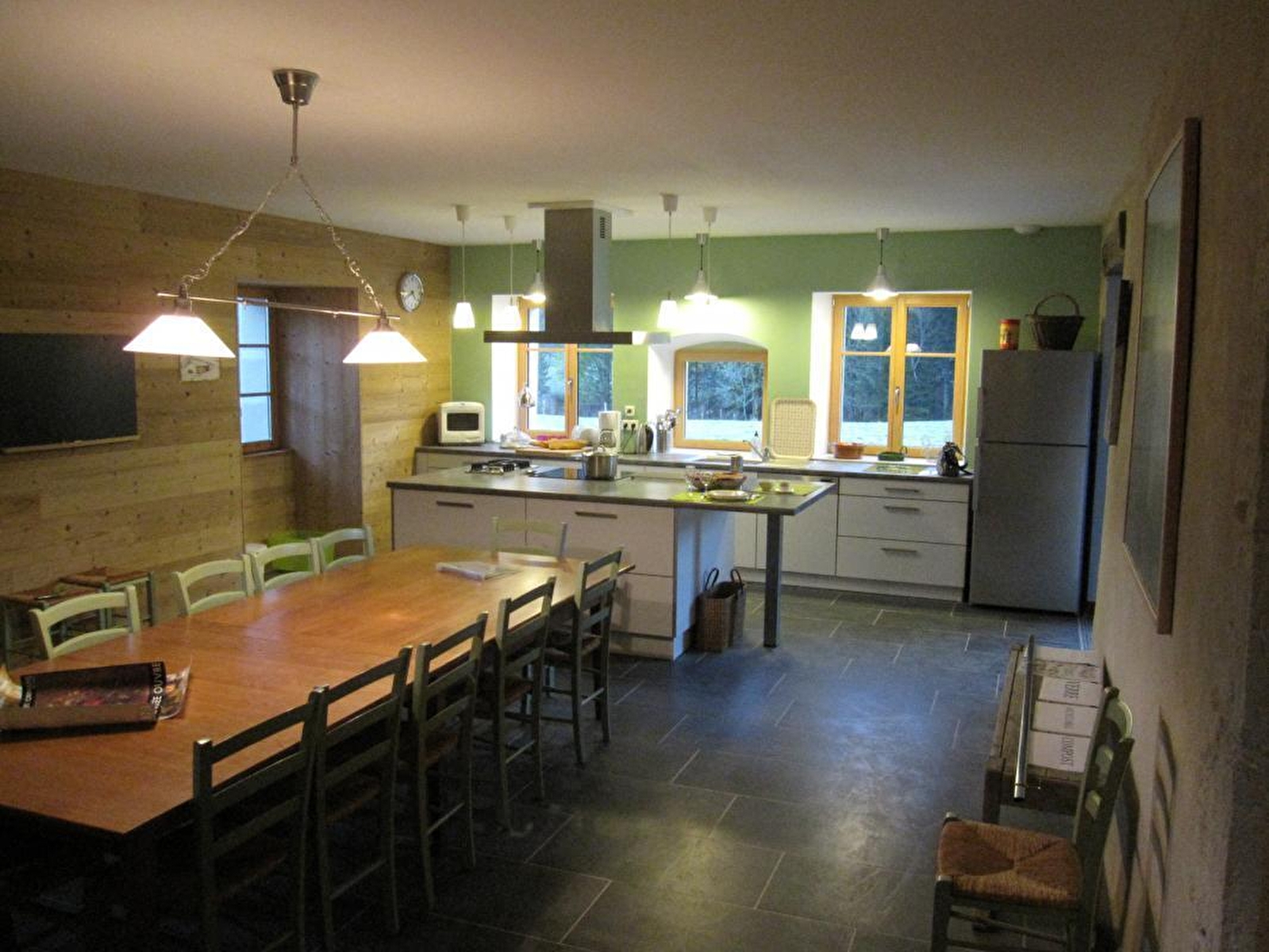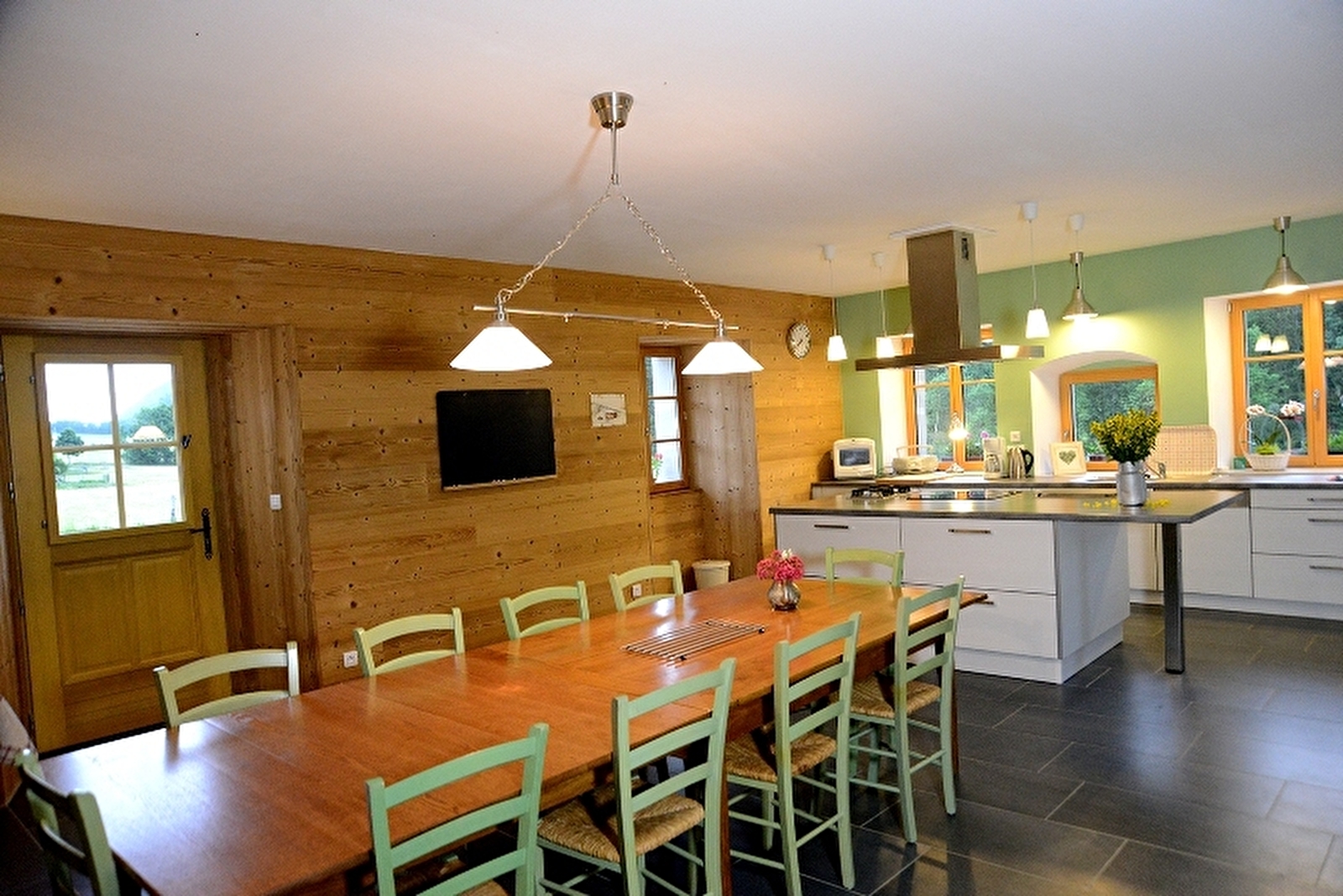 Gîte entièrement rénové dans une partie d'un ancien tuyé, aménagé avec goût et raffinement. Amateur de pierre et de bois, ce gîte saura vous séduire. Au rez de chaussée: grande cuisine ouverte sur salle à manger, 2 espaces salon dont 1 avec poêle à bois, Ch1 : 1 lit 2pl, salle d'eau, wc. A l'étage : mezzanine avec baby foot, 2 chambres avec chacune 1 lit 2pl et salle d'eau et wc privatifs, 2 chambres avec chacune 1 lit 2pl et 1 lit 1pl avec une salle d'eau et wc en commun. Nouveauté : depuis janvier le gîte est équipé d'un sauna. Grand terrain attenant avec ruisseau à truite à 150m. Salon de jardin, barbecue, local à disposition. Chauffage par géothermie avec plancher chauffant. Literie grande dimension.