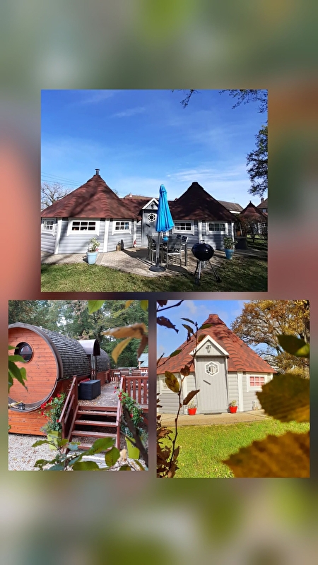 Quatre hébergements insolites indépendants, confortables et bien équipés, peuvent être loués ensemble ou séparément, il vous suffit de copier-coller les références ci-dessous sur la section "recherche" du site Gîtes de France, loué ensemble jusqu'à 12 personnes maximum (enfants inclus). Attention en hiver le kota grill ne peut accueillir que 10 personnes maximum.
