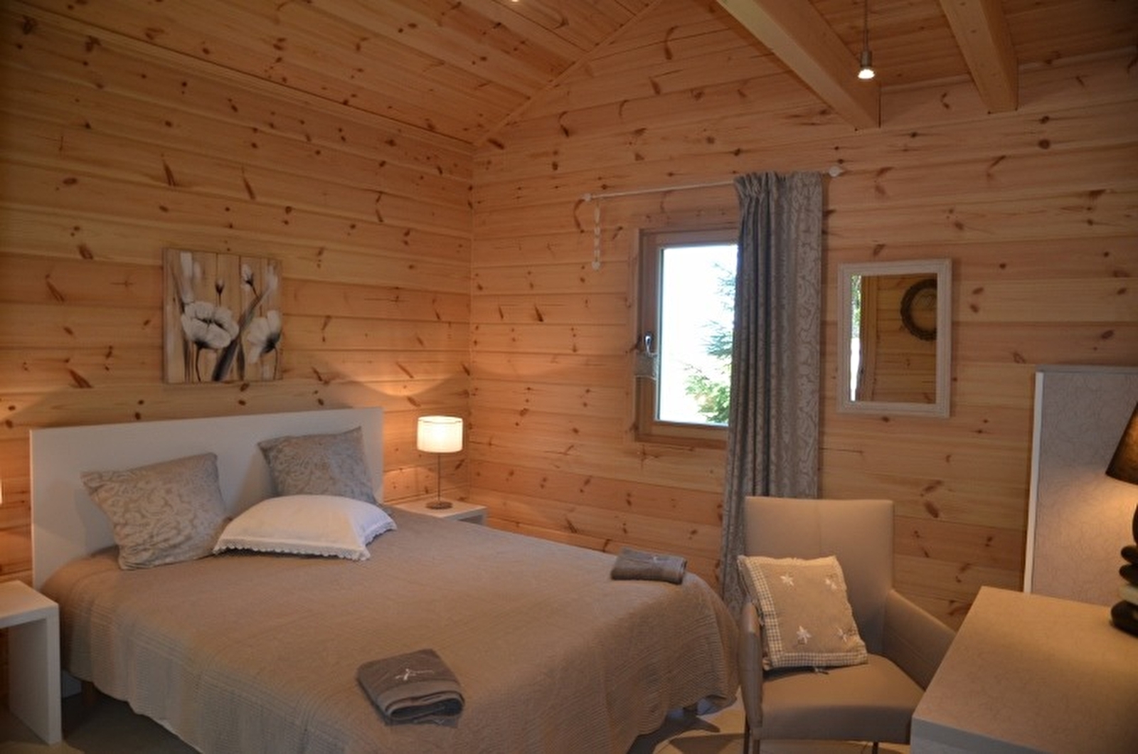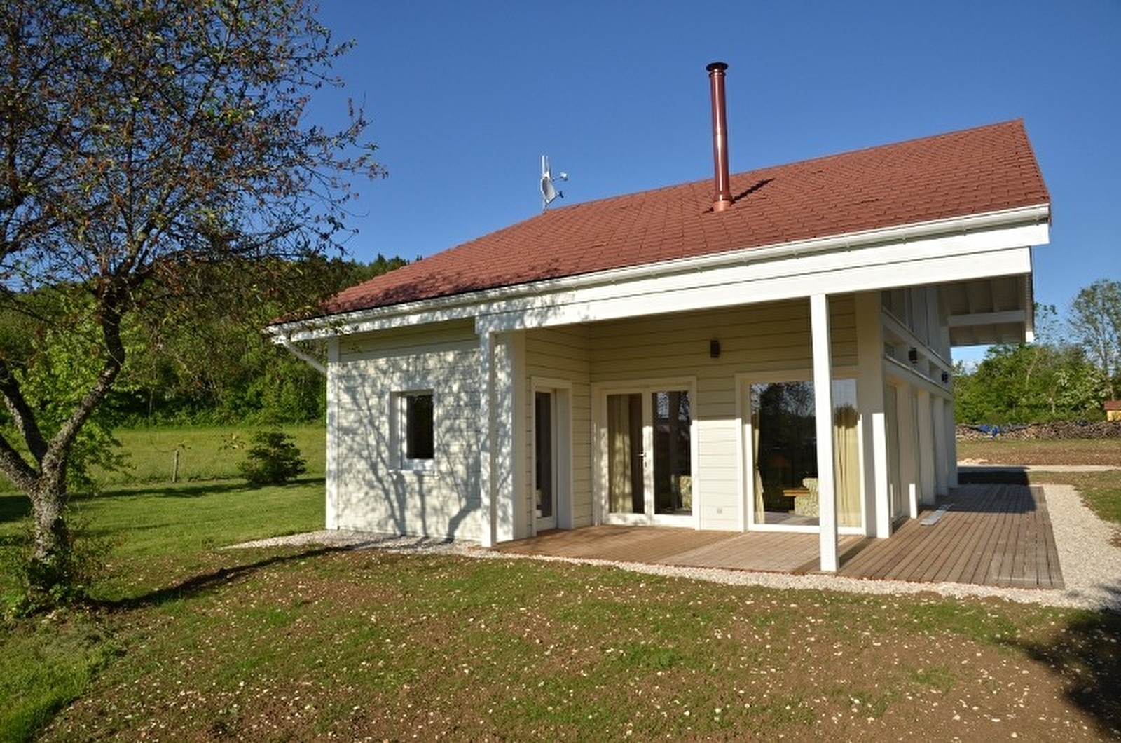 Le chalet bien-être de très grand confort avec sauna et baignoire balnéo est situé au coeur de la région des Lacs, à 1km de Chalain. Chaleureux et lumineux, ici tout est prévu pour la détente et le bien-être. Au rez de chaussée: hall d'entrée, espace buanderie, toilettes, vaste séjour avec cuisine ouverte, baies vitrées offrant une magnifique vue sur l'extérieur, salle de bain avec sauna, baignoire balnéo et douche à l'italienne, ch1: 1 lit 160X200. A l'étage, ch2 : 2 lits 1 pl et mezzanine avec également 2 lits simples. Grande terrasse, salon de jardin, barbecue, chaises longues et terrain attenant non clos. Literie en 0.80x2m pouvant être installées en lit simple ou double. Tarifs hors saison en fonction des périodes et du nombre de personne (voir détails sur le site www.gitejura.com). Pentecôte et Ascension : tarif sur demande auprès de la propriétaire.Tarif hors saison à partir de 700 euros en fonction du nombre de personnes. 1 seul animal accepté : 35 euros pour le séjour ATTENTION JUILLET ET AOUT uniquement location sur 2 semaines