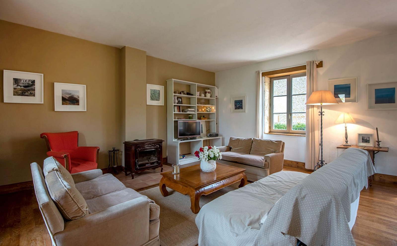 Geneviève & Christian vous ouvrent les portes d'une élégante bâtisse bourguignonne de caractère chargée d'histoire datant de 1920 (ancienne "école de filles"), blottie au calme en bordure d'une petite ruelle bordée d'historiques murs en pierres sèches, au cœur même du pittoresque village d'Anzy-le-Duc, pétri de charme & parfaitement sauvegardé (riche de belles demeures traditionnelles réhabilitées), réputé pour sa somptueuse église romane classée du XIe (l'un des plus merveilleuses de Bourgogne, trônant à deux pas du gîte) & son magnifique Prieuré du XIIe. Totale tranquillité, en pleine douce campagne brionnaise préservée, lové au creux du bucolique bocage vallonné non loin d'une vaste forêt domaniale comme des rives de la Loire, site naturel protégé en "Zone Natura 2000" pour la qualité de ses riches écosystèmes (axe de migration, reproduction & nidification pour de nombreuses espèces dont certaines très rares / poissons, amphibiens, mammifères, oiseaux…). Spacieux gîte de très bon confort. Beaux volumes. Chaleureux cachet campagnard "bourgeois", cossu & raffiné, conjuguant esprit "vintage" & touches contemporaines. Agréable ambiance "pop" colorée, dialoguant avec l'âme dépaysante des lieux (linteaux en pierres & parquets d'origine). Beaucoup de charme. Cosy & douillet. Vaste "intimiste" cour close fleurie dotée d'un majestueux tilleul (appréciable ombrage naturel côté terrasse en été). Grange abritant une table de ping-pong & un baby-foot en accès direct.