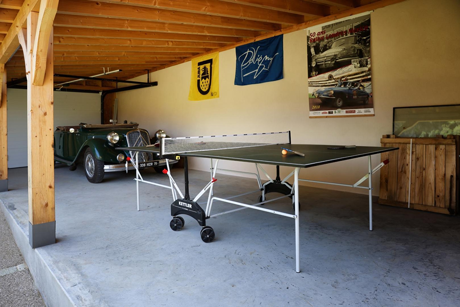 Située au pied d'une reculée, à quelques pas du centre-ville, la propriété séduit par son ambiance champêtre. Vous y trouverez jardins, verger, canal et rivière. Entièrement aménagé en 2024 dans un ancien atelier de menuiserie construit sur un vieux moulin, le gîte vous accueille avec un grand espace séjour ouvert et lumineux de 90 m² surmonté de mezzanines. Cet espace comprend salon, salle à manger et cuisine, Il donne vue sur la roue du moulin en sous-sol. Vous mettez en mouvement cette dernière à votre guise. Le gîte étant prévu pour 14 personnes, les chambres et commodités mises à disposition pour 8 personnes sont fonction de la composition du groupe et de ses desiderata, jusqu’à 4 chambres et 3 ou 4 salles de bains. Le rez-de-chaussée du gîte propose deux chambres : l'une avec un lit double (160 cm), l'autre avec deux lits simples modulables, ainsi que deux salles d'eau et deux WC. À l'étage, quatre chambres peuvent accueillir jusqu'à 8 personnes (un lit double de 180 cm et six lits simples modulables), avec trois salles d'eau et un WC indépendant. À l'extérieur, une terrasse en bois donne sur la pelouse, une autre surplombe le verger, offrant une vue panoramique sur la propriété et le paysage. La galerie nord, suspendue et couverte, est idéale en été pour sa fraîcheur. Elle donne sur la rivière et le relief en vis-à-vis. Vous aurez accès au verger, aux cheminements sur la propriété, à un bassin, au ruisseau qui longe le moulin, aux berges d'une rivière peu profonde et au petit canal qui traverse la propriété. Ce gîte est situé en bordure de la route qui mène aux lacs et aux stations de ski. Le tarif de la location inclut une consommation électrique "raisonnable" incluant le chauffage. Le propriétaire se réserve le droit de demander en fin de séjour un supplément basé sur la consommation réelle et n'excédant pas 120 €.