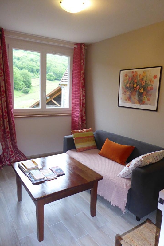 Composition : Maison individuelle jouxtant la résidence secondaire de la propriétaire. Wifi. Chauffage par poêle à bois. Gîte au 1er étage (+ demi niveaux à l'intérieur) : séjour-cuisine, salon TV, chambre (lit 2 p. 140x190cm), salle d'eau (douche/Wc). Balconnet + mini jardinet sur cour + local vélos + parking privés. Jardin en commun avec propriétaire. Commerces 9 km. Supermarchés 12 km.